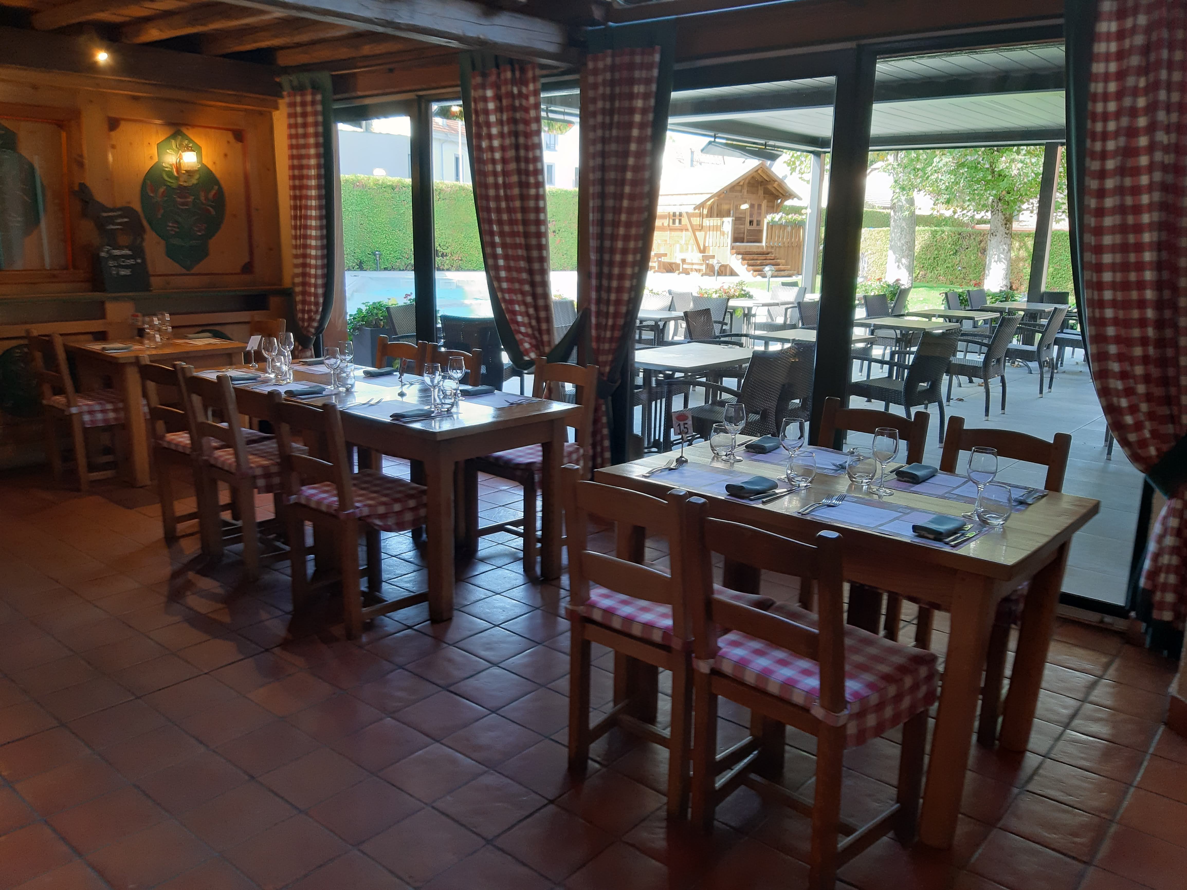 parfait , dans un cadre tres chaud , et agreable ; fait partie du grand hotel, très bons services, en ete possibilité de déjeuner autour de la piscine et l'hiver très grande cheminée dans le restaurant bon rapport qualite prix.