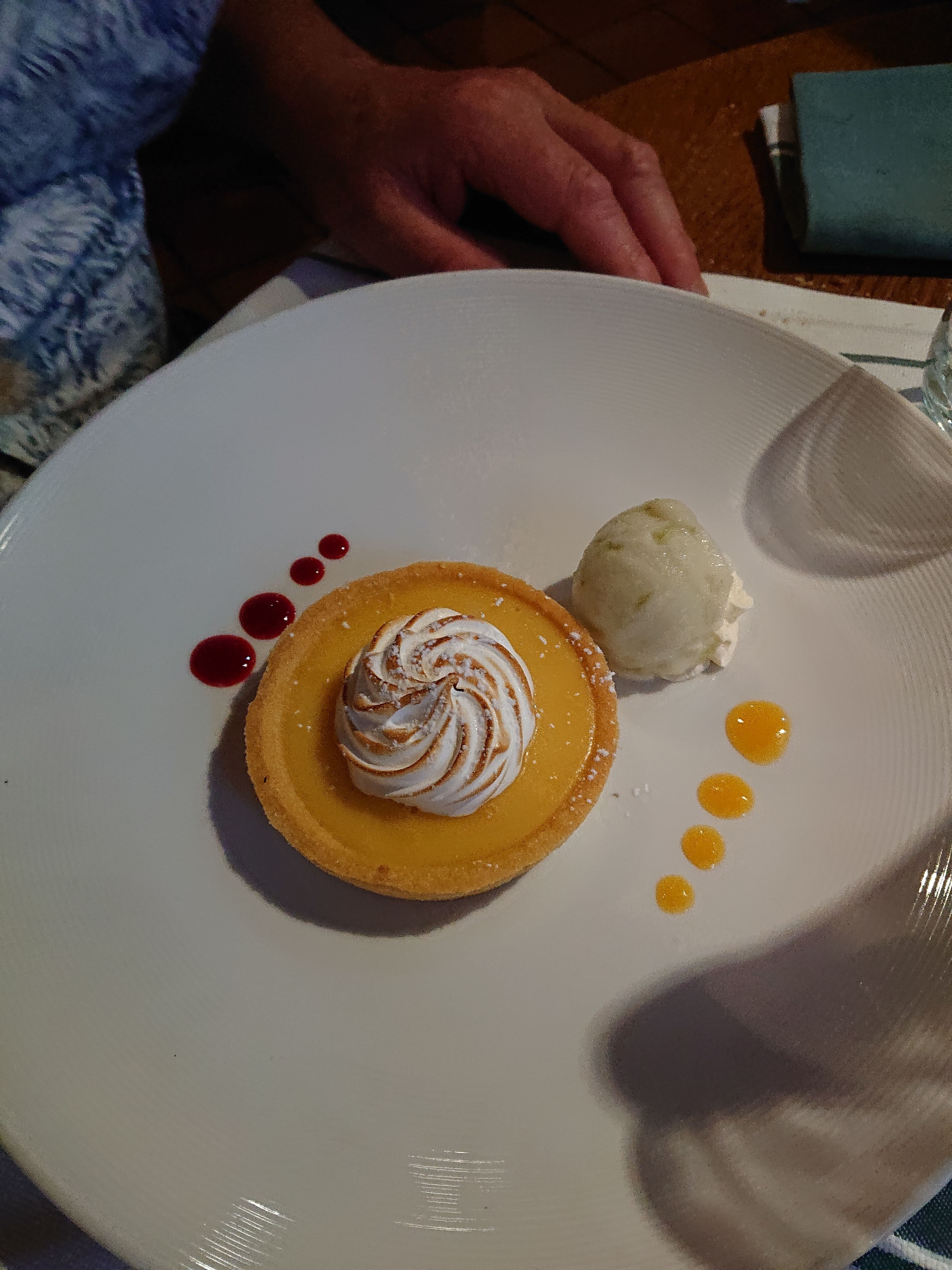 Très déçu beaucoup de va et viens autour de la table,des chariots de vaisselles beaucoup de monde, serveur, cuisiniers... Les plats ont été expédié à une vitesse inimaginable. Entrée correct, Le plat de pintade qui manque de cuisson et quelle déception pour le dessert. Soit disant un fondant au citron??? banal cake,Une boule de sorbet citron tout cela noyé sous un coulis de fruits rouges. La goutte d'eau la cuillère en plastique pour le café vraiment très décevant.