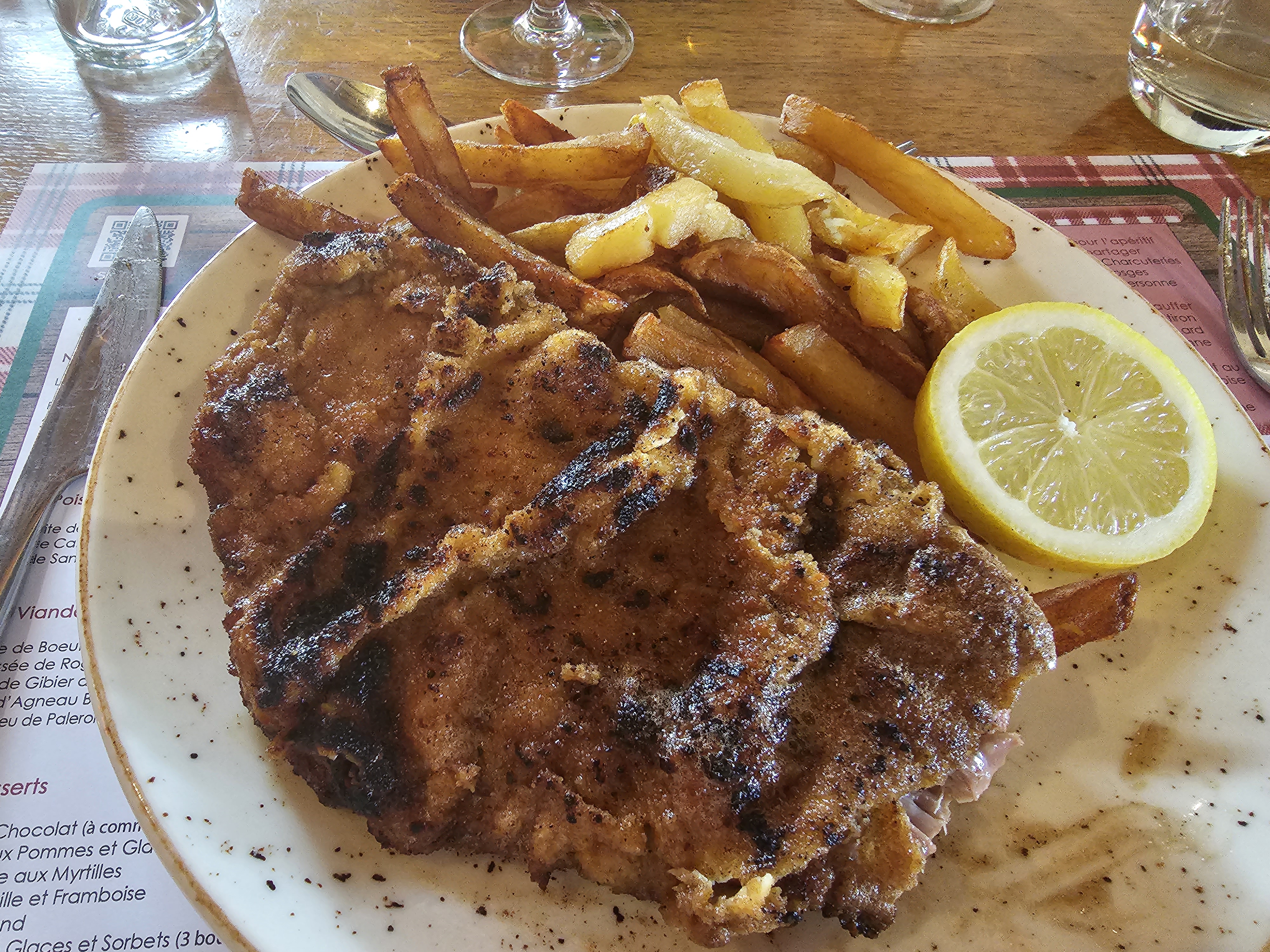 Lieu très agréable proche du centre ville de Gerardmer. Le cadre est chaleureux et la nourriture excellente. Nous avons pris le porc confit, les côtés d'agneau la pièce de bœuf. Il y avait également pris un menu enfant avec steak haché avec une très bonne sauce accompagné de frites maison et une gaufre très grande pour un enfant. Très belle expérience 😊