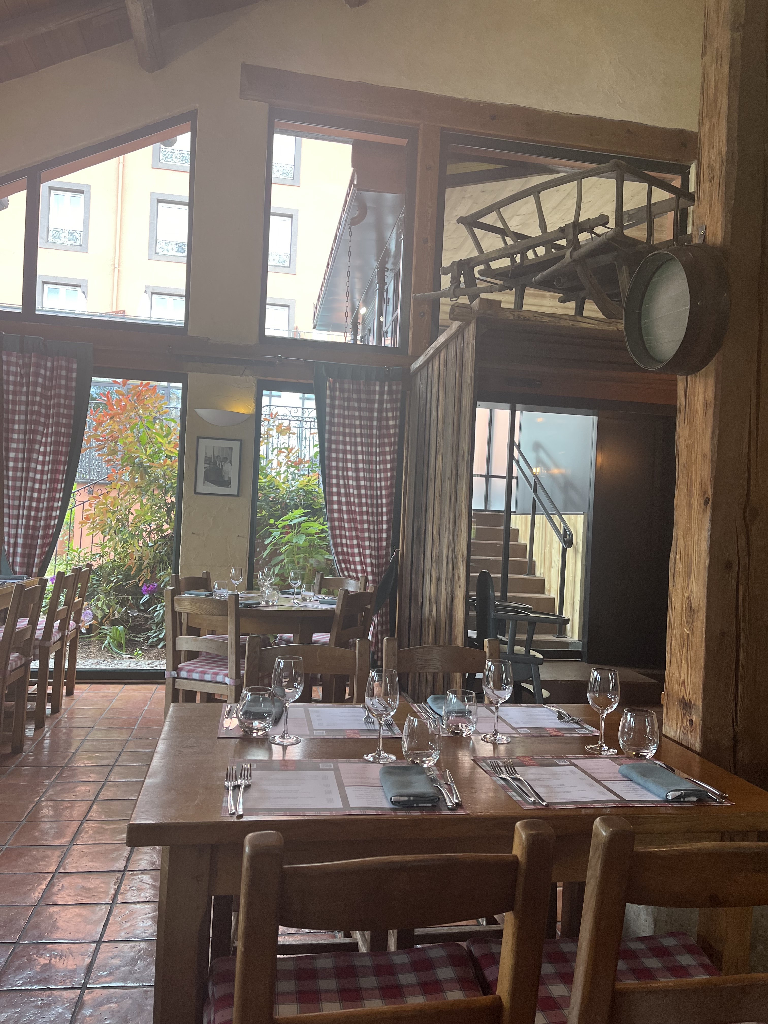 Belle découverte. Ambiance chaleureuse et conviviale dans des bois anciens. Décoration typique dans la chaleur du feu 🔥 lieu très réputé pour recevoir le monde du showbiz avec son festival. Nous avons apprécié ce moment de détente en duo. Cuisine traditionnelle et fine. Il y a juste à dire que la jeune qui nous a servi (ils étaient 2) manquait un peu de sourire ☺️