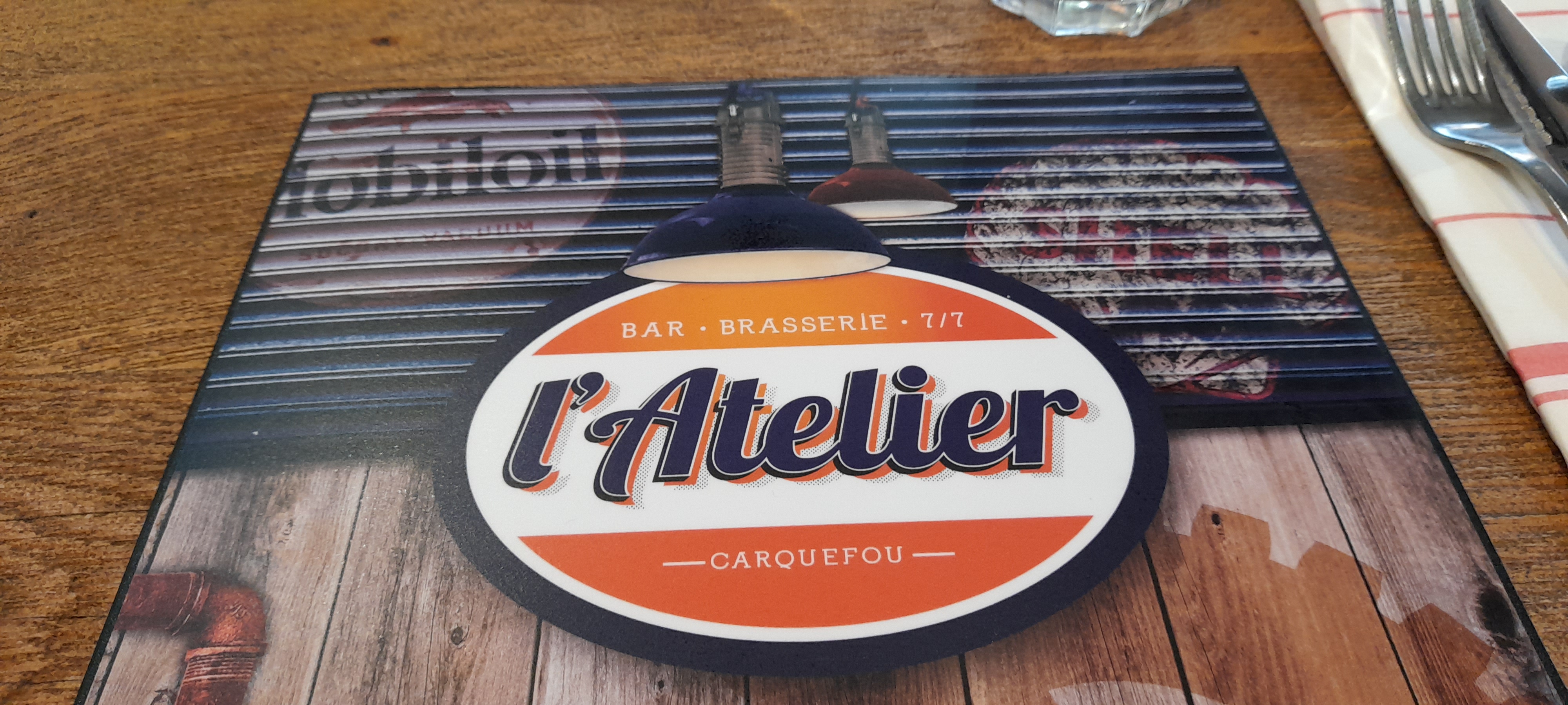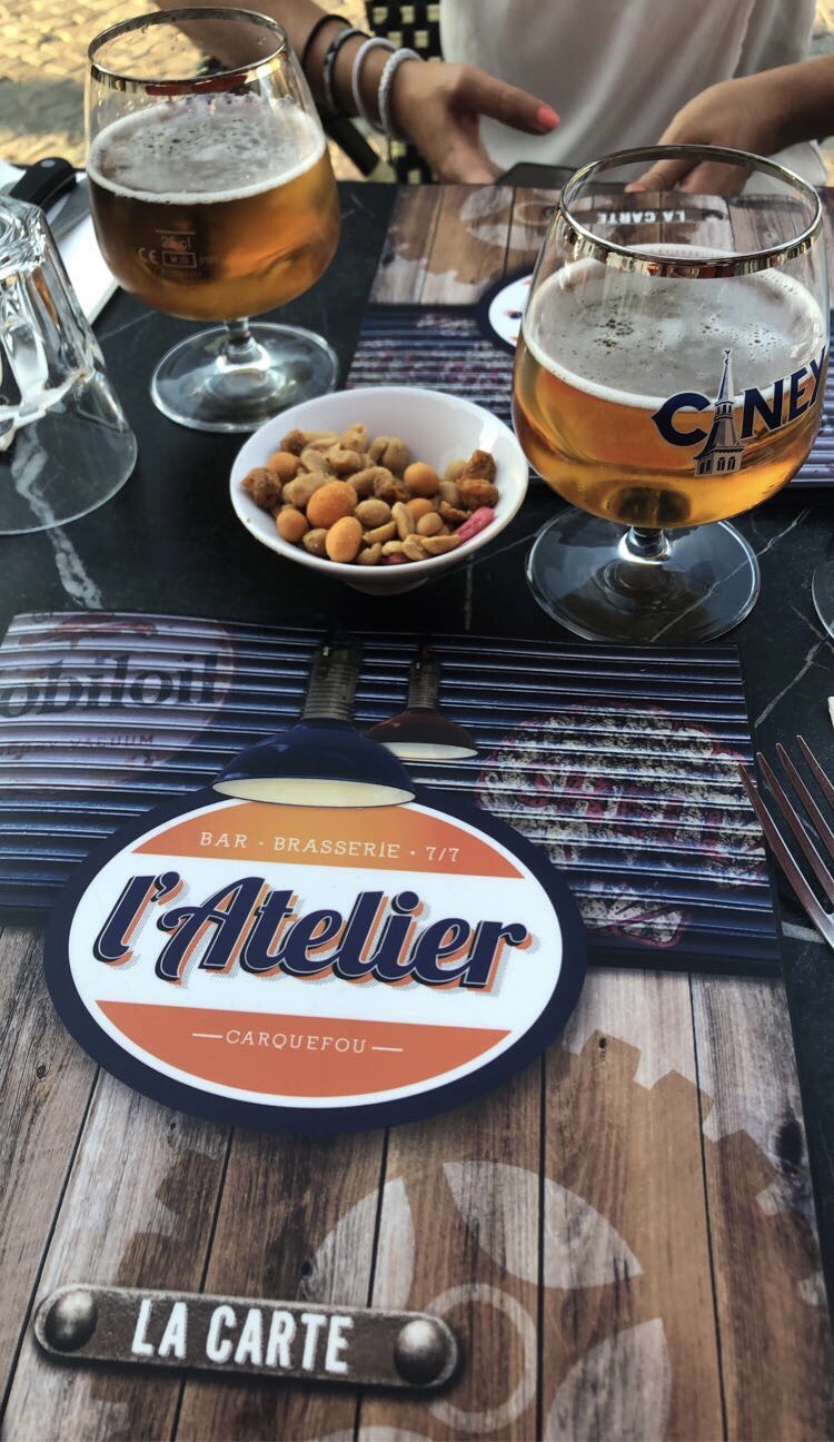 1er test de l'Atelier qui une fois passé la porte d'entrée porte bien son nom... Au delà du fait que le restaurant est bien situé au pied de l'église magnifiquement éclairée la nuit je voudrais saluer le travail sur la déco ! Donc après ce petit plaisir visuel - nous sommes accueillis correctement et le restaurant devient très bruyant car il y a une bonne ambiance qui se dégage on s'y sent bien. Bar inside. C'est effectivement bon - rien à dire sur ce point. Et très (trop copieux ?). Petit bémol sur le prix un chouil' trop élevé... l'amplitude horaire et hebdomadaire ainsi que la clientèle Carquefolienne et la qualité des plats font toute la réussite de cet établissement.