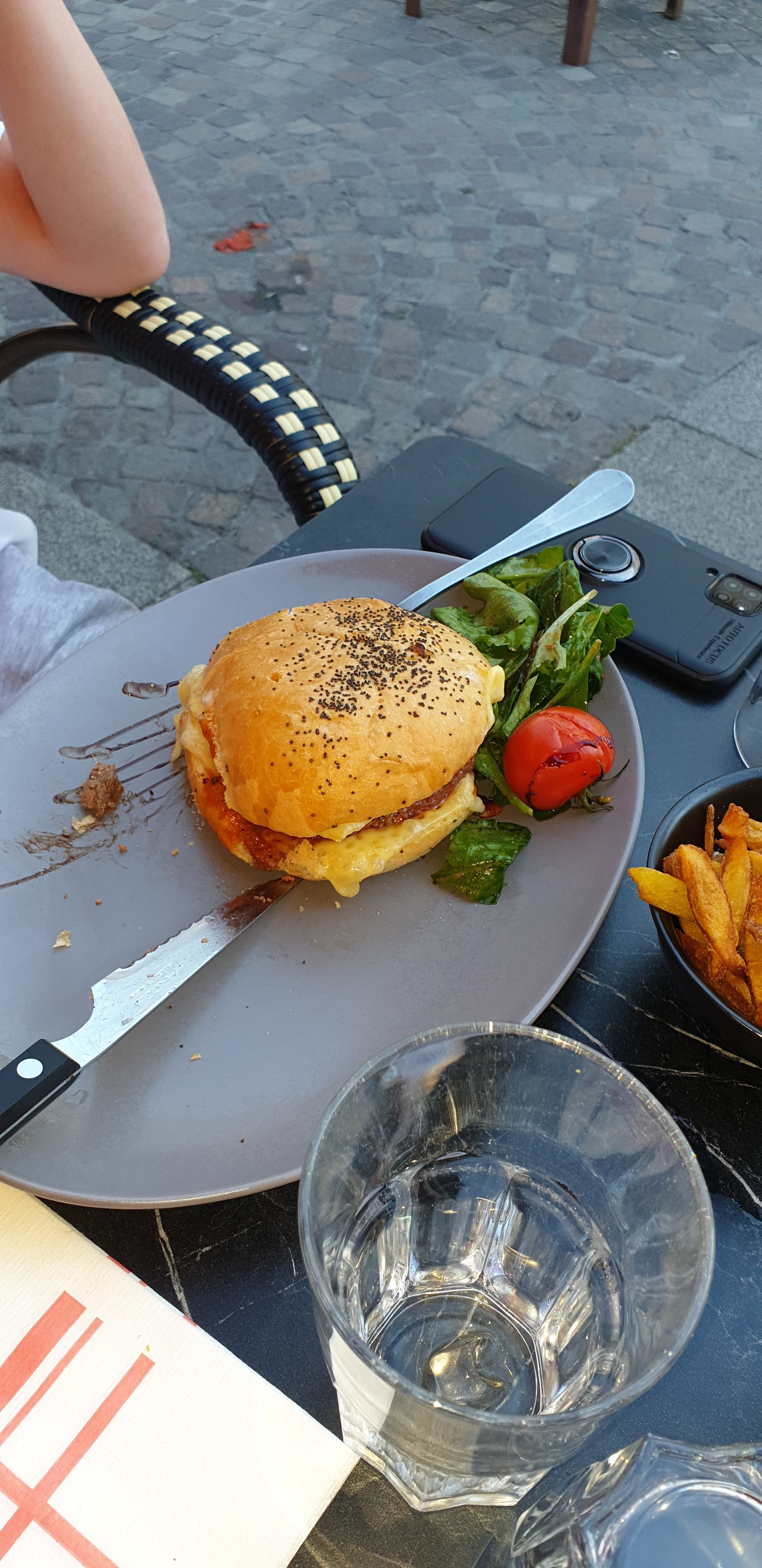 Burger cuisson exemplaire, dit montagnard avec du reblochon, du lard et des galettes de pommes de terre et c'est même pas lourd ! Accompagné avec des frites maison et sa sauce au truffes salade verte bonne bonne aussi ! Ambiance chaleureuse et personnel hyper pro.