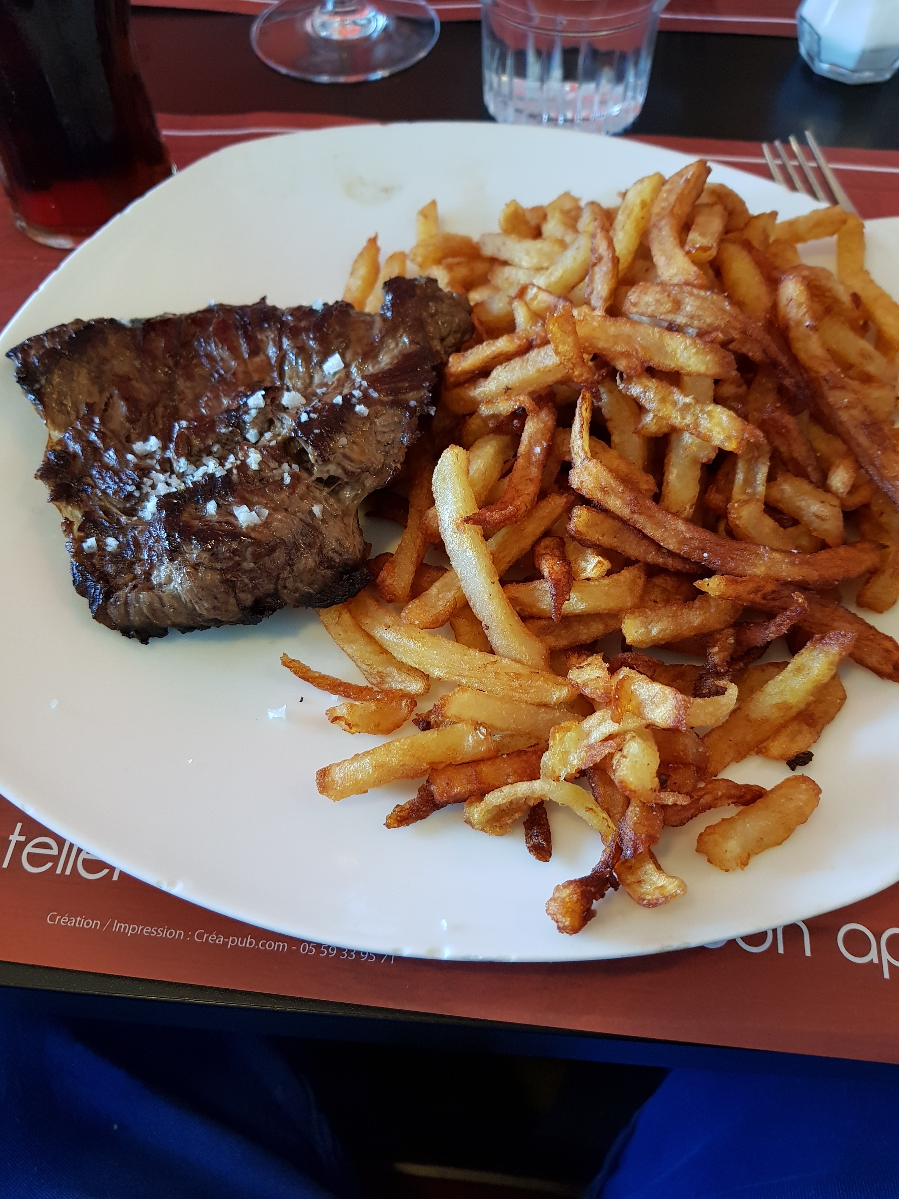 Très déçue. Table réservée mais donnée à d'autres clients. Patron pas du tout organisé. Désagréable avec son employé devant nous. Comptoir rempli de verres sales. Frites à moitié cuites. Bref pas une bonne expérience