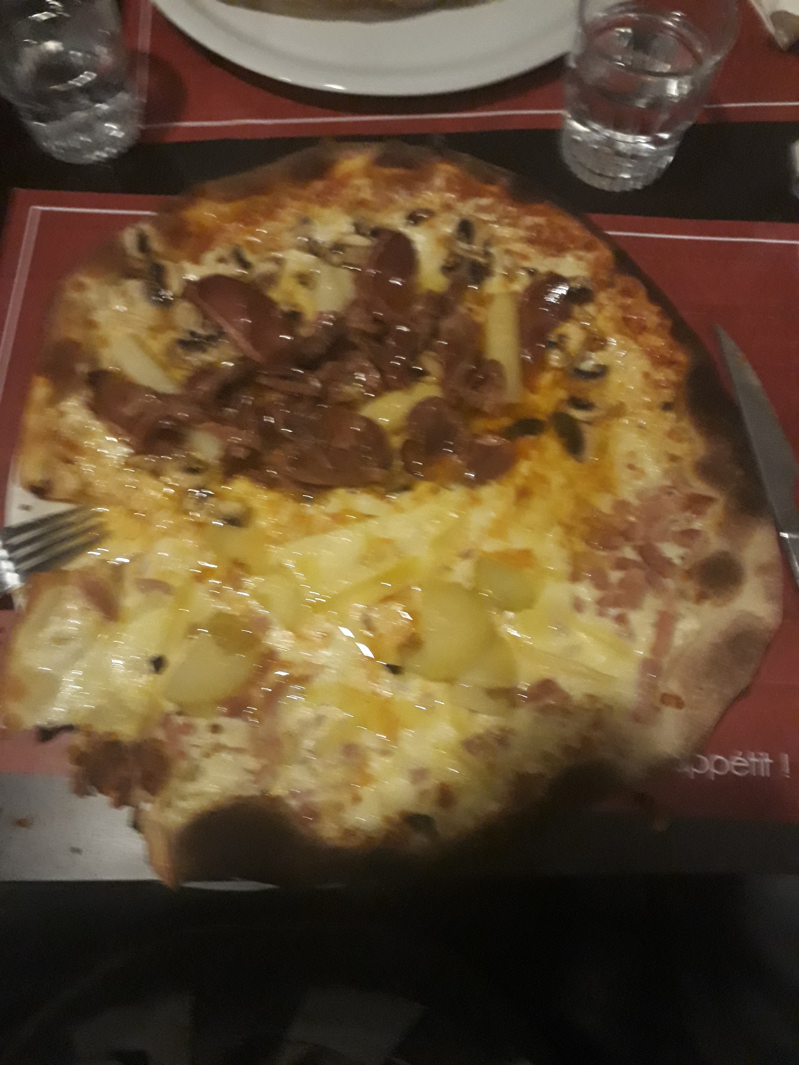 L'entrecôte était plus que grasse donc rien a manger dessus. Une pizza fond crème demandé et reçu fond tomate. Des sauces en supplément alors que les quantités ne servent même pas à tremper toutes nos frites !