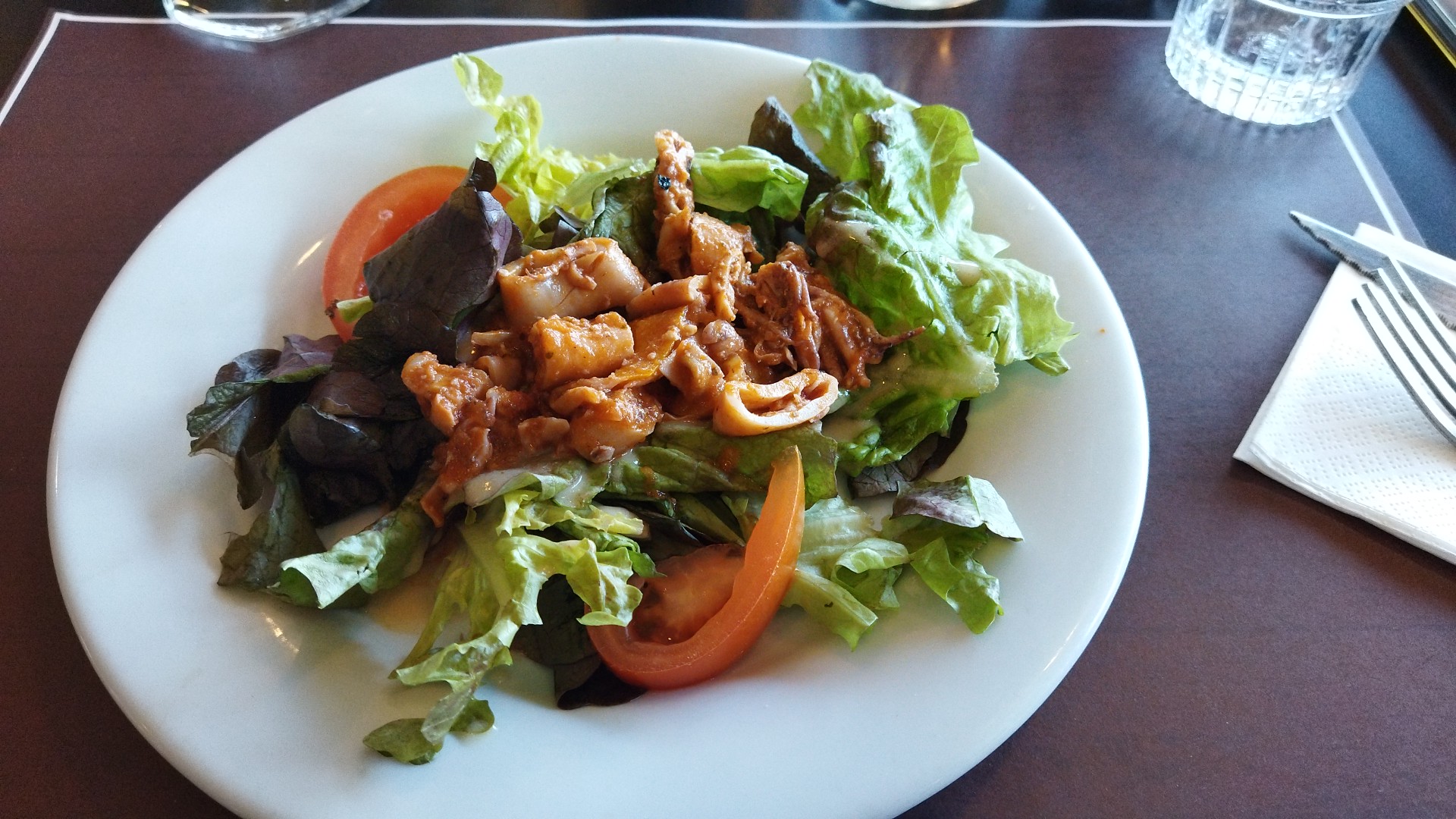 Dans le menu à 20 euros salade landaise ou salade gourmande (salade verte, gruyère râpé, jambon blanc) waouh!!! Cest quoi qui est gourmand, la landaise oui mais pas la gourmande Trop grosse différence entre les deux plats pour un même menu à mon goût Après le reste correct
