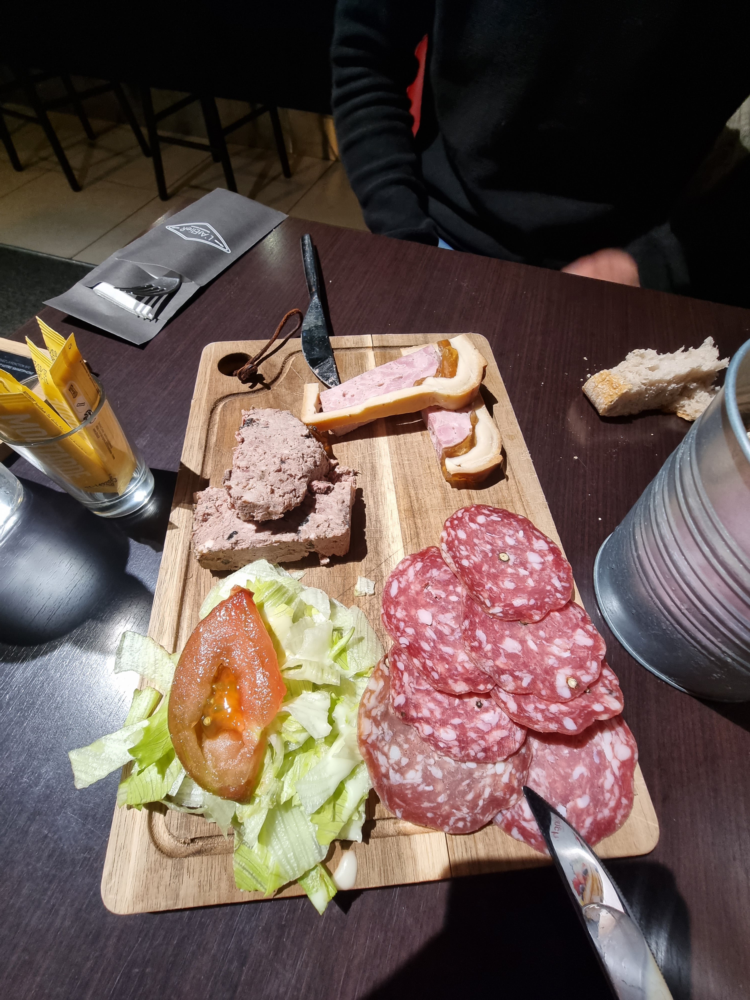 Très Décevant, planchette mixte à 16€ composée uniquement de 3 tranches de jambon cru, de 6 morceaux de fromage et qqs feuilles de roquettes flétries Une bière pas fraîche. Je ne recommande pas.