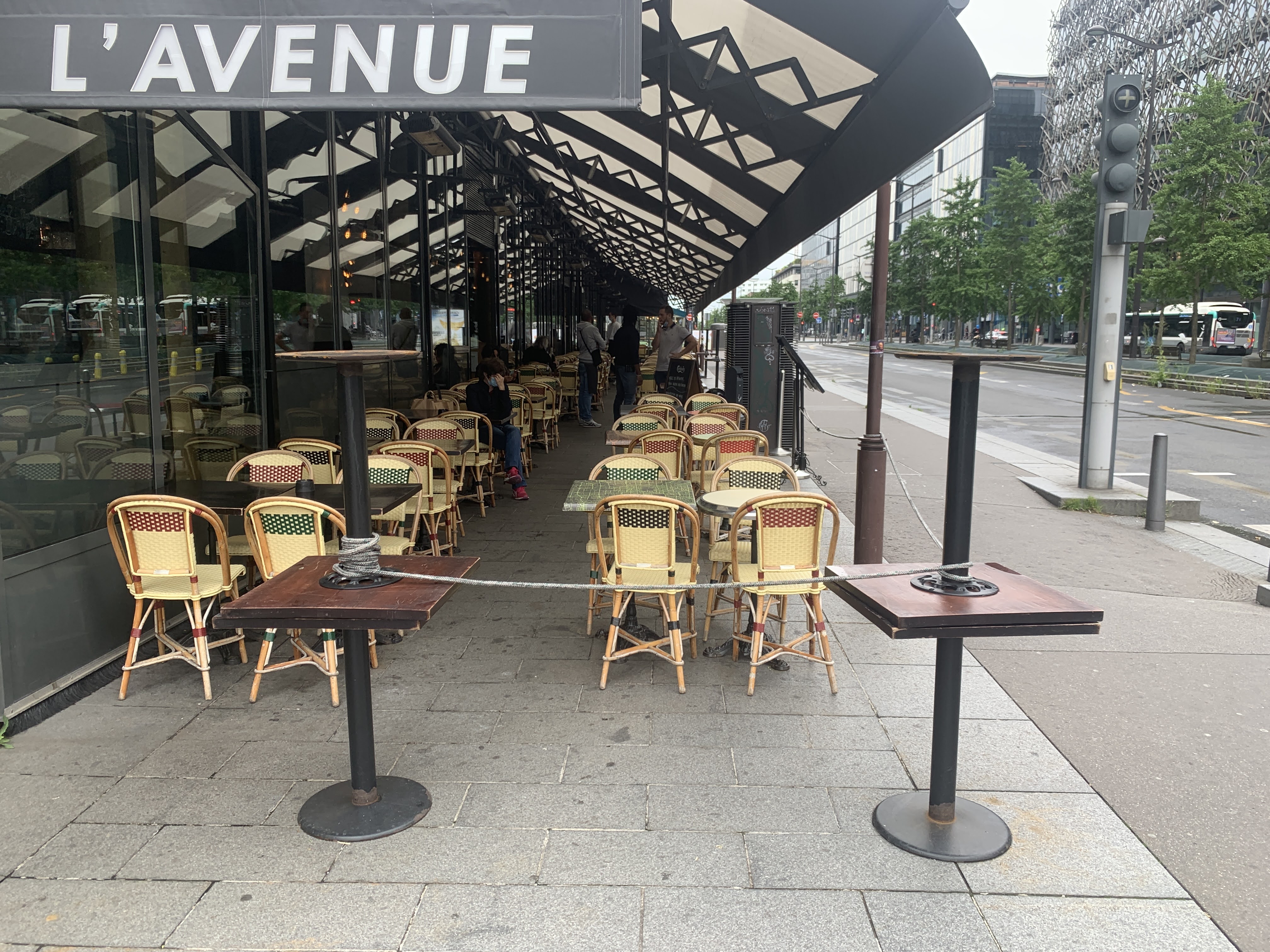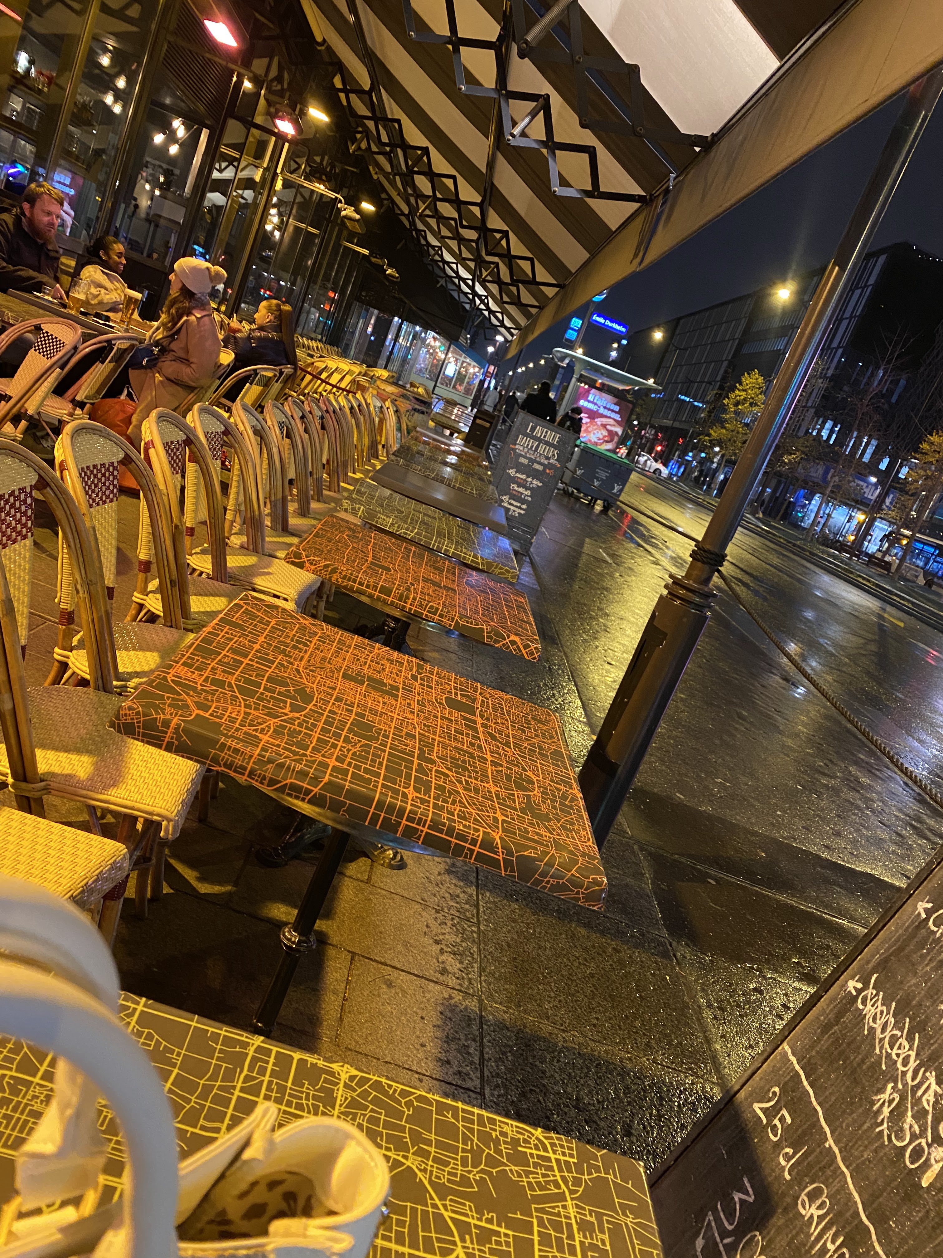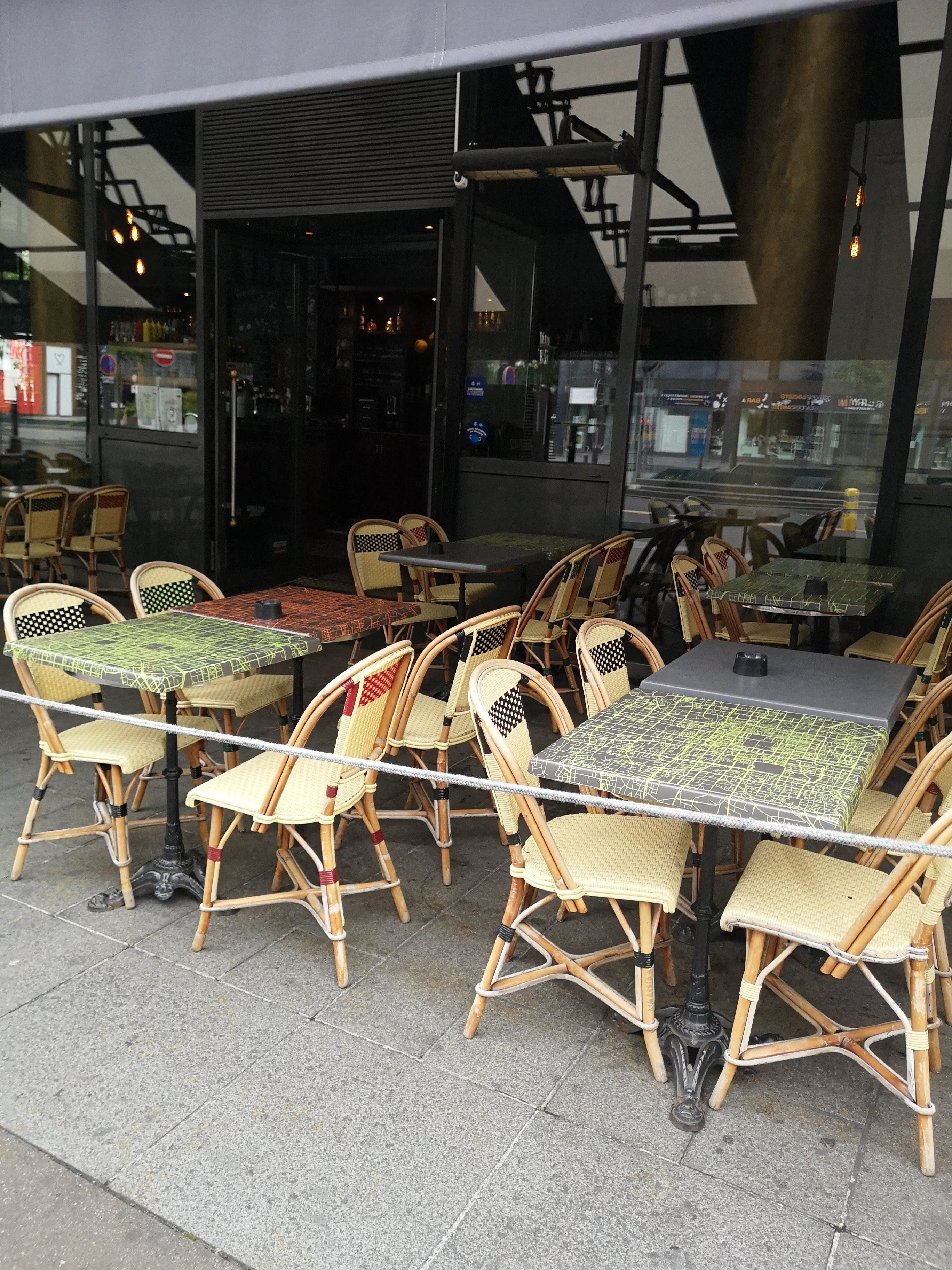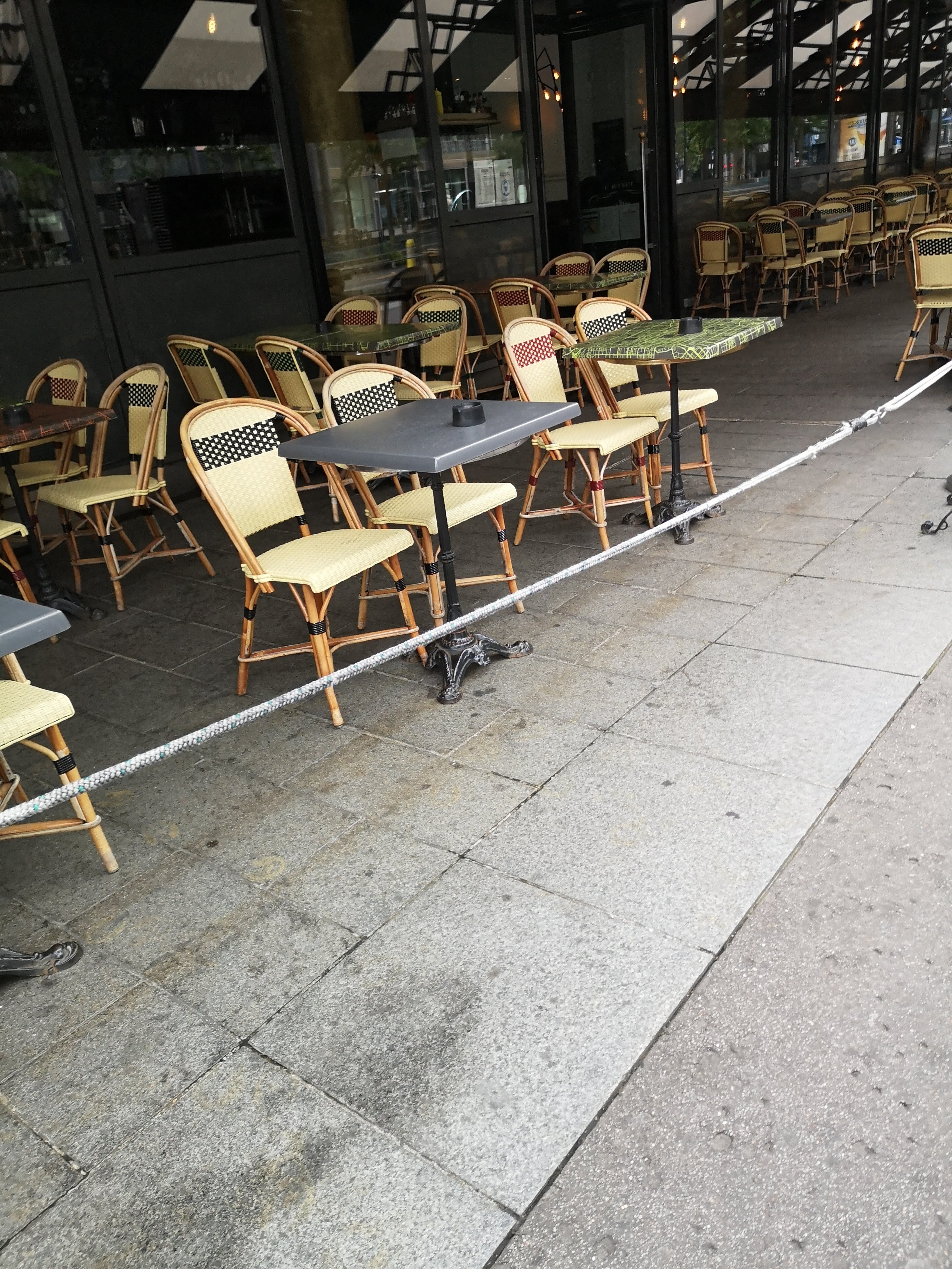 Une terrasse qui ressemble à une zad : une mauvaise corde et de mauvaises tables retournées pour la délimiter. Paris mérite mieux que ça.