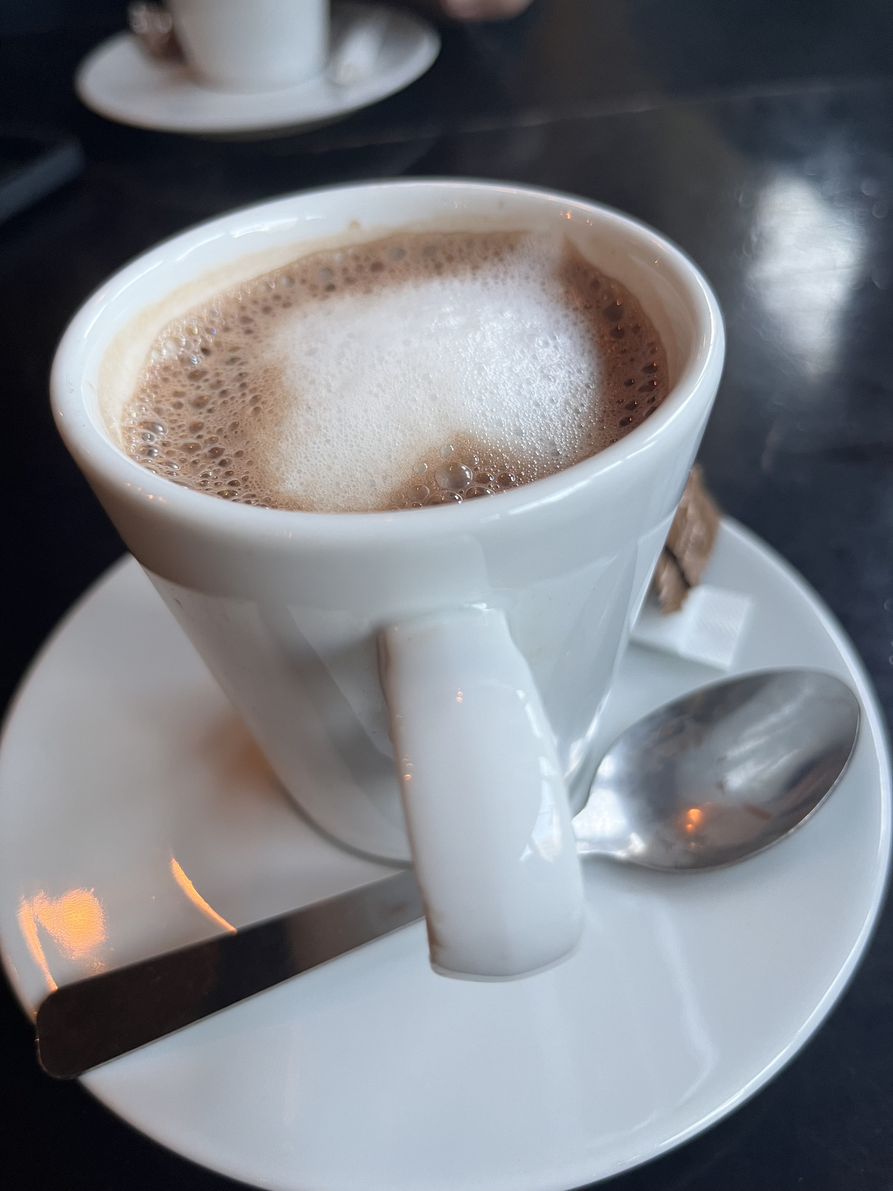 La crème au chocolat est bonne et la terrasse très bien située, face à un des plus beaux immeubles récents de Paris, construit par l'architecte du MUCEM Rudy Ricciotti. Et le service est sympa.