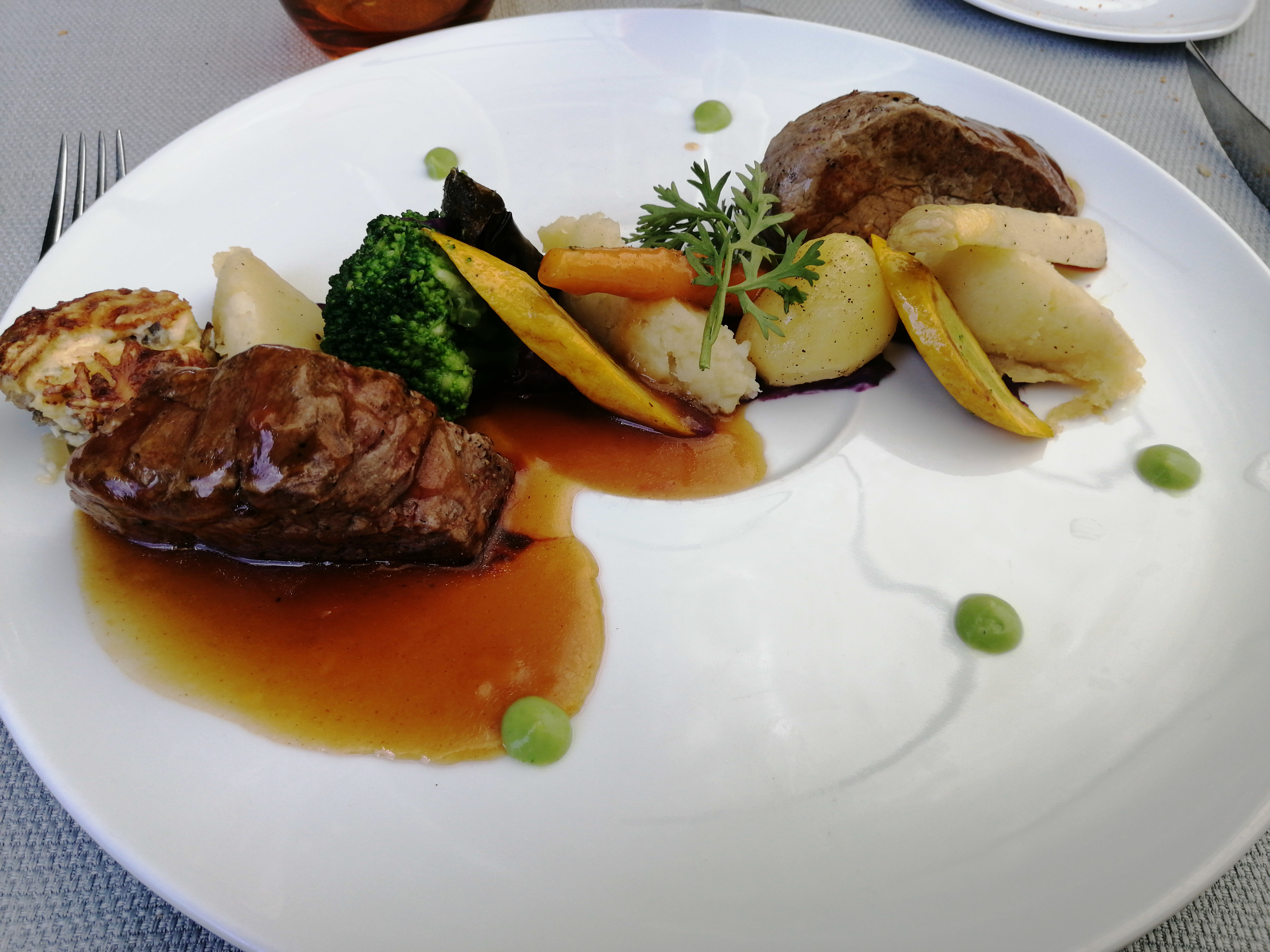 Bon accueil..attente un peu longue pour le plat... mais cela a été vite oublié.. un régal pour les yeux et pour les papilles ( la viande était excellente ..le poisson délicieux ..les cuissons parfaites... ) l entree et dessert etait aussi bon et le tout avec une présentation au top ... Merci ..... a fortement recommander ...