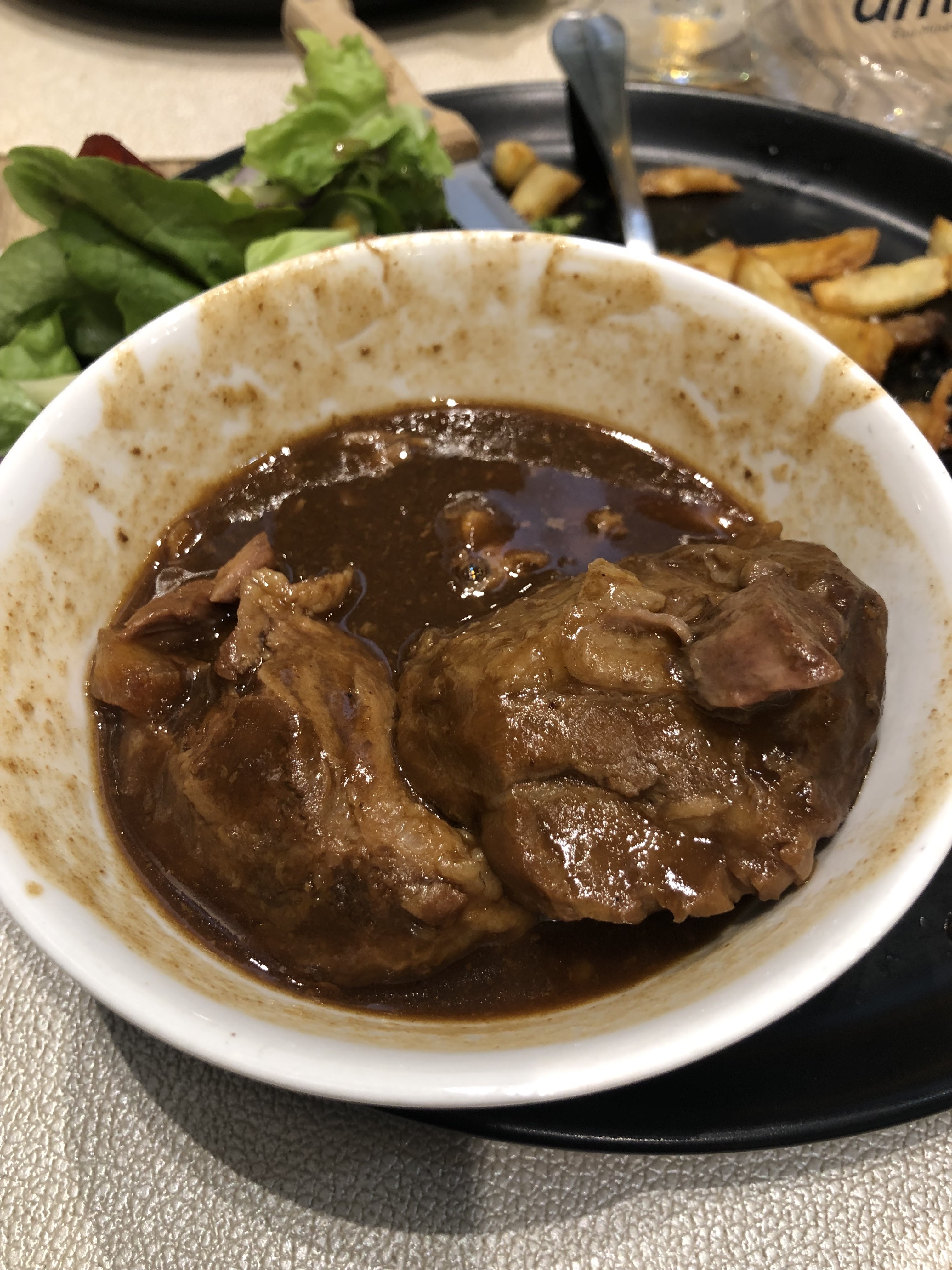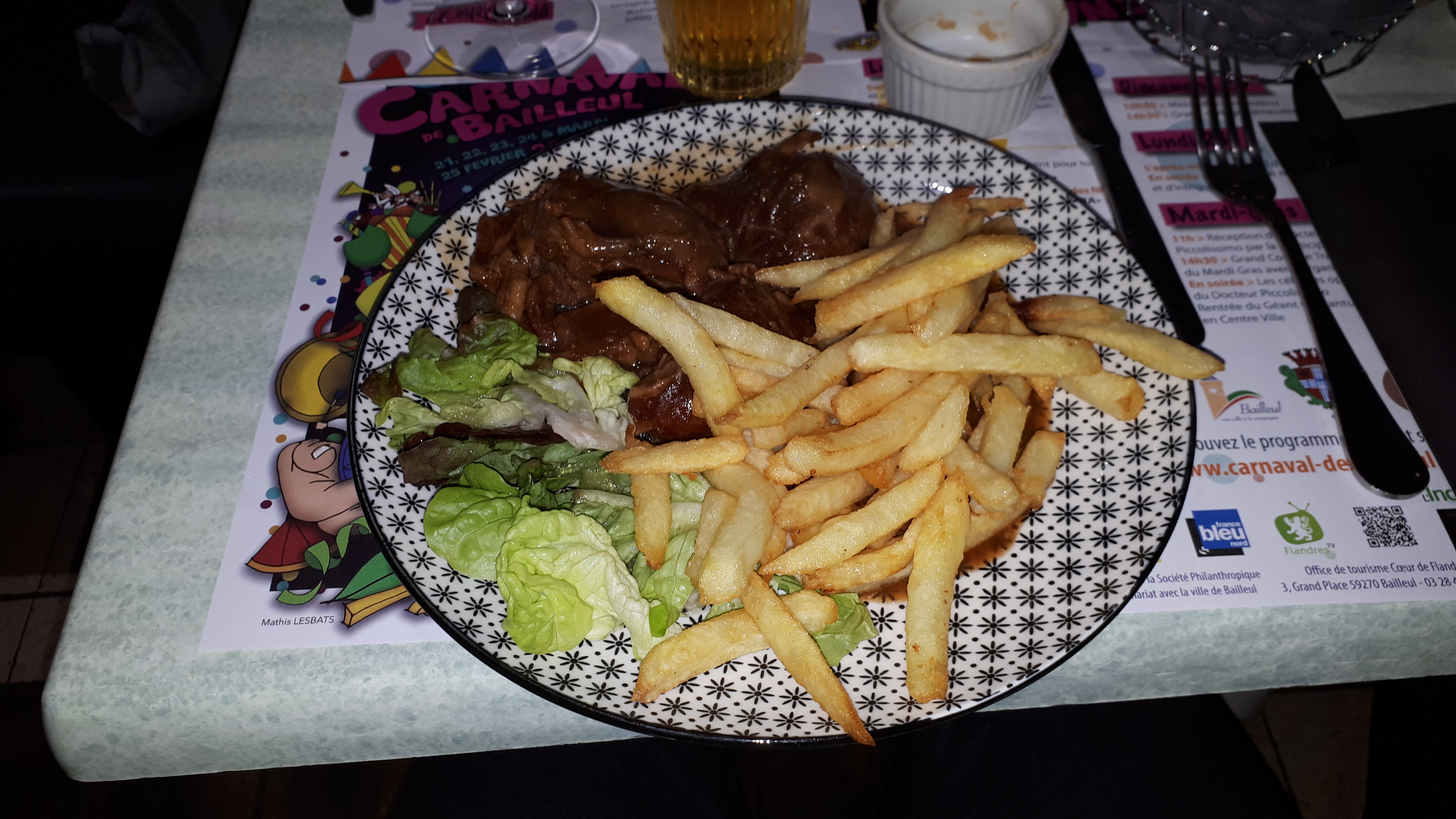 On y mange bien ! Succulent sauté de veau et frites délicieuses !