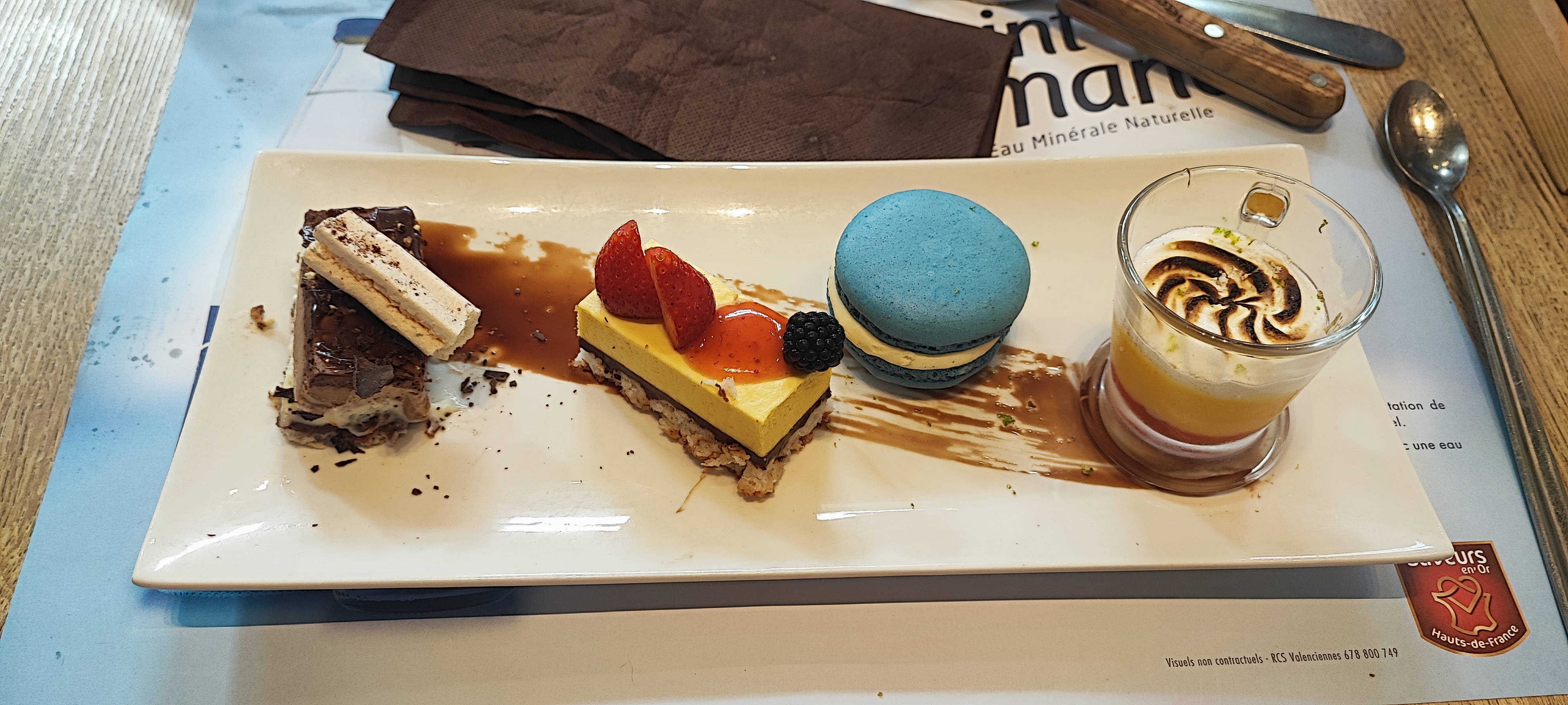 Jambonneau délicieux, dessert juste fabuleux... enfin on a du se battre car il ne restait qu 1 merveilleux. Sauce maroilles très fade et supplément pour avoir un peu plus un peu abuse à mon goût.