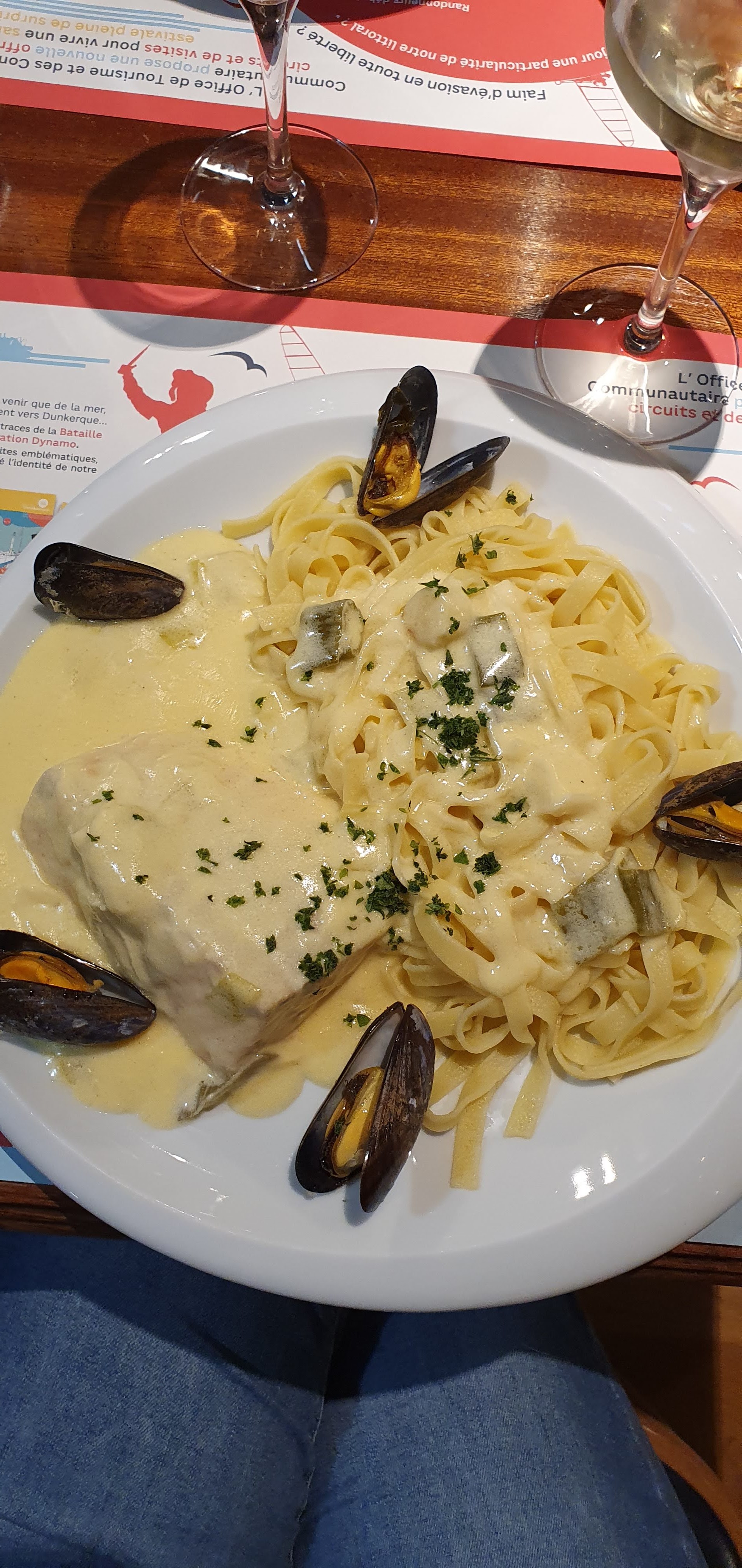 Coup de cœur pour ce restaurant du Dunkerquois qui m'a clairement impressionné. Simplement un des meilleurs endroits pour déguster un délicieux moules-frites ! Elles étaient parfaitement cuisinées, les frites les accompagnant aussi. Mon ami ayant pris le Welsh fut entièrement satisfait, aussi ! Il en est de même pour les autres plats à base de poisson. Le rapport qualité / prix est au rendez-vous et l'équipe est tout à fait sympathique. Bref : un lieu convivial où l'on mange très bien.