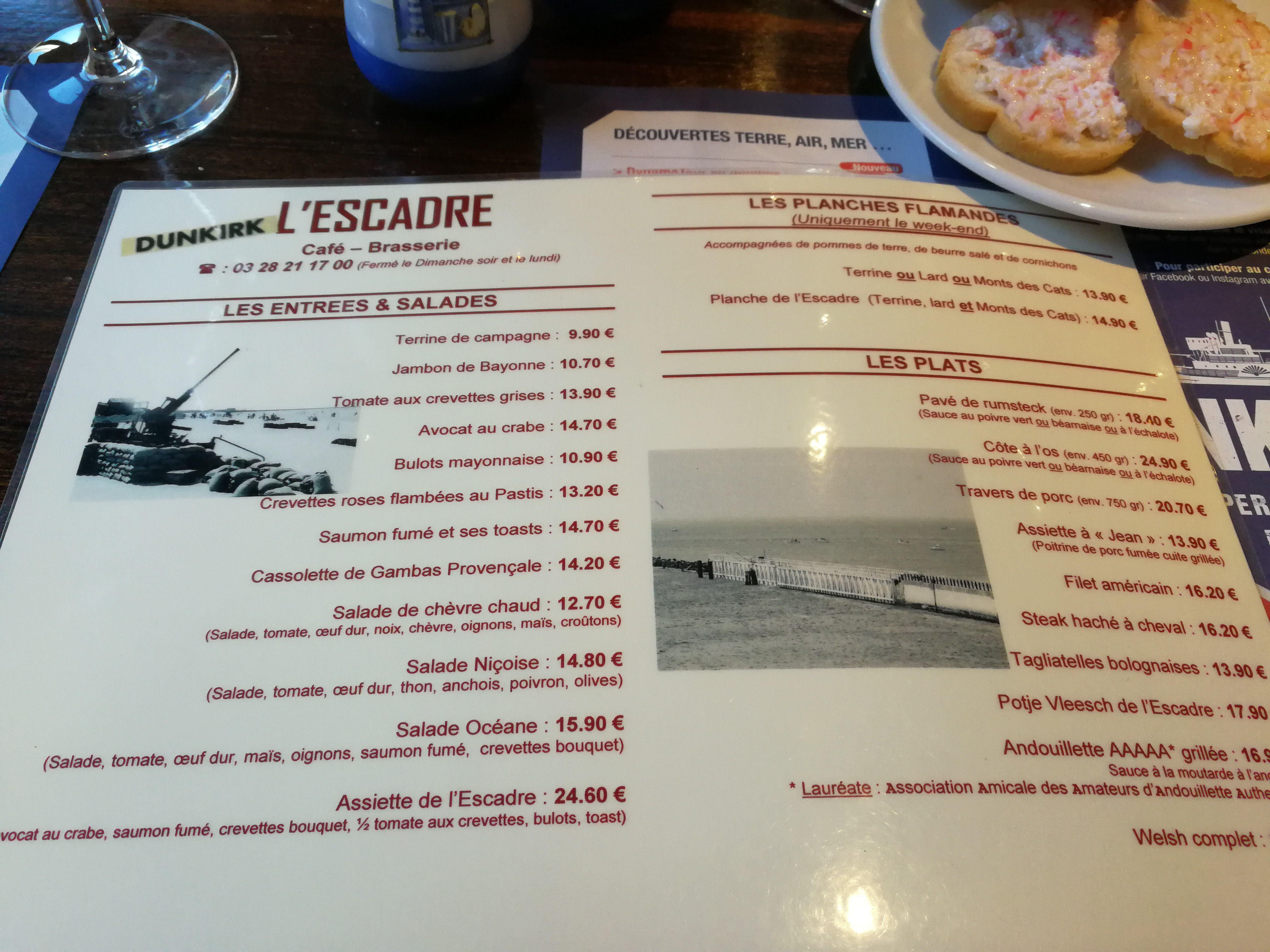 Très déçu!!!un pot je vleesch sec archi sec,filet américain!!!!une présentation dans l'assiette !!!l'assiette de l'escadre, crevettes, boulots,saumon fumé, et crevettes grises tout décongeler, le saumon fumé était tiède bref,une grosse erreur d'avoir choisi ce restaurant