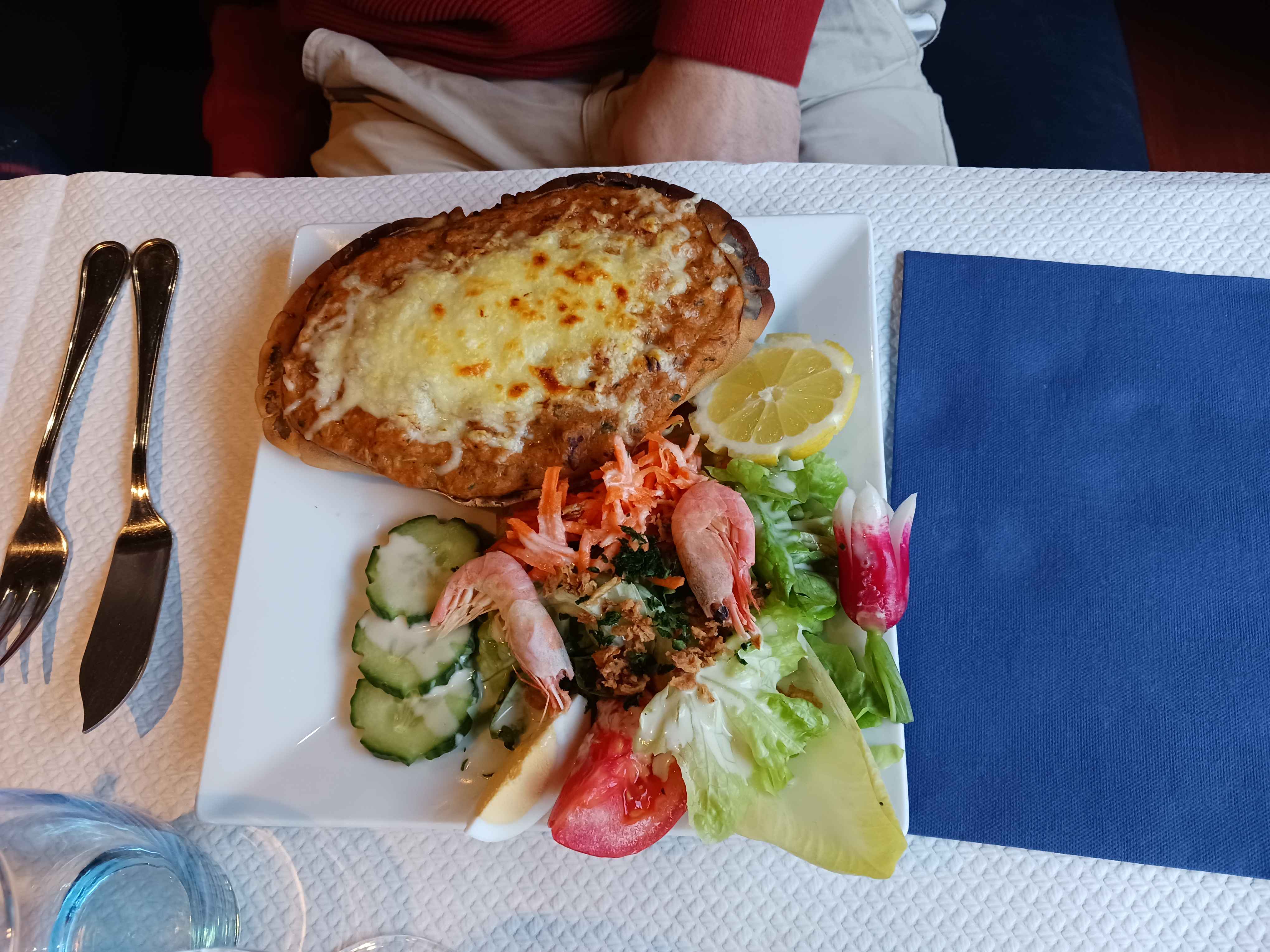 Un régal, entrée et plat copieux. Plus de place pour un dessert. Service impeccable. Personnel très agréable. Je recommande ++