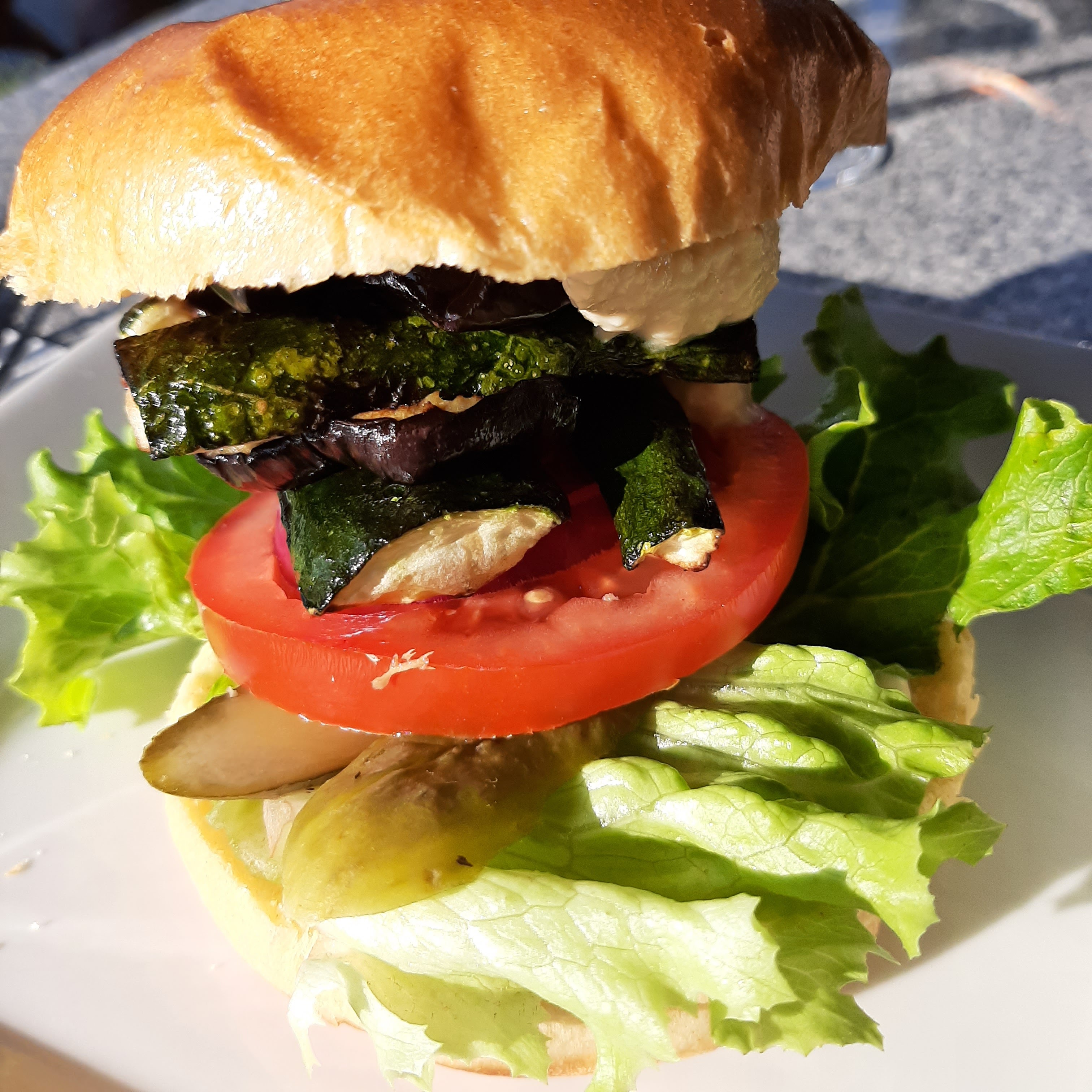 Burger végétarien et salade ; délicieux! Merci Meryl et Chris.
