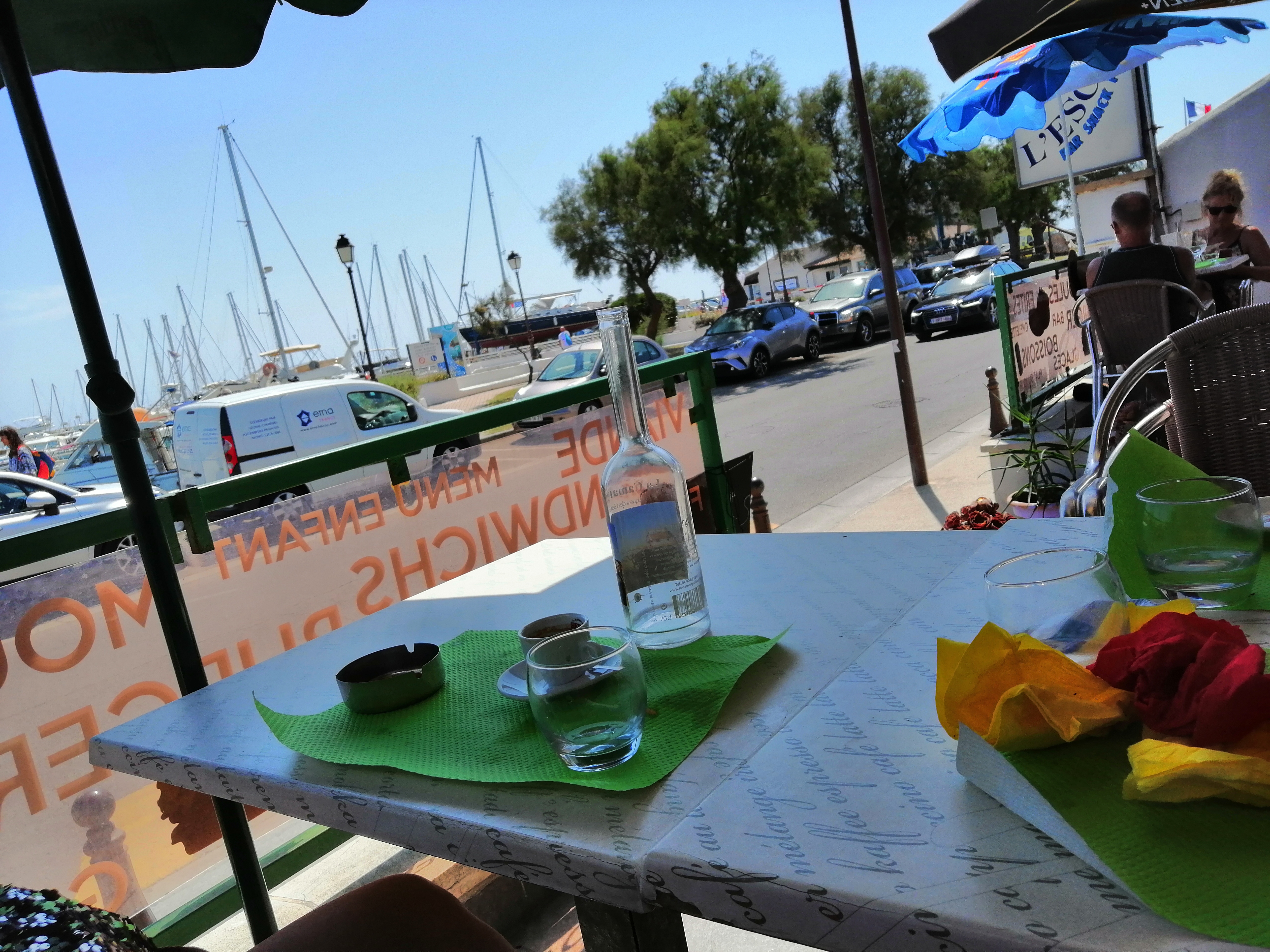 Repas tranquille sur la terrasse face au Port après le tour de Vaccares en Vtt, un hameau de paix .
