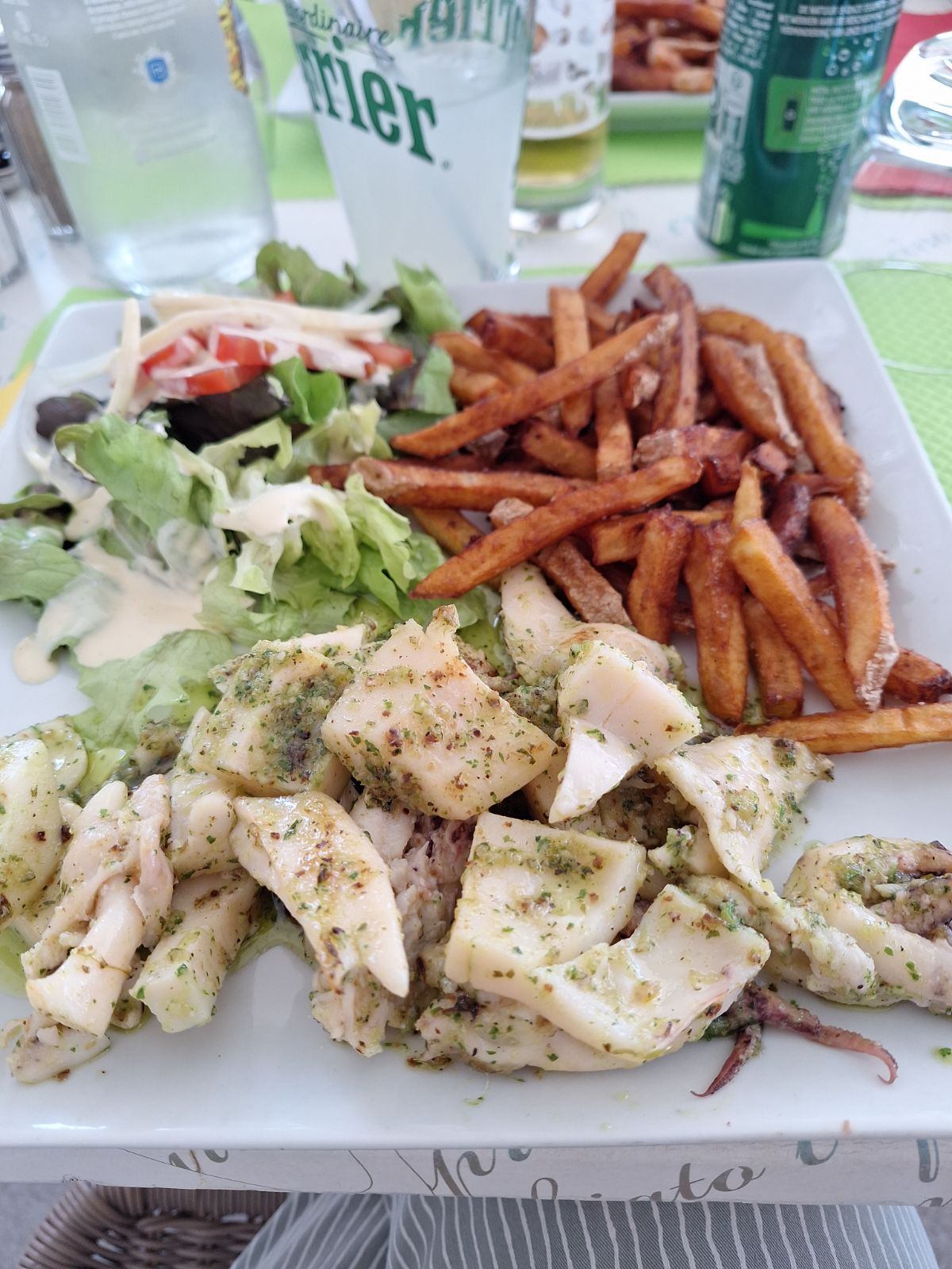 Un super lieu improbable pour bon repas sur le port des Sainte-Marie. Le personnel y est très sympathique et réactif. Nous recommandons ce lieu. Et en plus des frites maison, poisson frais etc.. et à l’écoute des clients!