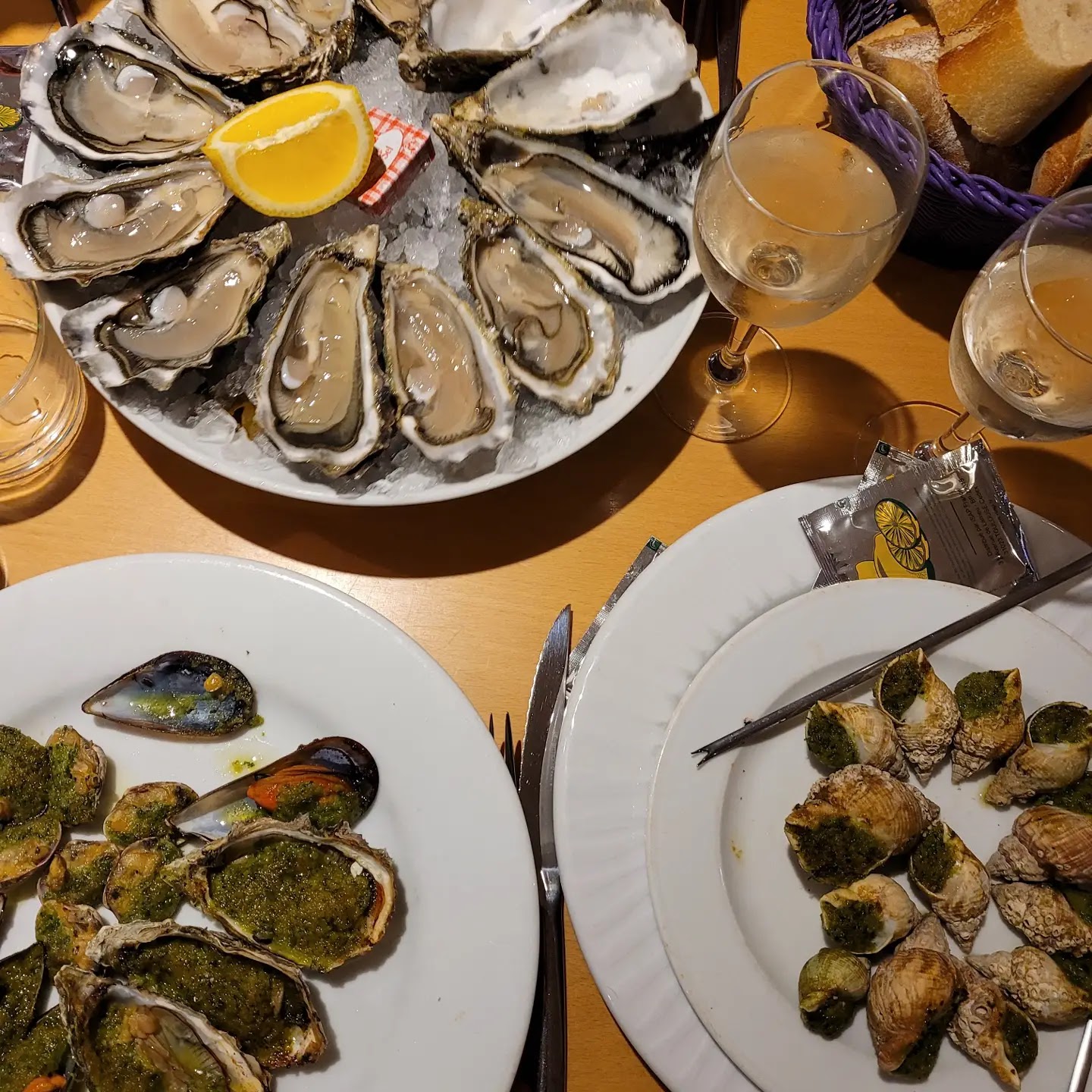 Resto sympas mais un peu déçus. Les huîtres étaient quasiment toutes laiteuses (ça après c'est un peu difficile de ne pas en avoir vu le mois d'août). Nous avons pris des moules frites très bonne mais la quantité est trop petite. On reste un peu sur notre fin concernant la présentation du plat. Sinon le dessert aux abricots étaient très originale et j'ai vraiment beaucoup aimé. Peut être qu'on attendais un peu trop de ce restaurant... Dommage !