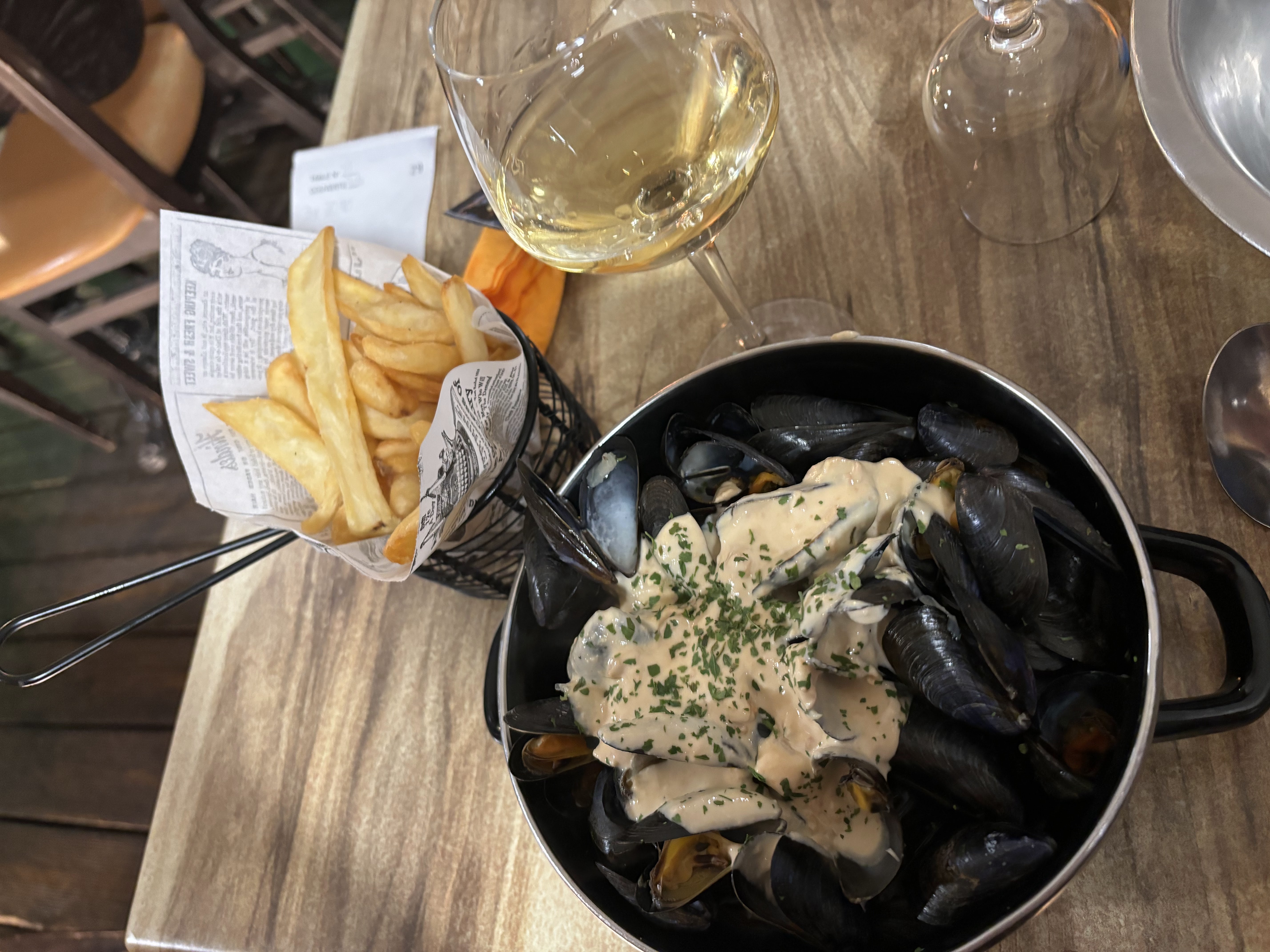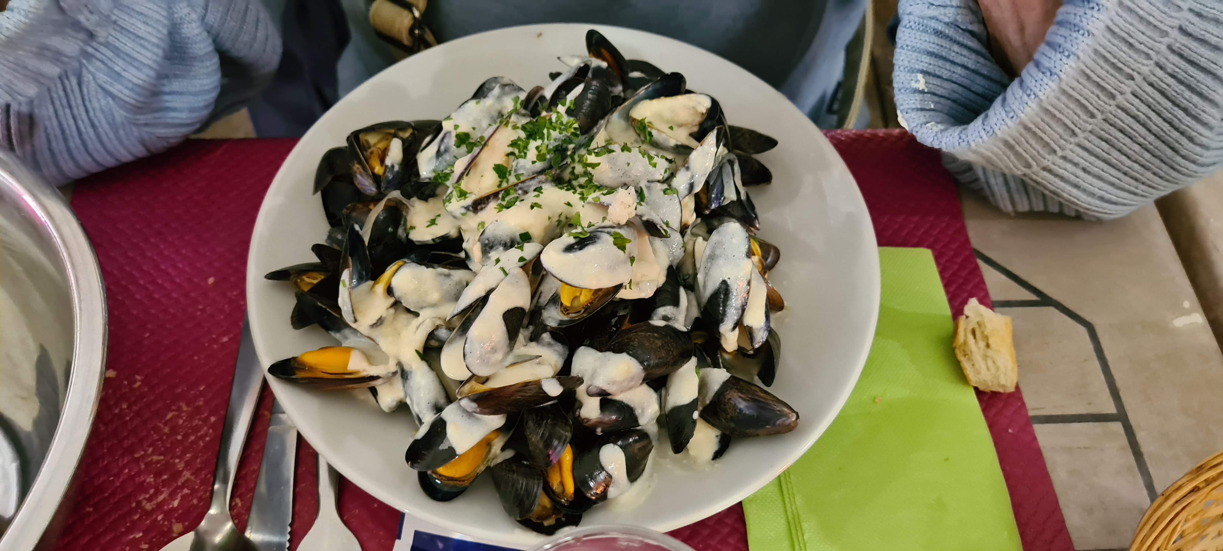 Restaurant convivial. Dégustation de moules marinières frites. Plat simple mais valeur sûre.