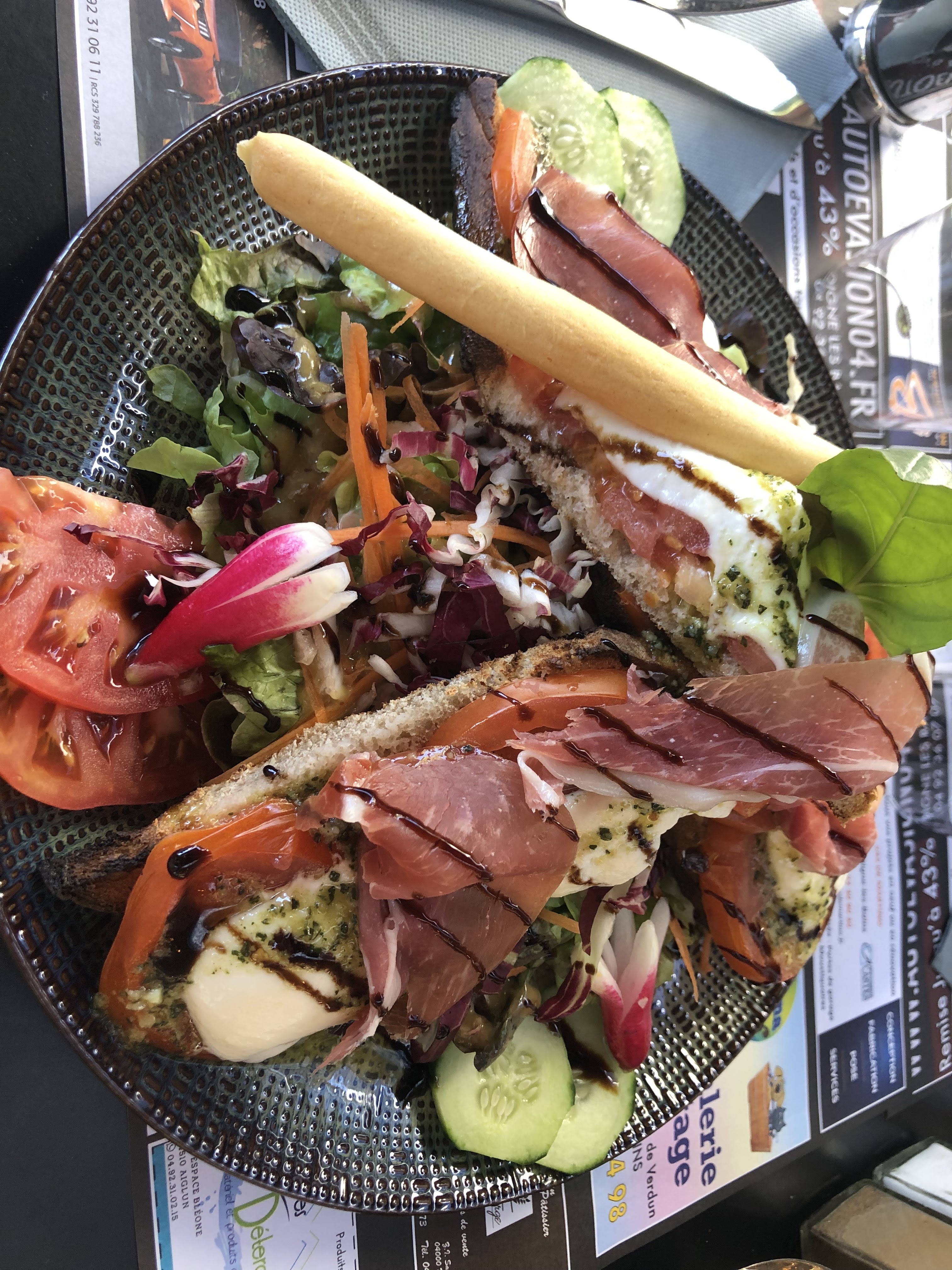 Petite pause gourmande lors d'une tournée de livraison. On s'est régalé. Du personnel très sympa et les salades accompagnées d'un verre de rosé étaient très copieuses et succulentes 😍😍😍