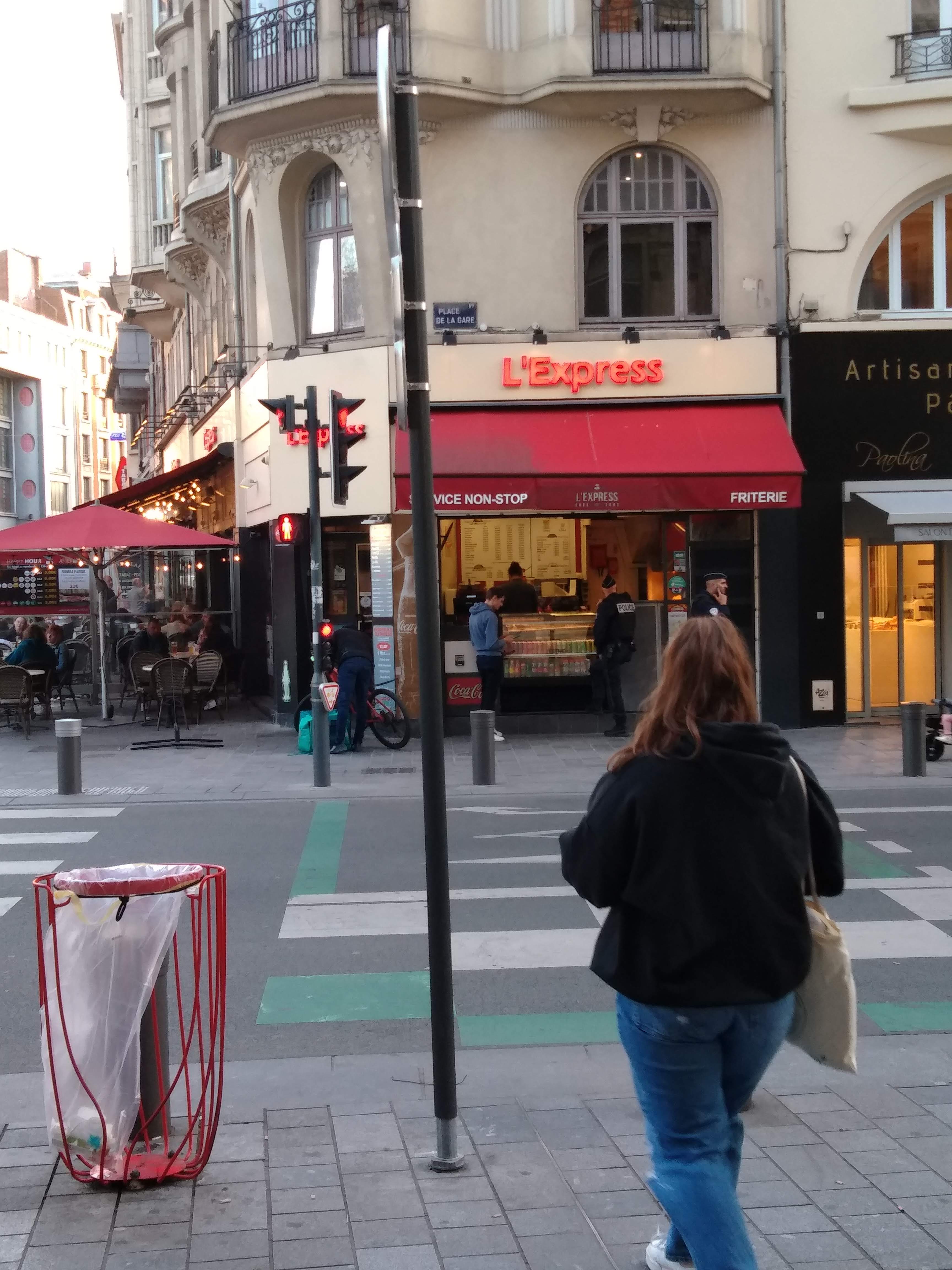 Cela fait 10 ans que je suis à Lille et pour moi, L'Express etait une institution (j'en ai mangé des frites chez vous à toutes les heures, avec amis comme avec famille). Et ce soir, je sors d'un concert, je demande s'ils servent toujours. On me repond que oui, on peut aller commander une frite à l'exterieur puis revenir s'assoir à une table et commander une biere. J'ai attendu un peu plus de 10min pour commander puis on m'a jeté parce que je ne commandais que des frites (desolee, je suis vege). Bien mal m'en a pris quand j'ai signale ça gentiment au serveur pourleur dire que j'etais un peu déçue : on m'a litteralement traite de conne et on m'a conseillé de ne plus revenir ! Donc, tres chere friterie L'Express, non seulement je ne mettrai plus les pieds chez vous, moi fidèle cliente, mais je vais faire fonctionner le bouche à oreille.