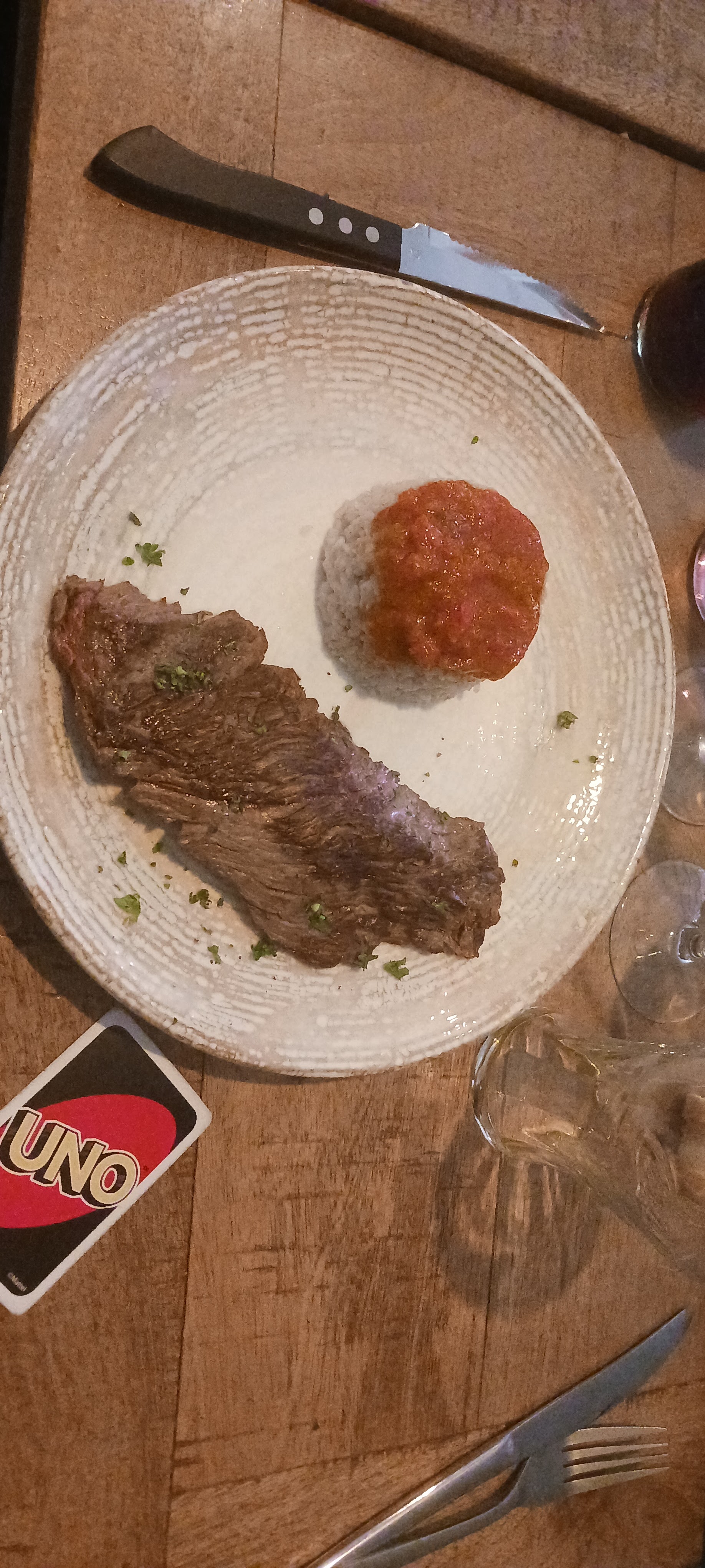 Bonne cuisine, mais peut-être revoir la présentation de la bavette avec du riz Lieu sympathique et plein de charme N'hésitez pas! Je recommande