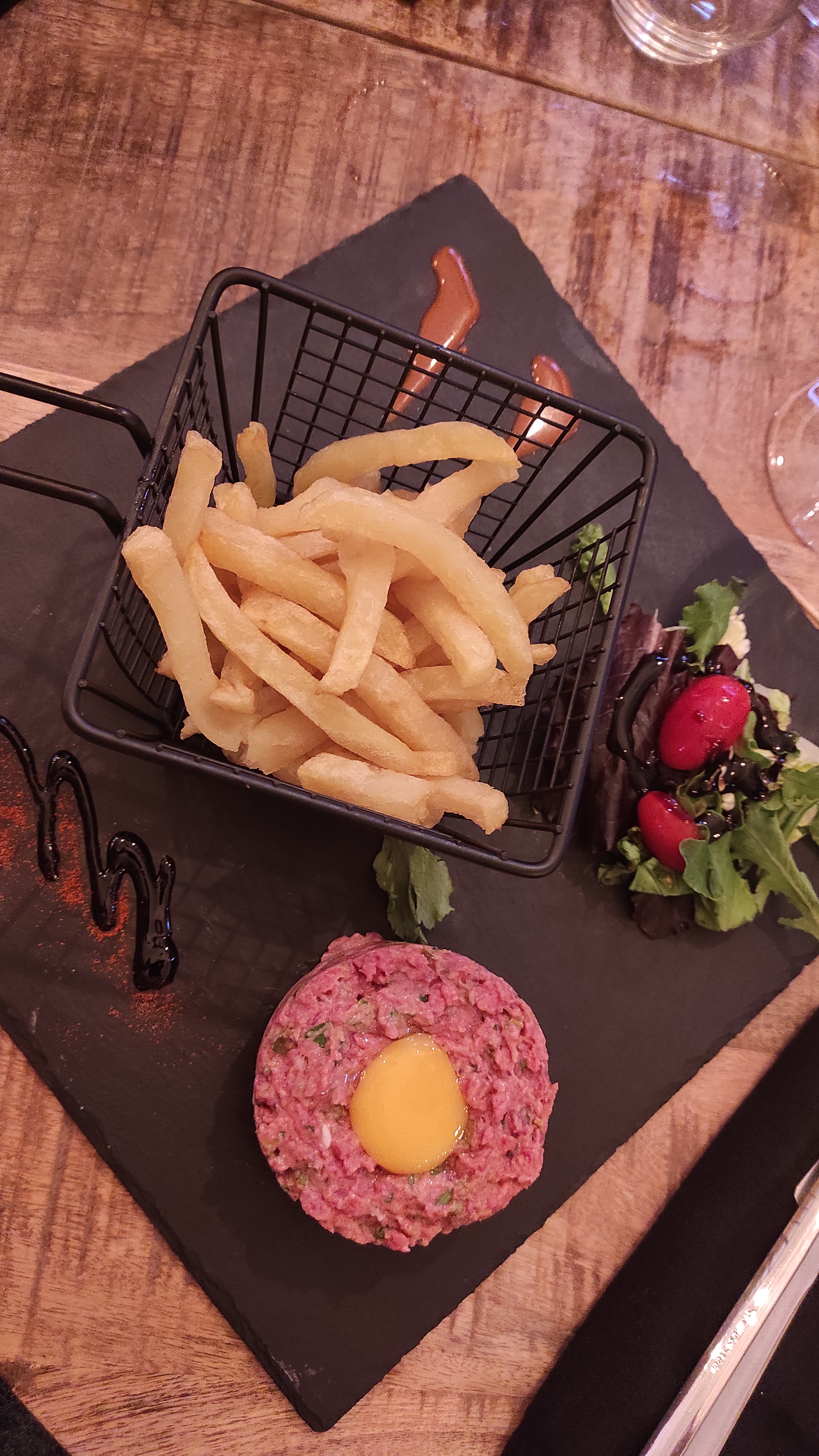 Je me suis rendu dans ce restaurant en consultant les avis Google. Je confirme que j'y ai été accueilli avec le sourire dans un cadre sympathique. Le tartare de bœuf préparé avec des frites maison accompagné d'une sauce maroilles était excellent
