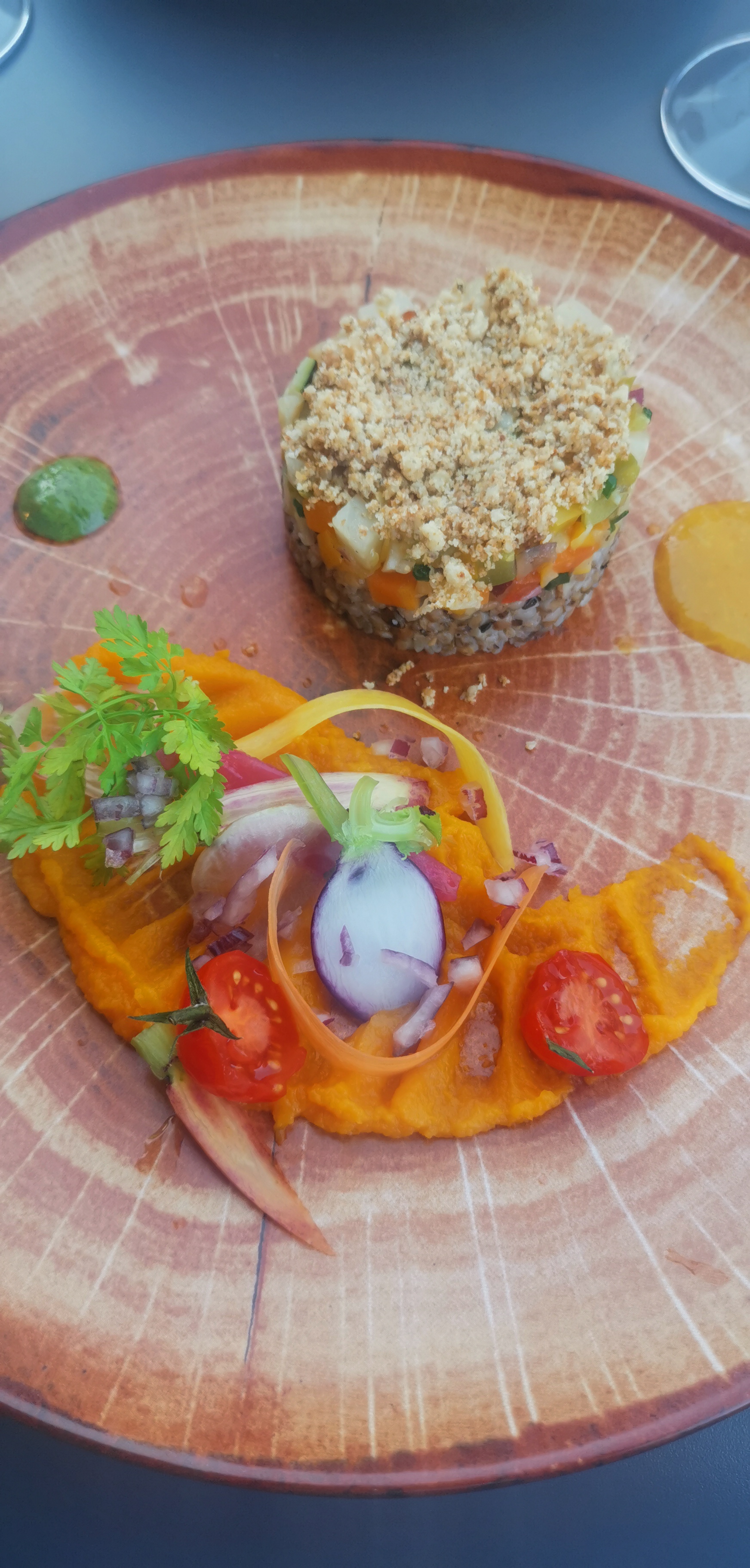 Excellent restaurant ! Plats raffinés, élaborés, originaux mélangeant différentes saveurs peu communes qui se marient très bien ensemble. Les amoureux du végétal seront comblés. Une option avec de la viande est également possible en plus d’une entrée et d’un plat proposant du poisson, pour les amateurs de poisson et de viande. Le restaurant sensibilise à la réduction de son impact environnemental & la protection de la planète par l’alimentation végétale qui apporte également de nombreux bienfaits pour la santé. J’ai vraiment apprécié le positionnement du restaurant, les plats proposés, l’ambiance et le service. À recommander sans modération !
