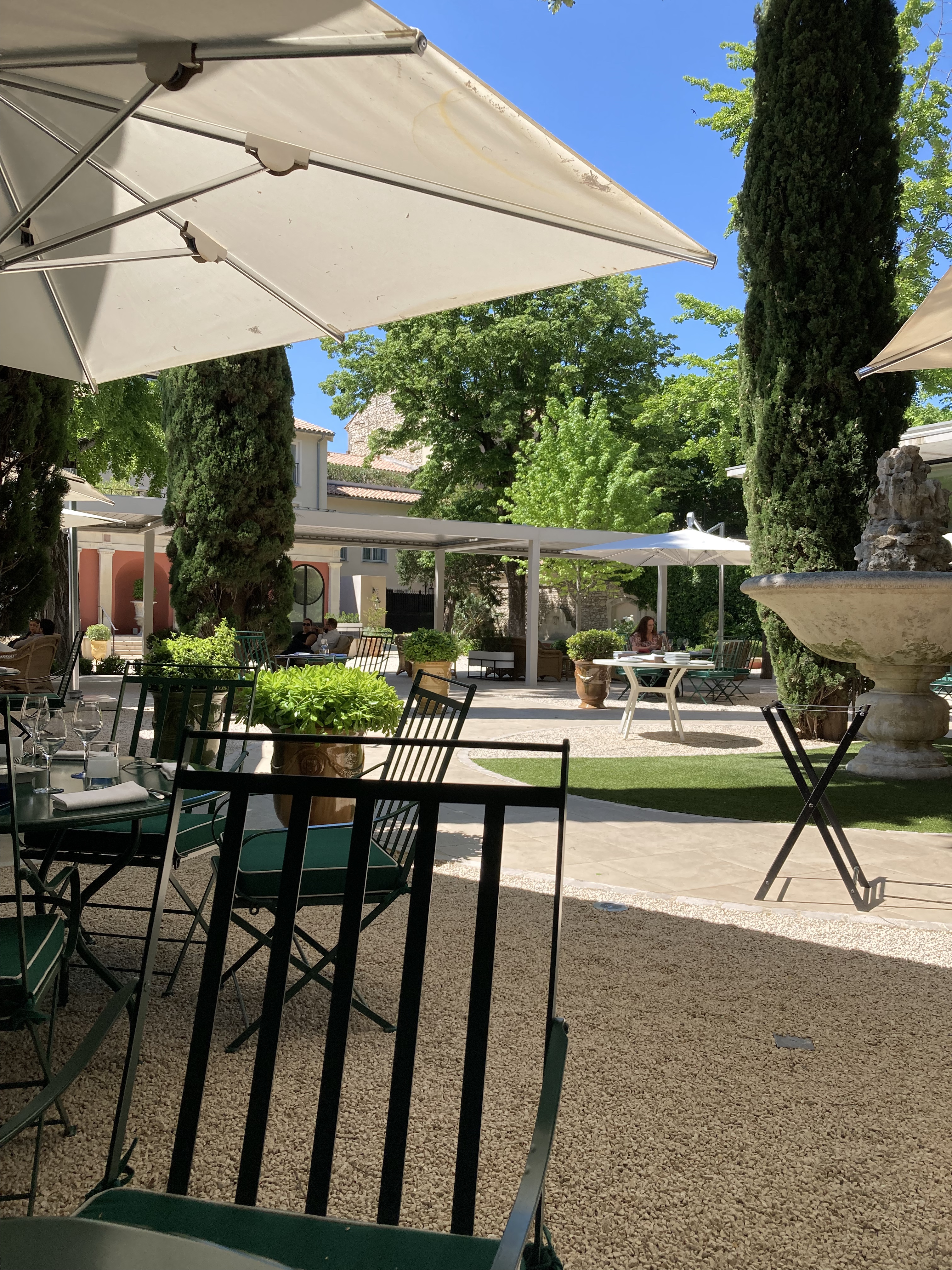 Quel immense plaisir de pouvoir enfin s'évader du Vaucluse si touristique et tellement chanceux de l'être grâce au Rhône et parcourir seulement 44 km pour arriver dans le Gard afin de redécouvrir ( l'accueil oui L' ) digne d'un restaurant et d'un hôtel dans une ville si belle si fleurie si sereine et imménsement romantique dû à ses beaux jardins et sa resplendissante fontaine vraiment.... car on n'y croyais plus. Nous nous rendons dans cette adresse incontournable et là-bas... c'est tout simplement une .superbe découverte du personnel compétent souriant professionnel Alexandre le Chef Pâtissier très agréable une Maître D'Hôtel de Normandie impeccable qui en l'absence du chef Sommelier trouve la bonne bouteille et surtout qui a la clé de la cave ...... et une douce Chef de Rang Africaine très précise sur l'explication de tous les plats mais aussi l'attention agréable portée à notre table par l'autre partie du personnel. Ainsi que des tenues de salle oui vous avez bien compris des uniformes ! La table et bien ! ...elle mérite une étoile Michelin facilement car tous les plats sont délicieux de la soupe aux deux desserts dont un osé avec des câpres mais surtout du chocolat. L'espace cour jardin est ... Là tout n'est qu'ordre et beauté luxe calme et volupté... En fait je désire y retourner au plus tôt pour le nouveau menu du chef et de son équipe car on sent un vrai état d'esprit gourmand et qui souhaite partager ses émotions. La carte des vins spectaculaire avec tous les vins que j'aime et que j'avais perdu a des prix très corrects est des millésimes inattendus En conclusion ne perdez plus de temps afin de vous y rendre vous aussi afin de vous régaler les papilles et être bien traités.