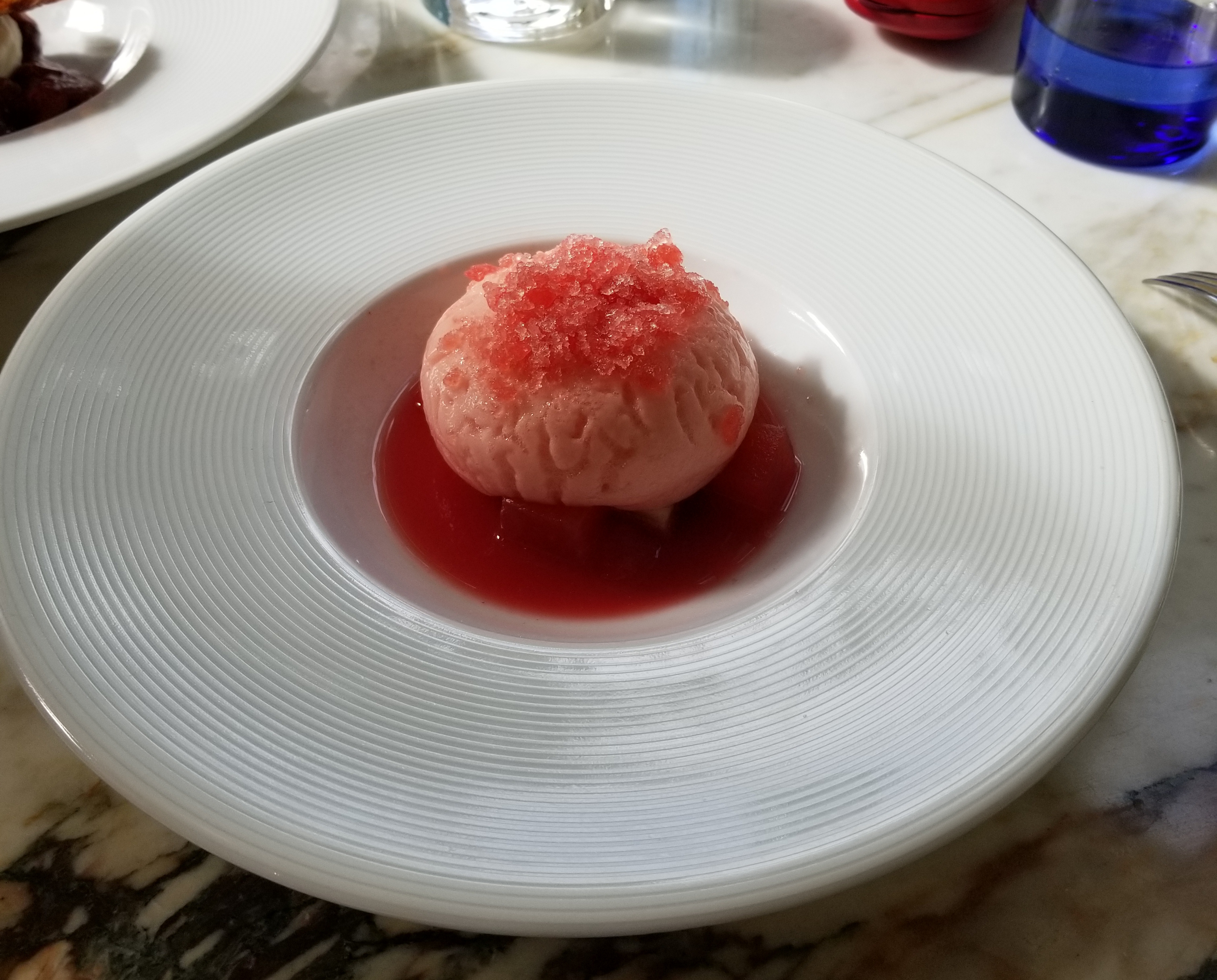 Nous sommes venus manger il y à quelques temps… malheureusement nous sommes repartis un peu déçus … c’est la 3ème fois que nous venions en tout juste 1 an… les 2 premières fois nous avions été enchantés par l’accueil, le service et surtout la cuisine qui de l’entrée au dessert nous avait vraiment régalée, tant par la présentation que par le goût et les propositions de la carte…Nous avions même eu la chance de rencontrer et discuter avec le Grand Chef Mr Pierre GAGNAIRE…mais aujourd’hui ce n’était pas du tout pareil, le service un peu moins bon mais surtout côté cuisine, le goût et la présentation n’étaient pas au rendez-vous..!!! Des plats servis avec 3 feuilles de salades par dessus, ça dénote un peu, ensuite le goût pas vraiment top ..!!! Surtout l’épaule d’agneau à la cuillère petit épeautre au saté … alors là vraiment pas terrible du tout cela ressemblait plutôt à un reste de vieux ragoût réchauffé et bien lourd et très peu goûteux avec aucune présentation ..!!! Nous étions 2 personnes à prendre le même plat, et je dois avouer qu’il nous est arrivé de manger de meilleurs plats du même style, ragoût d’agneau, dans de petite brasserie inconnue qui était bien meilleur que celui-ci… c’est dommage nous n’arrêtions pas de faire des éloges à tout notre entourage de ce lieu, depuis nos précédents passages … mais là je dois dire que c’est loupé … mais nous reviendrons malgré tout retenter une prochaine et dernière fois notre chance dans ce lieu, en espérant nous réconcilier avec la cuisine et retrouver ce que nous avions connu auparavant …