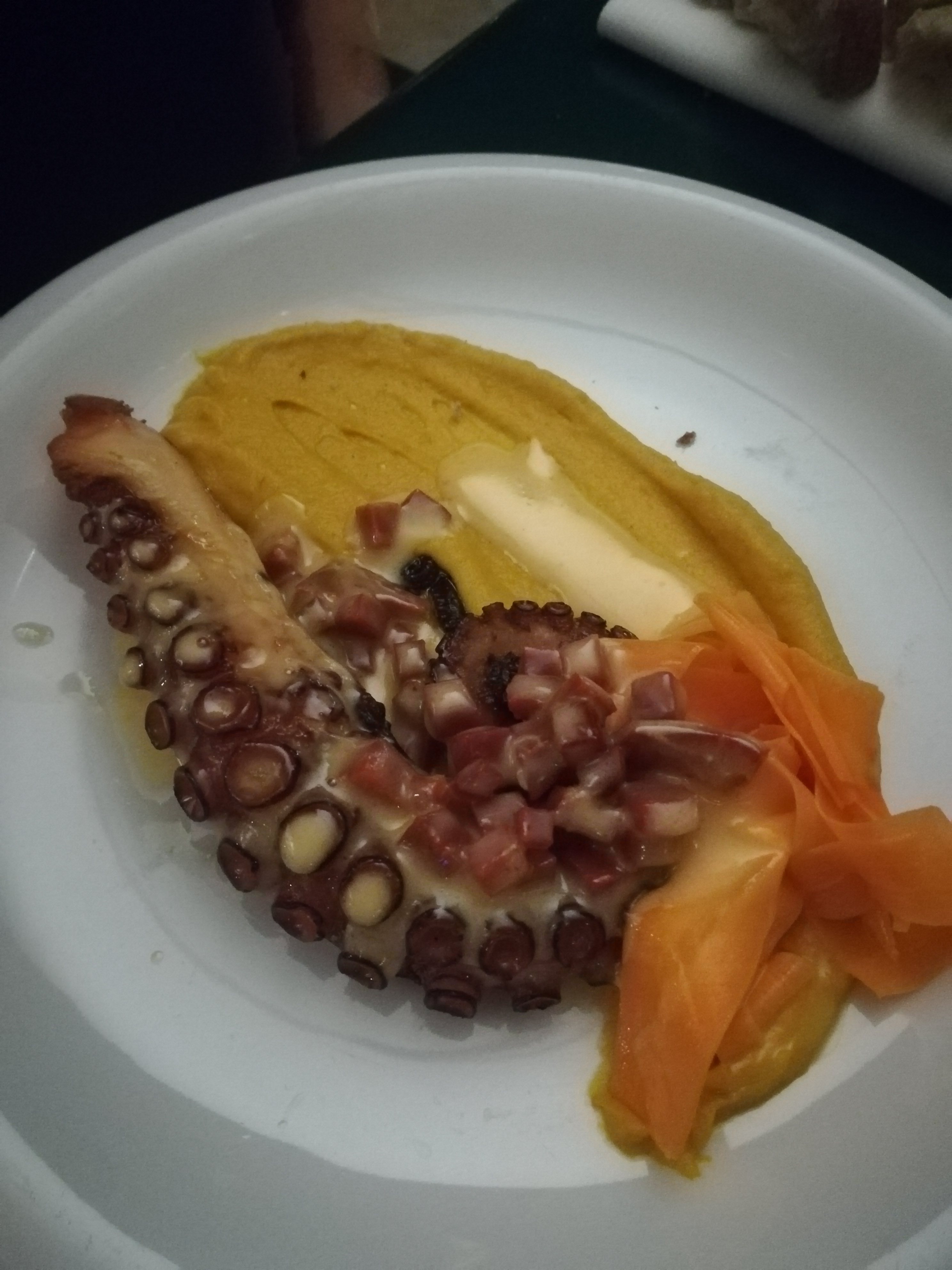 Cadre génial, acceuil chaleureux et service impeccable. Excellent menu : huître yuzu et cromesqui est genial. Poulpe grillée est bon et moilleux. Les desserts sont succulent. Très bon recommandations de vin👍👍
