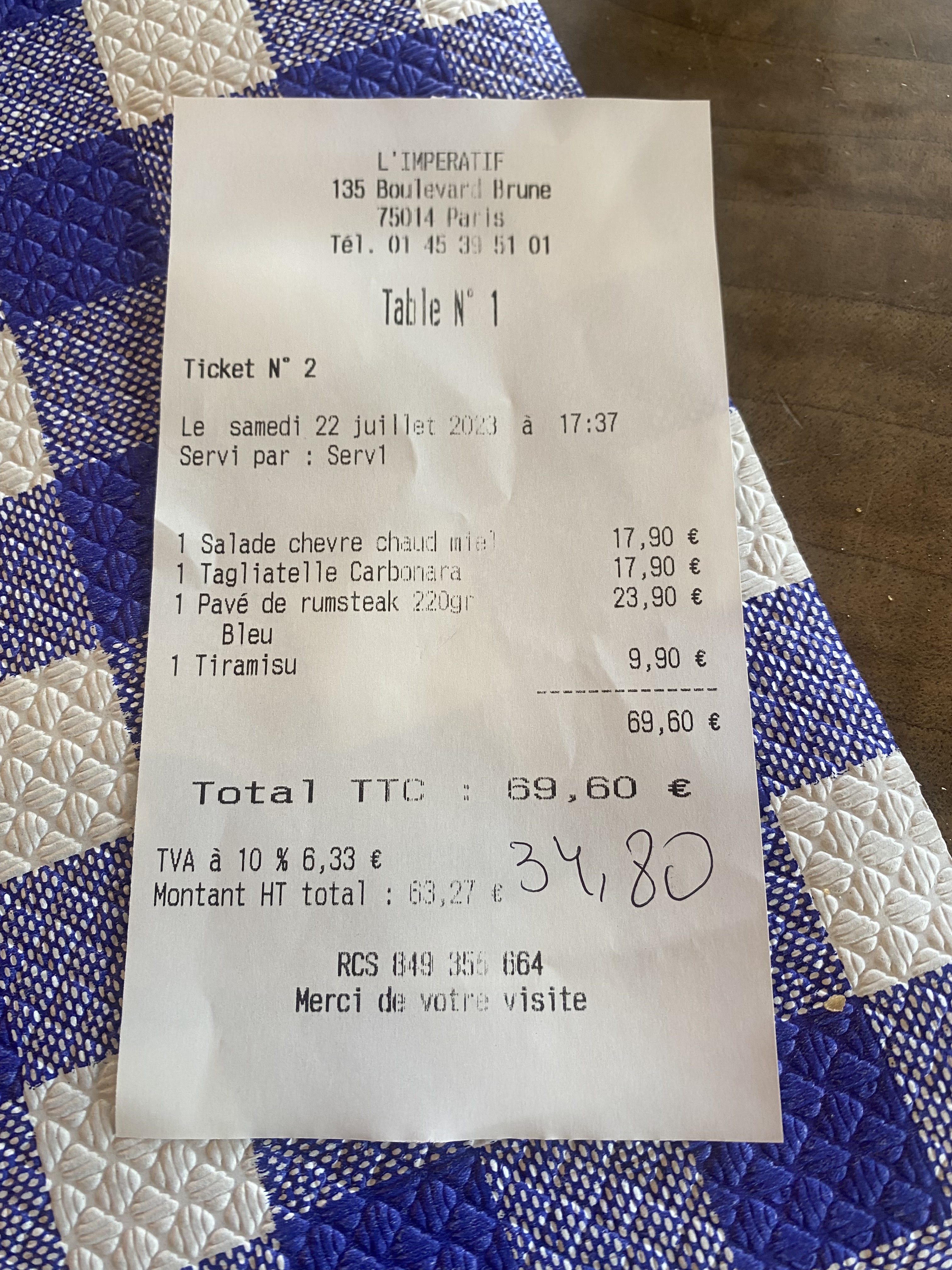 Nous avions réservé une table sur TheFork, on a été accueillis sans même savoir si on avais réserver ou non. On nous place directement près d’une fenêtre à l’entrée alors qu’il y’a plusieurs place vide. On nous installe à côté d’un groupe assez bruyant donc impossible de parler entre nous. Pour le plat j’avais commander un verre de vin qu’il a fallut réclamer au moins 2 fois, puis arriver au dessert je commande un café qui n’est jamais venu. au moment de réglé la note la serveuse me demande si j’avais une réservation et mon nom puis fais sa réduction avec une calculatrice sans trop vouloir me montrer la note donc je lui demande et le café n’avais pas été retirer mais limite m’impose de le prendre à emporté alors que j’en ai plus envie. Bref j’ai senti une petite arnaque que le prix final. Comment 123,3€ -50% font 69,25€ ?