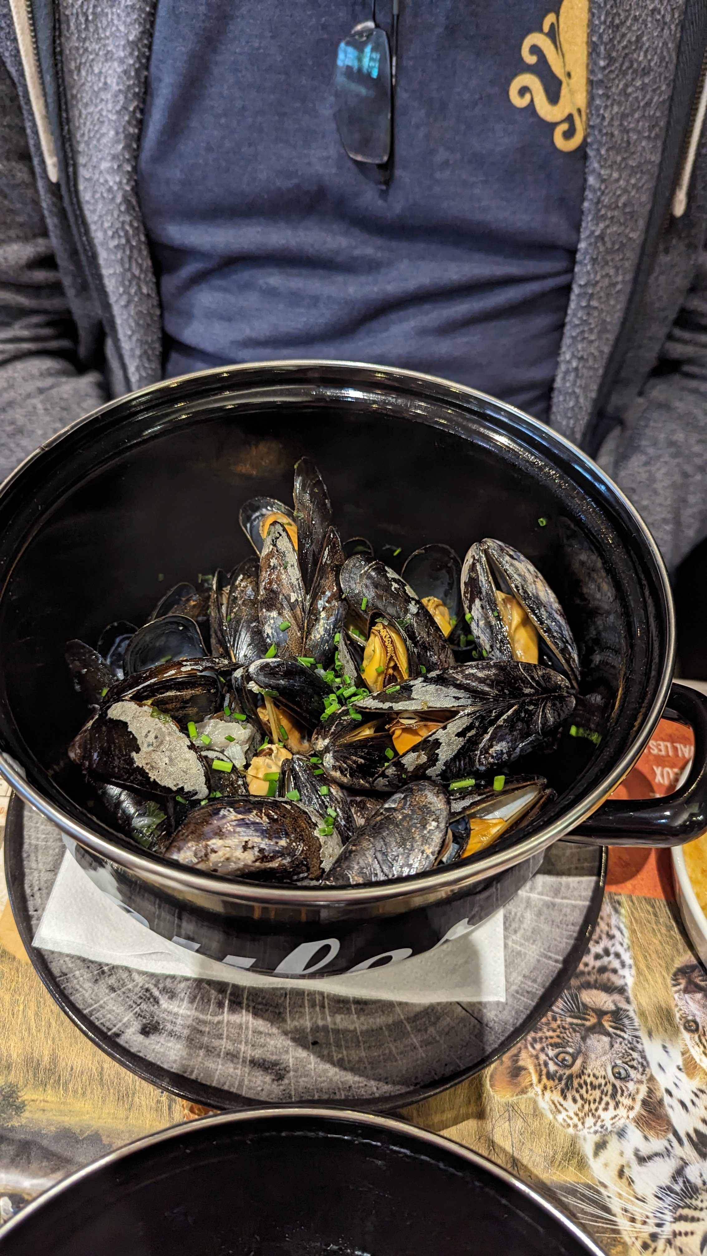 En tant qu'Américain visitant Le Havre pour la première fois, j'ai été agréablement surpris par la qualité de notre repas. Les serveurs étaient très sympathiques et ont réglé mon manque de français. Ils se sont définitivement bousculés. Mon seul souhait était qu'ils commencent à servir le déjeuner plus tôt, mais c'est une attente américaine et non française. Mon mari a eu l'apéritif de moules et de crevettes. J'ai eu le bifteck de bière, le cocktail de crevettes et le cheesecake. Je pense que notre repas coûtait moins de 50 $ pour nous deux. Excellente nourriture et ambiance. Si jamais nous revenons, nous reviendrons manger.