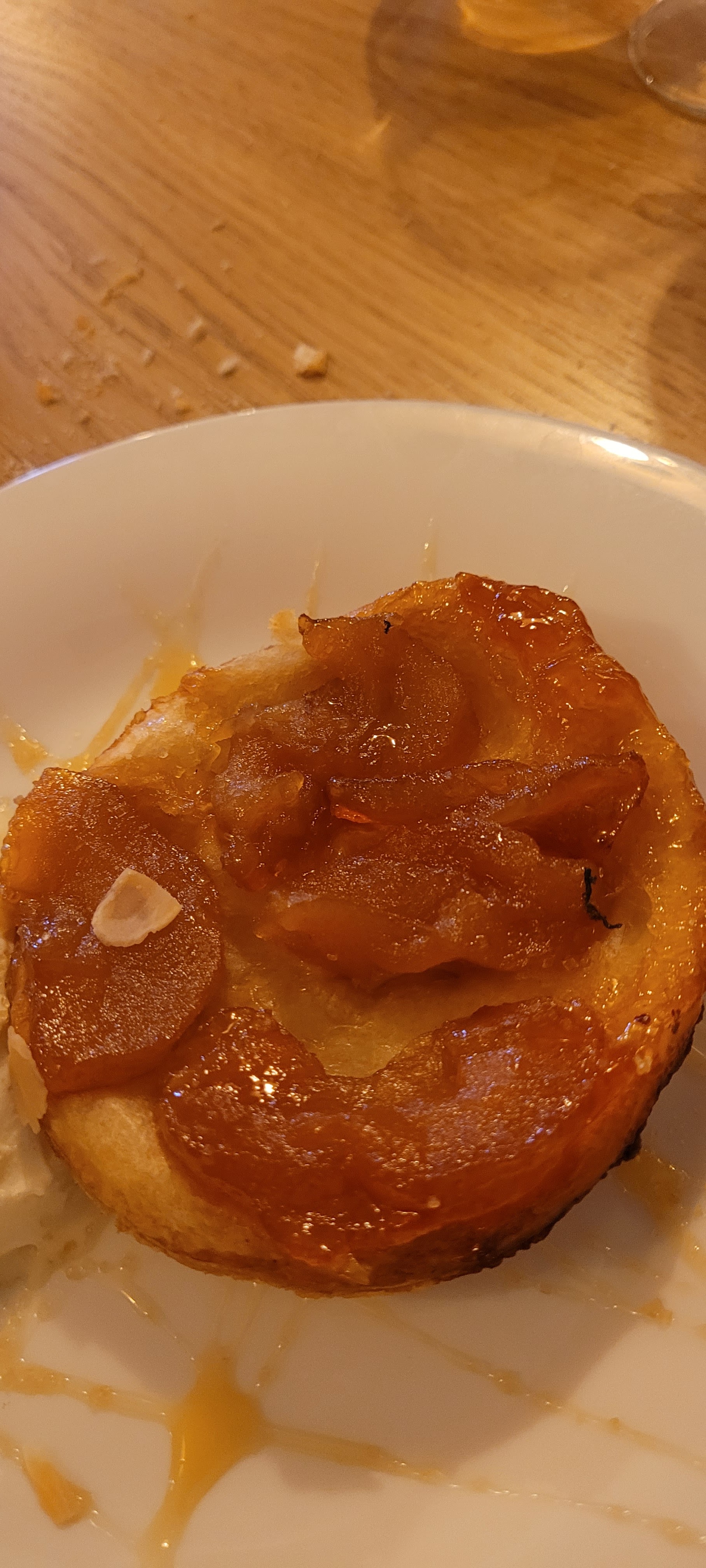 Il conviendrait d'améliorer l'accueil, des sourires et un peu d'enthousiasme ne seraient pas de trop. Concernant la tarte Tatin,, ça s'appelle du moquage de figure, les soeursTatin doivent se retourner dans leurs tombes!!!! Voir photos Et je me permets un petit conseil à Tanguy, ne répondez pas aux messages, votre orthographe est ... comment dire.... imprévue et ça ne donne pas forcément une bonne image de votre établissement pour ceux qui lisent les avis!