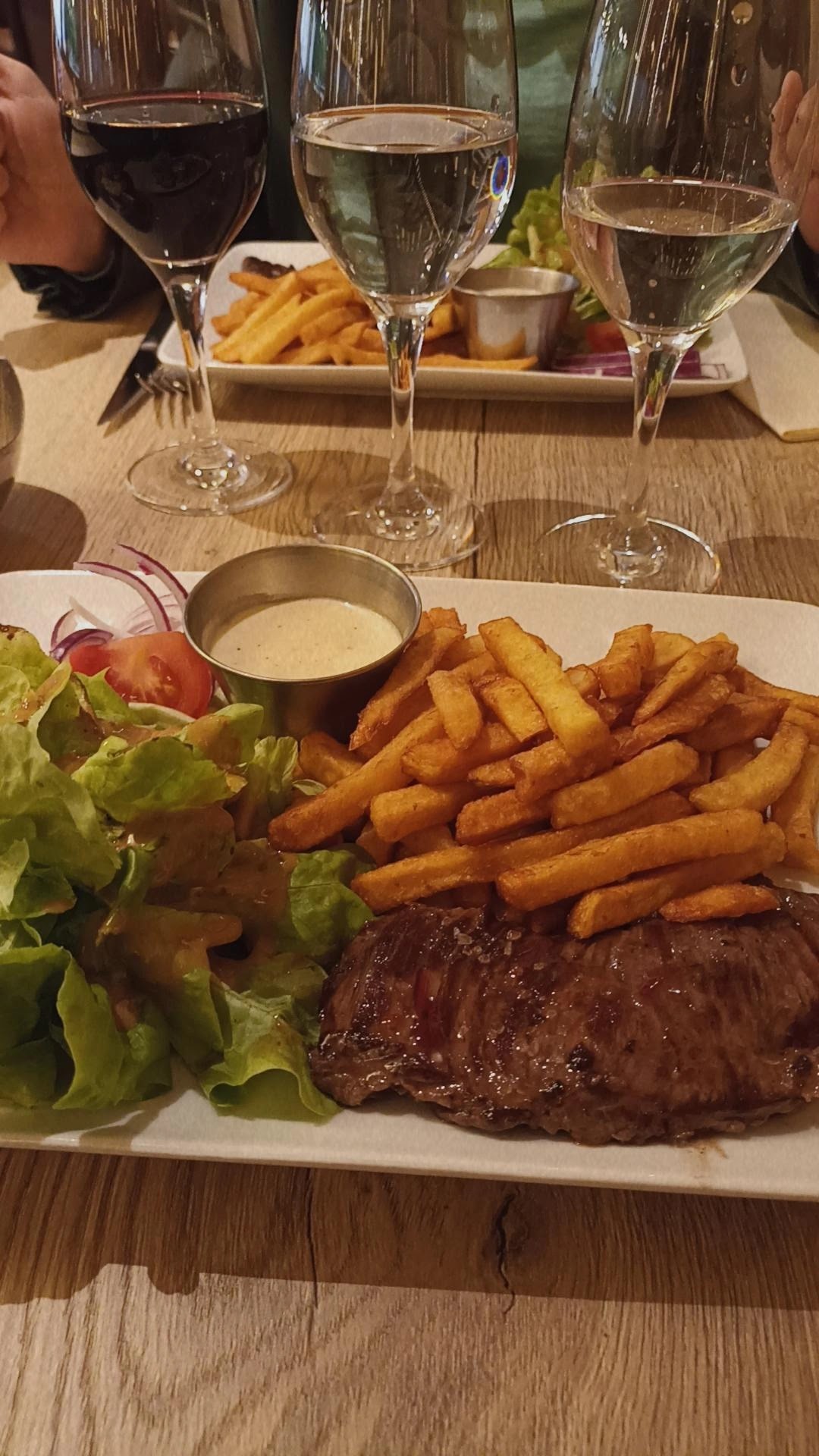 Nos frites étaient juste cuites sinon plutot sympa repas pris en soirée