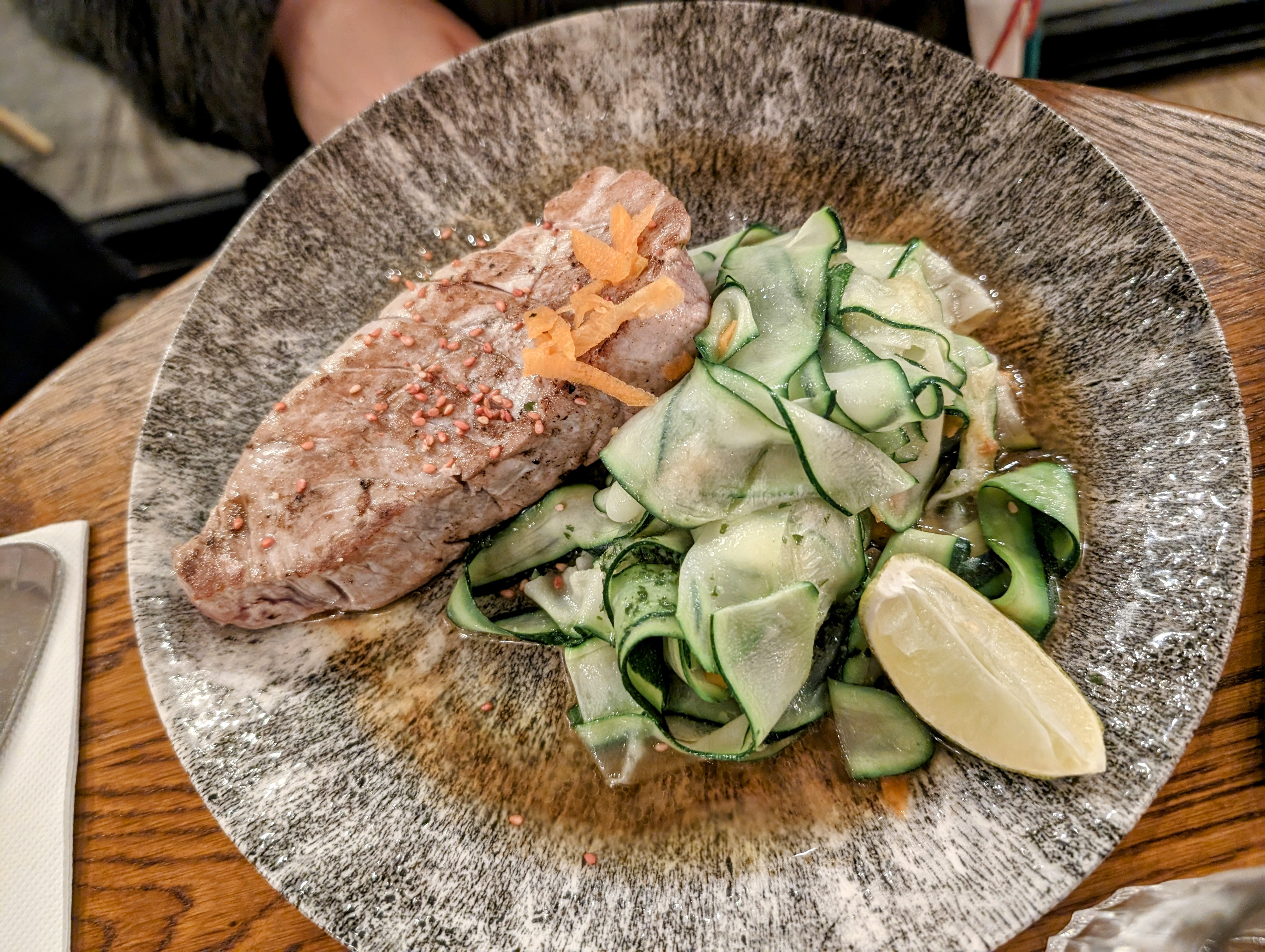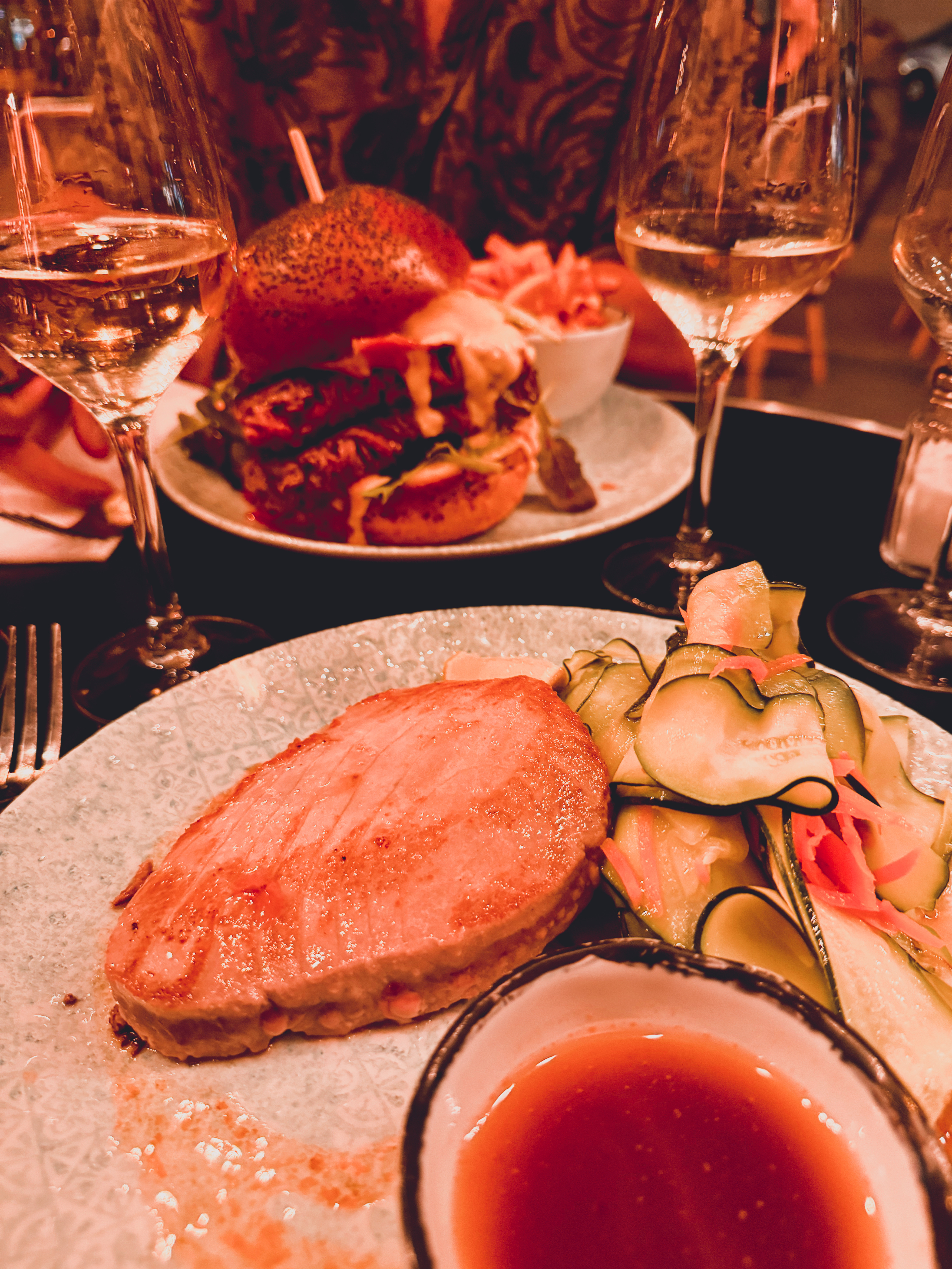 Resto sympa très bien décoré. Des plats copieux bien faits Les prix sont corrects pour le quartier La viande de rumsteak était excellente, très tendre et la sauce délicieuse. La salade de gambas choux chinois était très bien assaisonnée pour la salade avec de la coriandre des cacahuètes et une sauce légèrement sucree. En revanche les gambas étaient fades , à l’eau et mal décortiquées, elles auraient mérité d’être un peu revenues à la poêle. C’est une adresse de quartier que nous recommandons