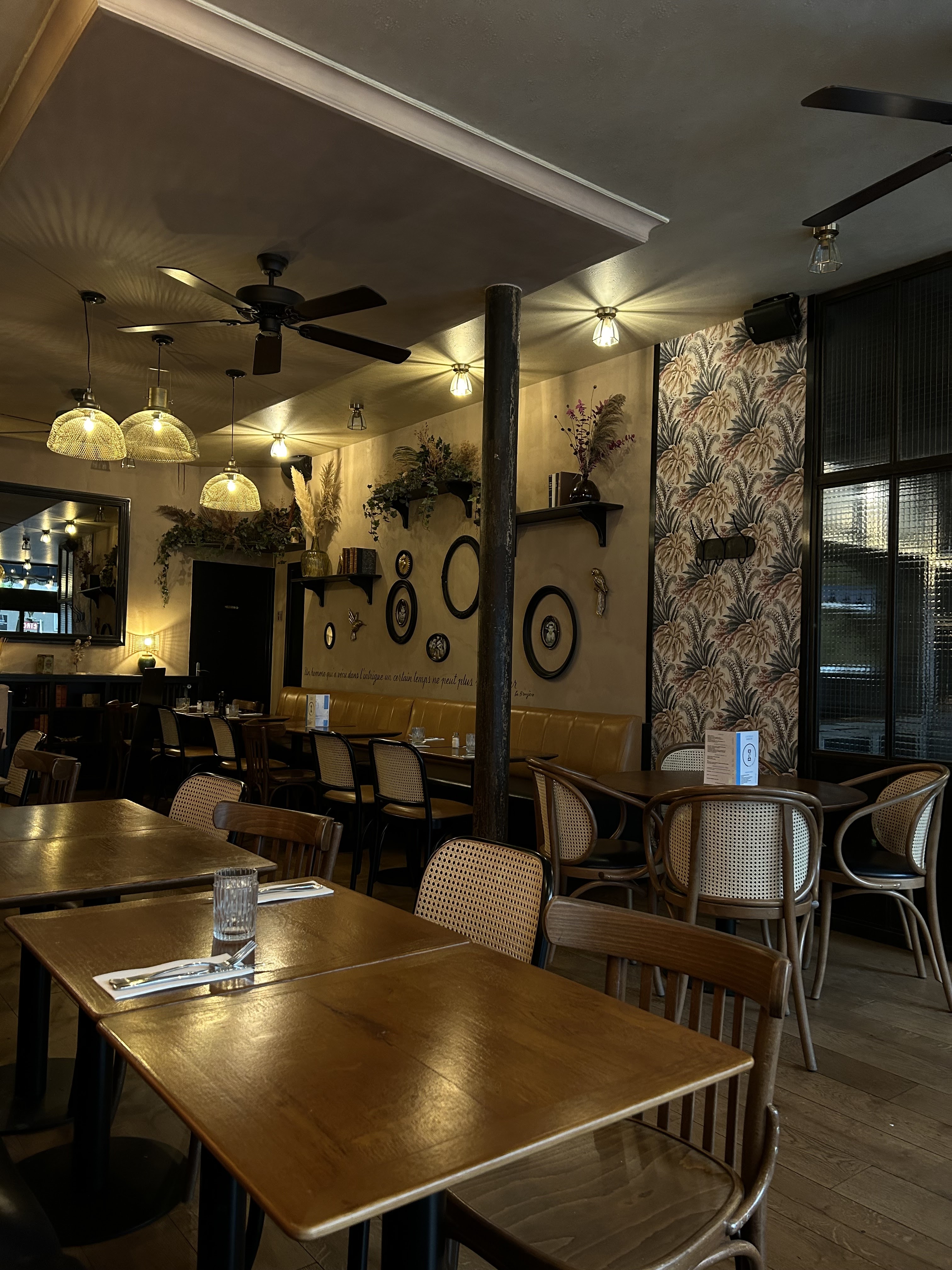 Je ne pourrais pas en recommander davantage. Nous sommes venus à Paris pour une nuit et l’intrigue se trouvait à proximité de l’hôtel. Le service était fantastique. Ce qui n'est pas quelque chose qu'on rencontre souvent à Paris. Amical et gentil. La nourriture et les boissons étaient scandaleusement bonnes. Nous avons pris le plateau mixte de fromages et de charcuteries pour commencer, le thon et le steak Tatar pour le plat principal. Tout, y compris le vin, était délicieux et très raisonnable. Notre facture était d'environ 120 € pour 3 personnes comprenant une entrée partagée et une entrée supplémentaire, deux cocktails, une carafe d'excellent vin, du café et de l'eau. Vous devez visiter.