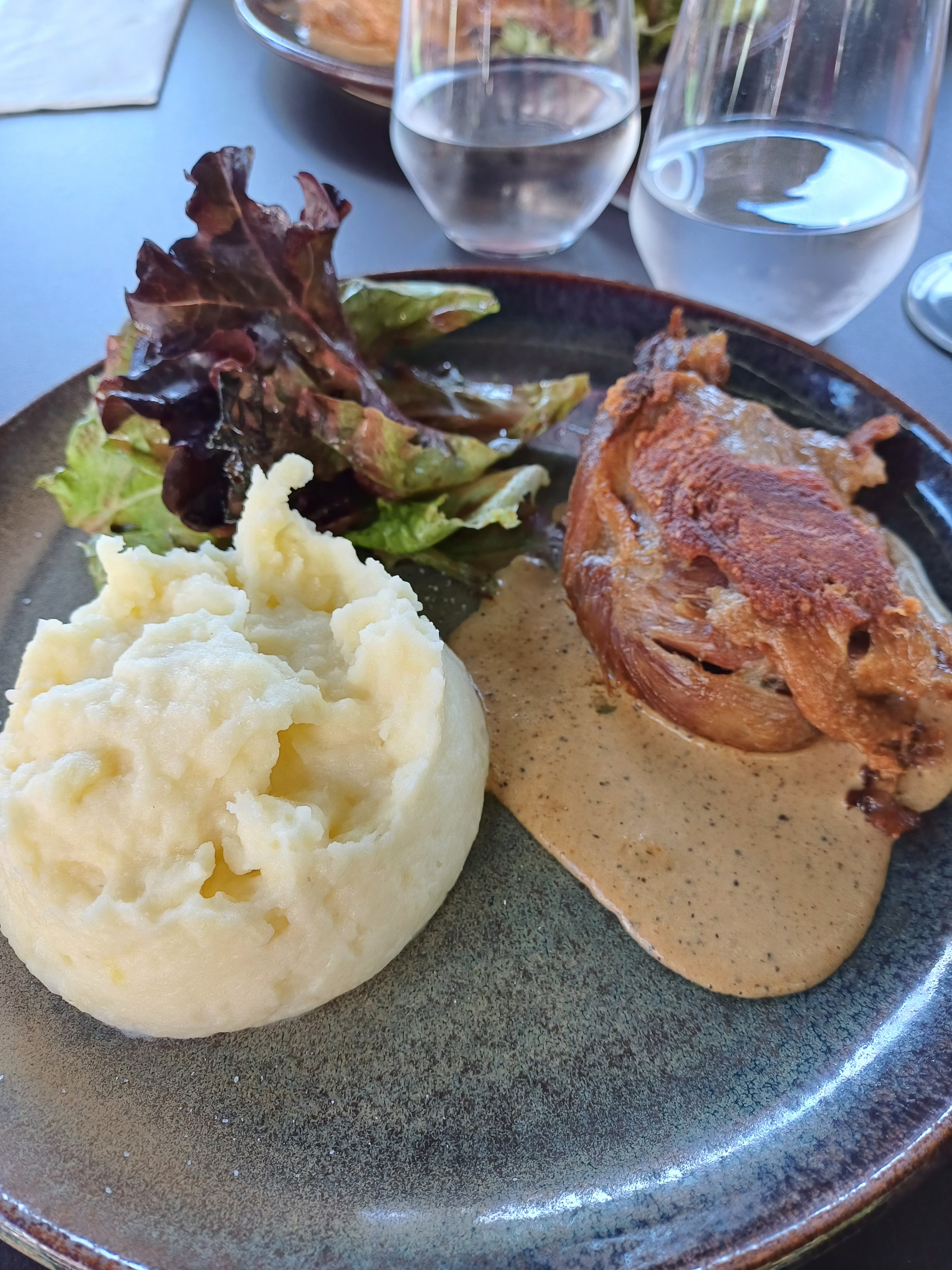 Un peu cher pour un suprême de poulet à la crème quelques frites et salade.