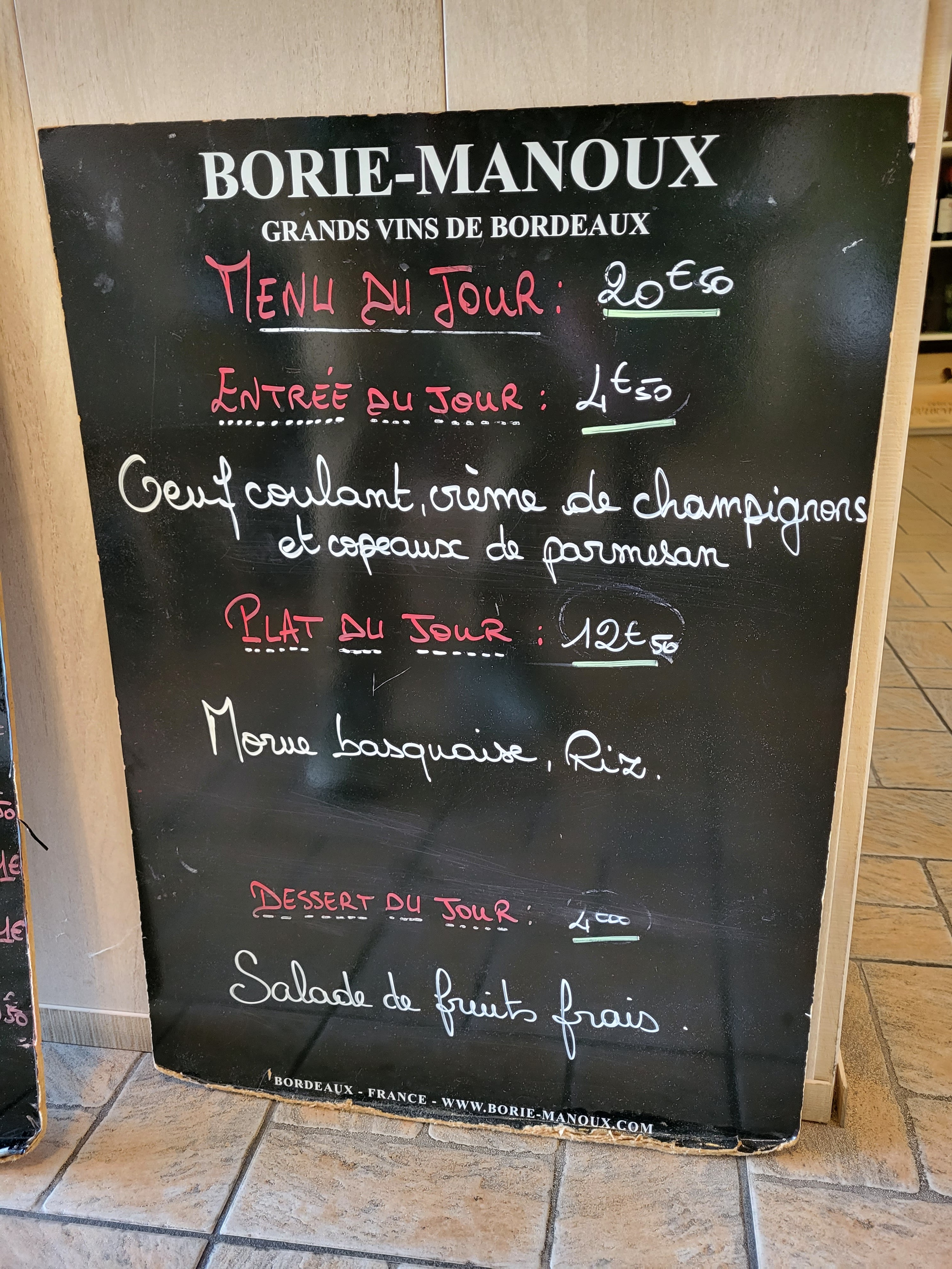 Menu du jour assez cher!