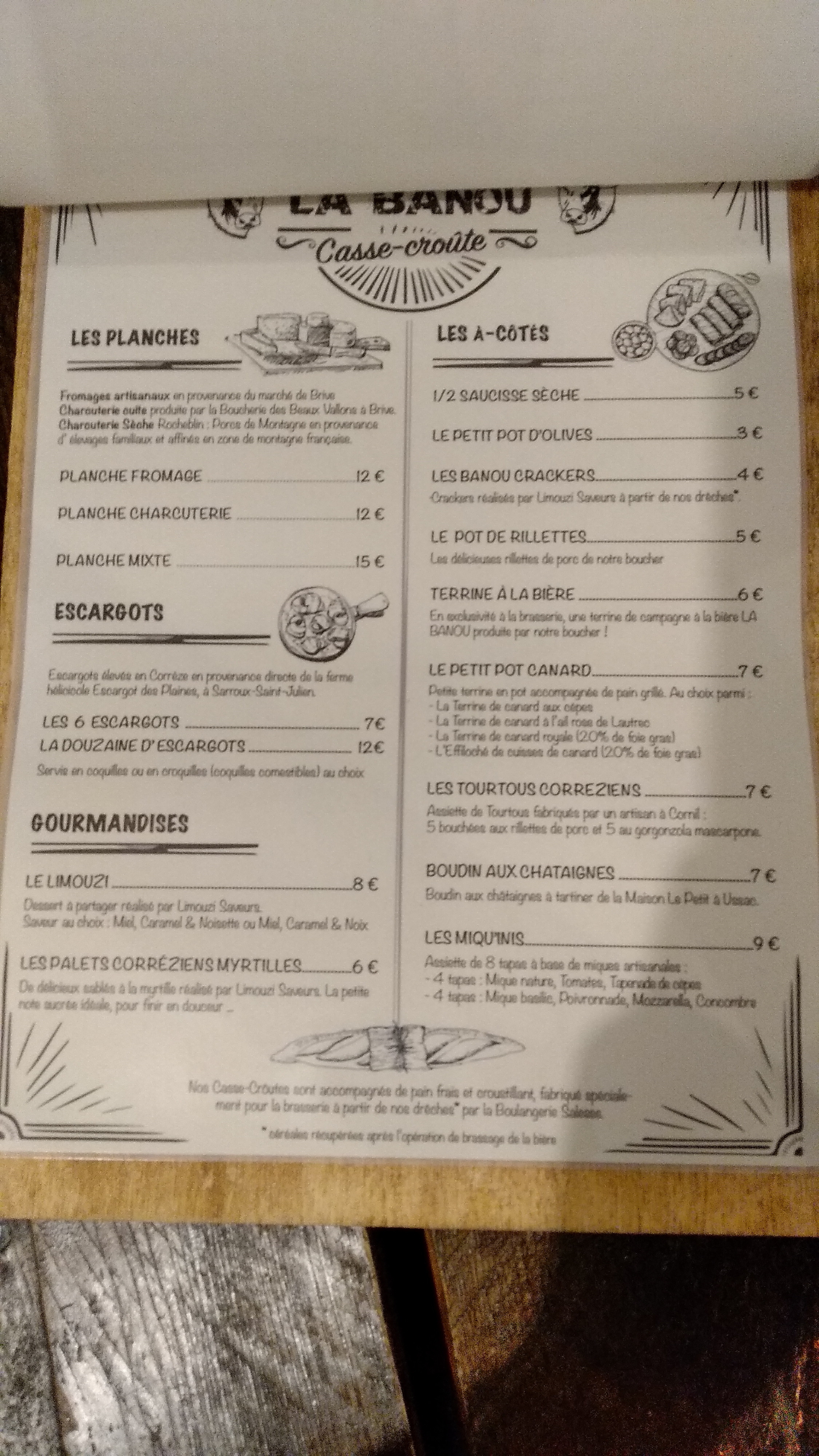 Si la ville de brive est une étape obligatoire des vacances en Corrèze la micro brasserie La Banou est un ravitaillement qui enchante autant les papilles que l esprit. On a pu profiter en famille d une soirée quiz au top accompagnée de superbes bières et planches. Cerise sur le gâteau l équipe est ultra sympa toujours l écoute un mot gentil pour tous une ambiance festive et bon enfant un grand merci pour ces beaux moments de partage