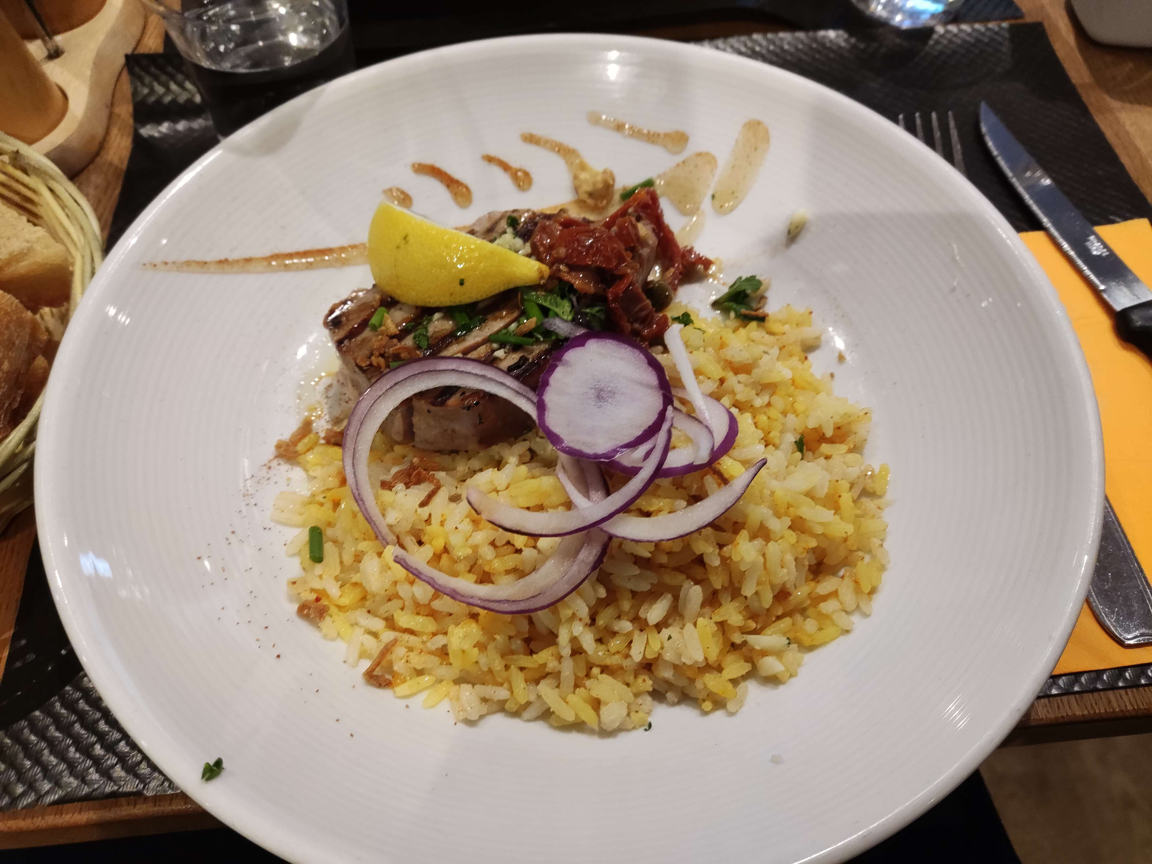 Lieu agréable, personnel bien présent. Un poil déçu de ma brochette de boeuf !!! Restaurant qui doit être prisé au vu des nombreuses réservations (ont 2 belles terrasses)