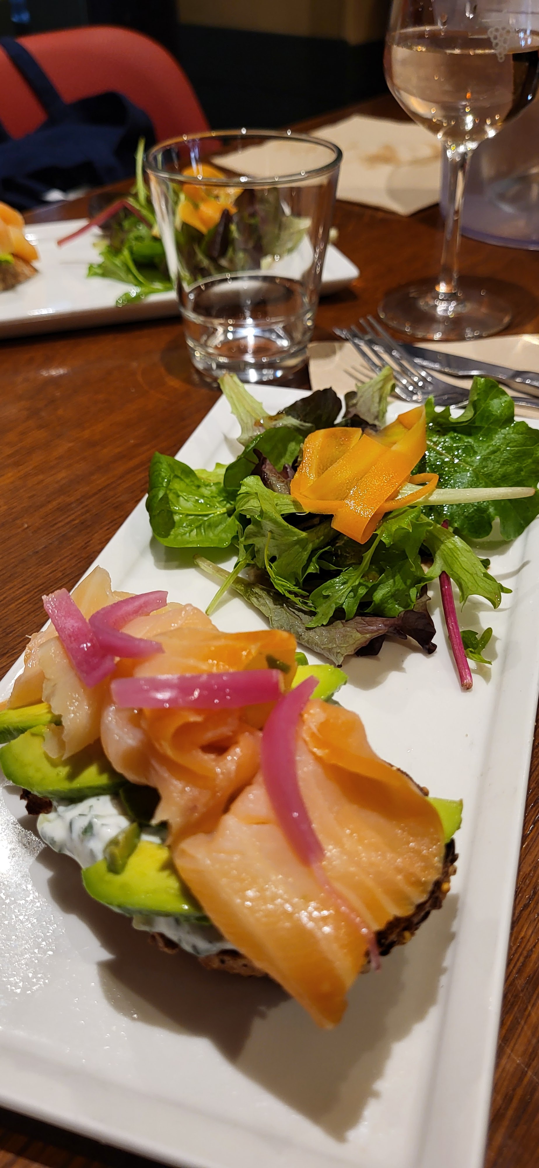 Franchement comme expérience on aura vu mieux, je m'explique : pas d'option végé, tant pis je peux comprendre, on me propose une salade césar version végé avec une assiette un peu plus fournie en crudités. Je demande si elle peut faire partie du menu du jour sachant que la salade de base était à 15€, on me le refuse. On me ramène (30 minutes plus tard) une salade césar NON végé que je retourne immédiatement. Elle me revient 2 minutes plus tard avec seulement le poulet enlevé et toujours des anchois (pas de crudités supplémentaires). Je retourne me plaindre pour qu'une salade arrive cette fois ci 10 minutes plus tard, tout le monde a quasiment terminé de manger. Pour la petite anecdote, un collègue a d'ailleurs retrouvé un perce oreille mort dans son assiette, toujours sympa pour un surplus de protéines ! Bref, aucun geste commercial, pas le temps pour un dessert car service ultra long (arrivés à 12h10, débarrassés des plats à 13h45) Vous allez dire que je râle beaucoup mais ne vous inquiétez pas je ne reviendrai plus !