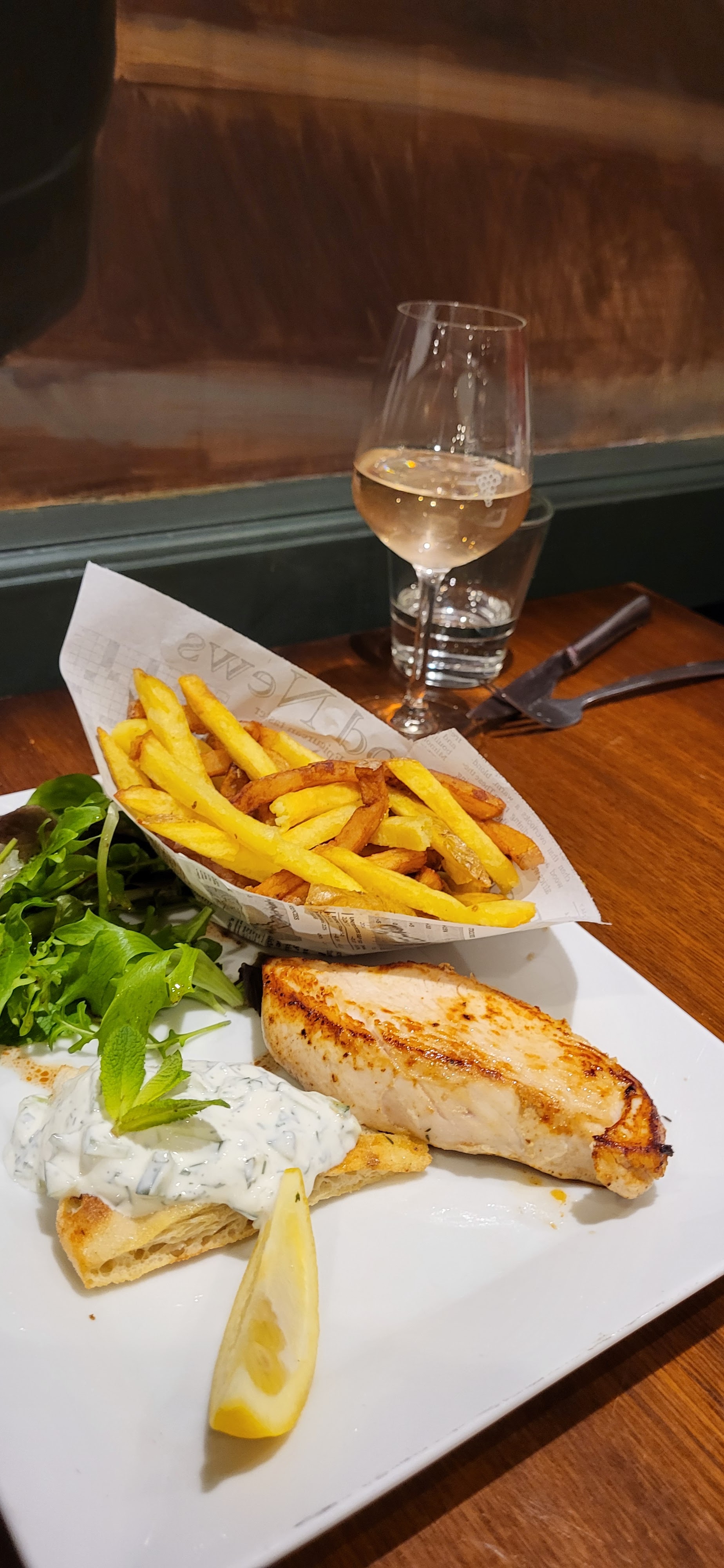 Déjeuner agréable (très bon fish and chips), accueil sympa.