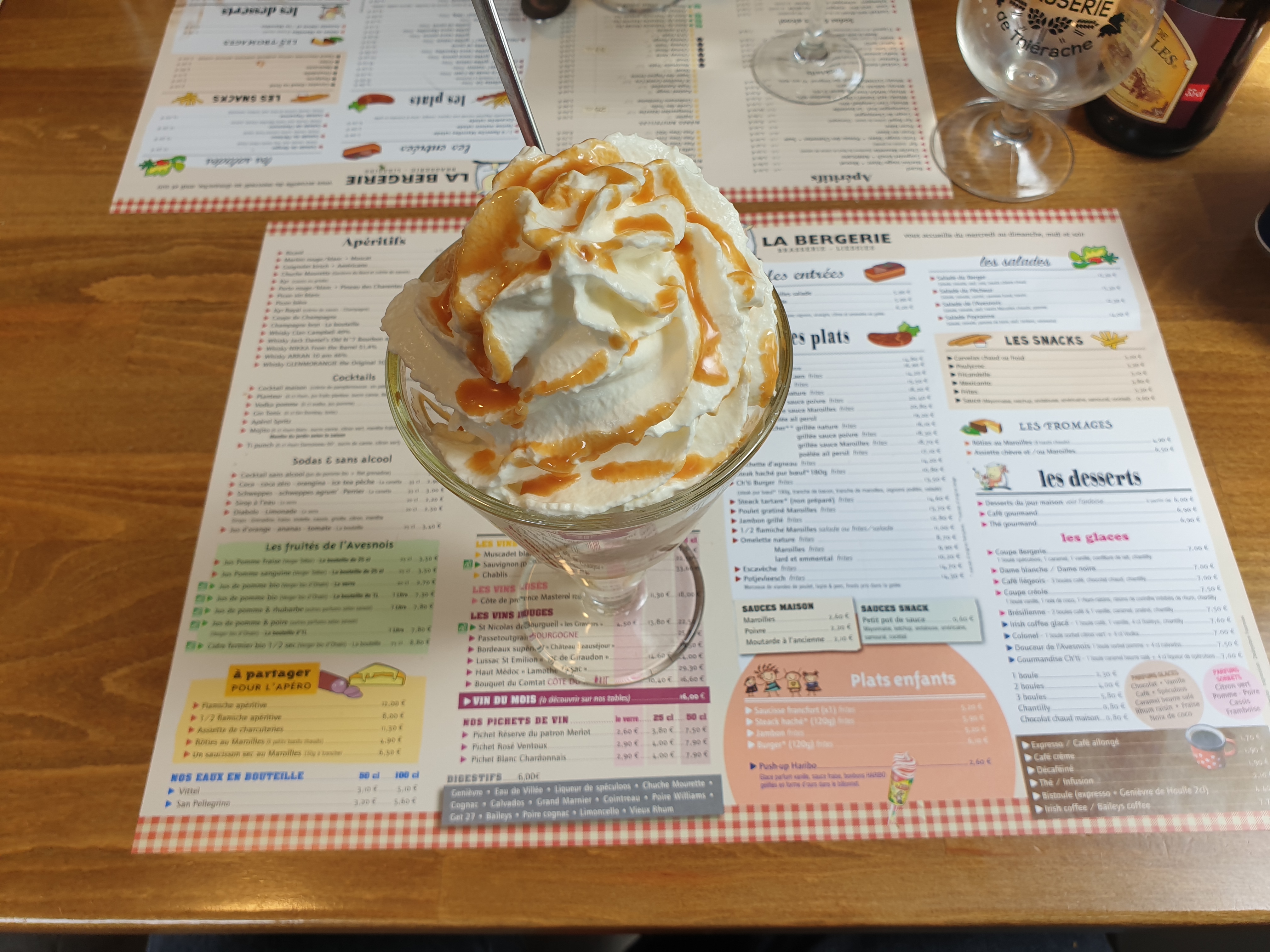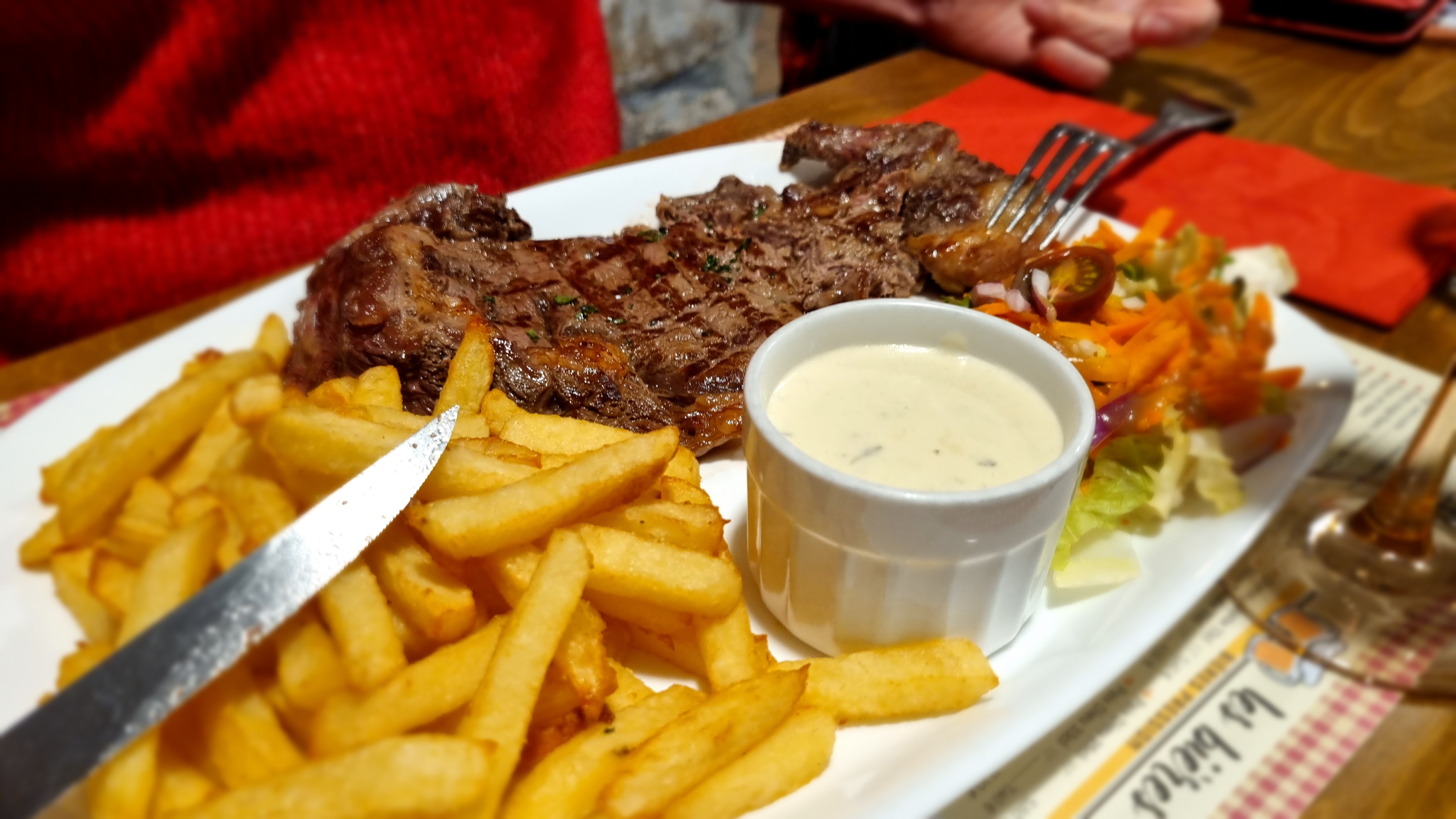Je suis retourné à la Bergerie un an après ! Et là, tout était parfait, le service aussi ! L'entrecôte bleue à souhait, viande très bonne, avec sa sauce poivre ! Et le baba au rhum juste sublissime ! Une très bonne soirée ! Voilà ce que j'avais écrit en 2021 : Dommage que le Pavé n'ait eu que l'épaisseur d'un banal beefsteak et que le cuisinier ne sache pas ce que signifie la cuisson bleue ! Malgré tout, la viande est bonne. Les frites aussi et maison ! Il va falloir un peu de rodage à l'équipe (bon courage à l'étudiante de 19 ans) !