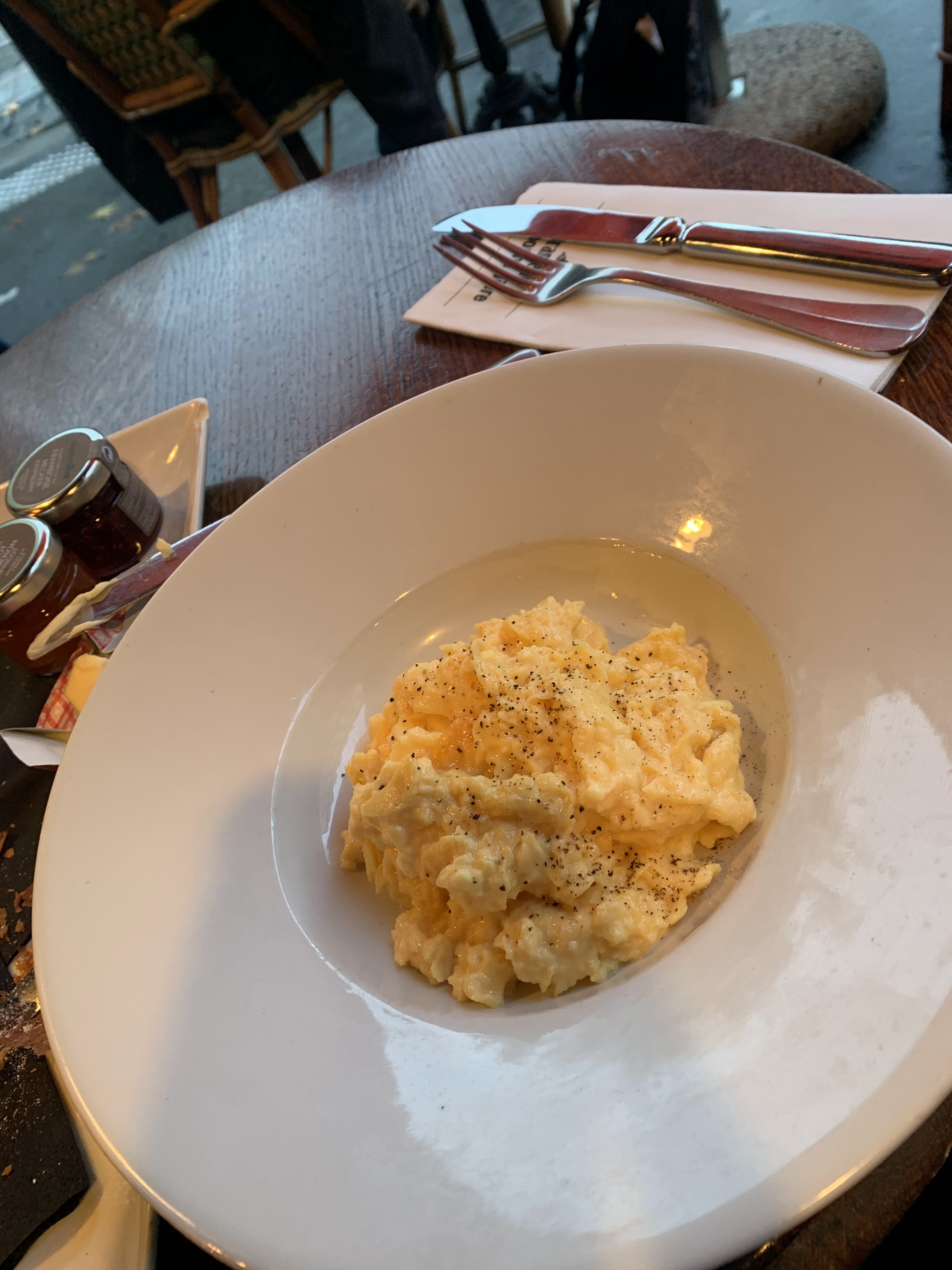 Je suis allée deux fois dans ce restaurant, le même jour. Alors que j'ai apprécié la formule classique du petit déjeuner (croissant et pain ultrafrais), quelle déception le midi. D'abord on nous a placé à une table à côté de la porte, avec tous les courants d'air sur nous (sans parler de la pollution sonore..). Après avoir changé de table, je prends un des deux seuls plats adaptés aux végétariens, à savoir un croque madame sans jambon. On m'a servi un croque madame préparé exprès pour moi mais que le chef a dû oublier de passer au four car la sauce béchamel n'était pas cuite! J'avais droit à une bouillie de comté sans nom et un mal au ventre tout l'après-midi. La prochaine fois, chef, pensez à cuire votre croque madame..