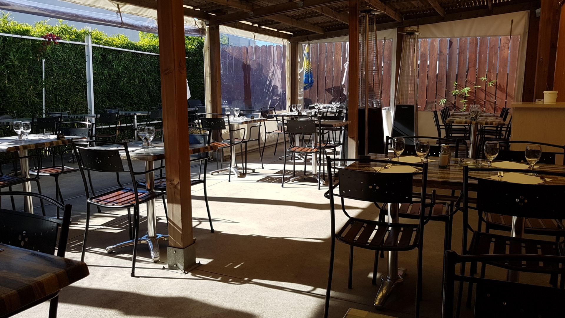 Parking, terrasse chauffée, espace entre les tables, bonne cuisine. Parfait