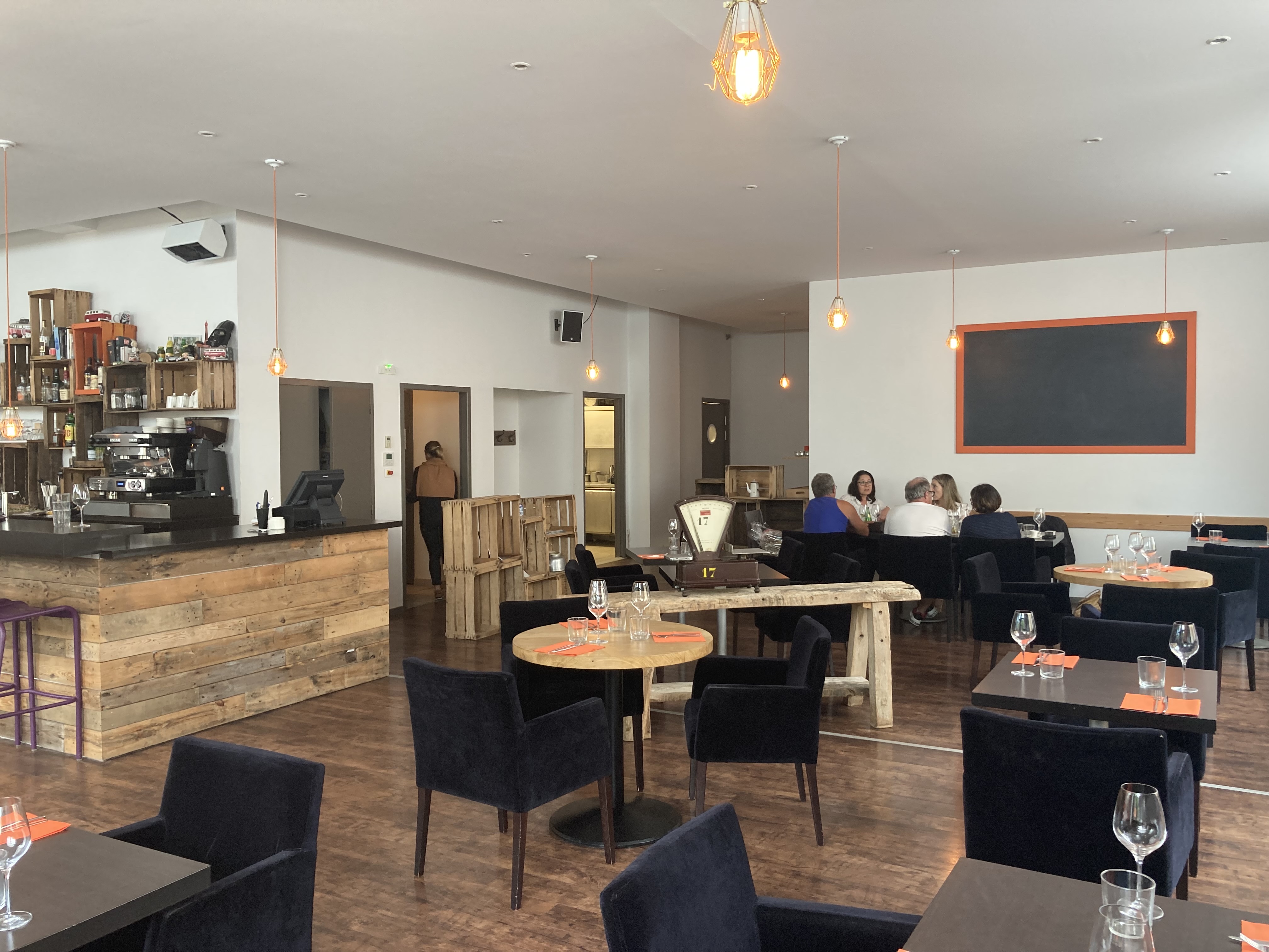 Ambiance moderne et relaxante, mais avec du caractère, le restaurant se trouve à côté du bar, il sert des plats faits maison avec un menu toujours changeant. nous y avons mangé deux fois et avons été très impressionnés, très bien accueillis, avec notre petit français. un menu à prix moyen, mais la qualité est très élevée. nous y retournerons la prochaine fois en France.