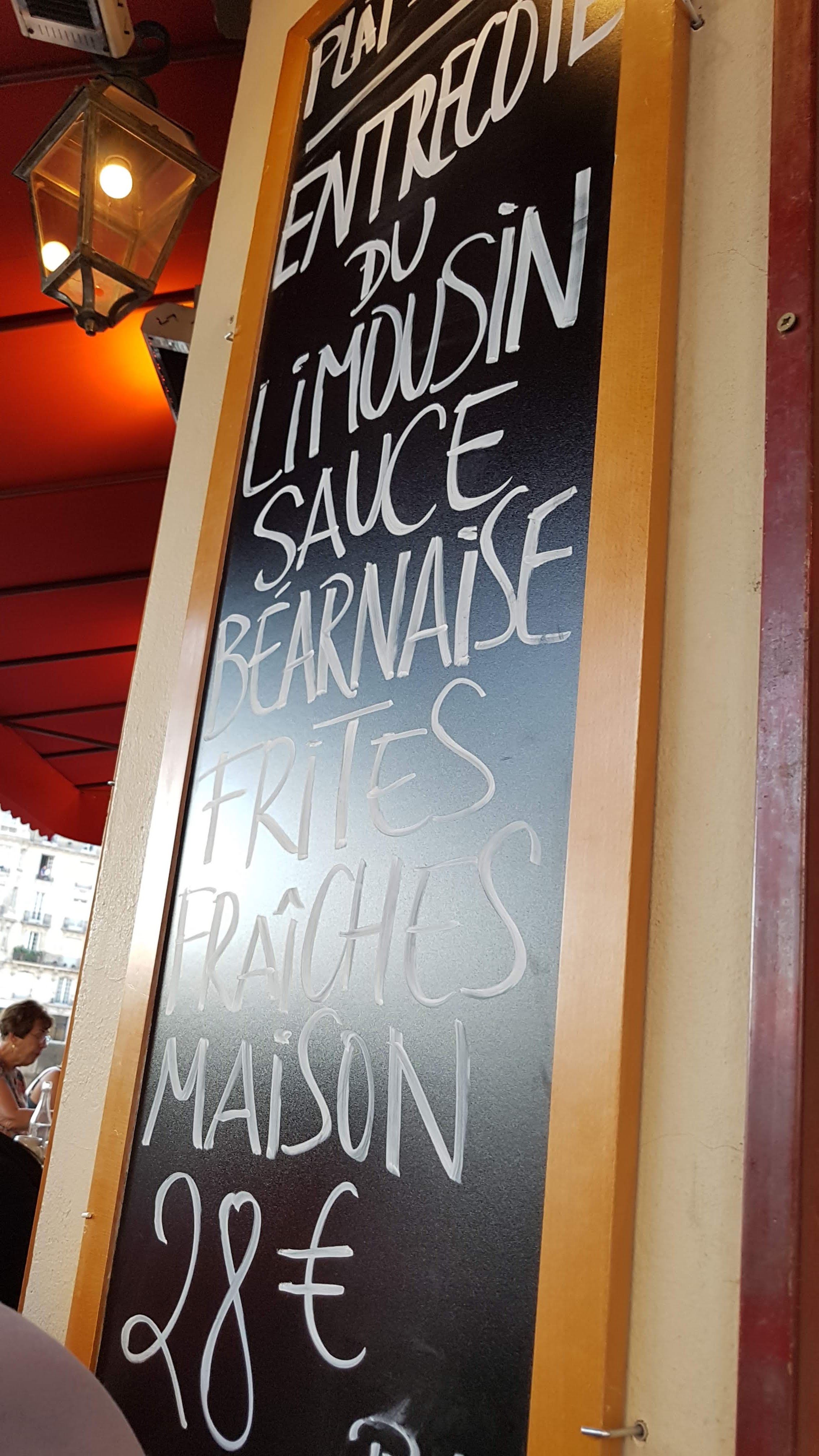 Un restaurant parisien traditionnel. Dégustez la délicieuse Entrecôte typique du Limousin accompagnée d'un vin et profitez de la vue. Les prix sont acceptables pour Paris. A recommander 👍
