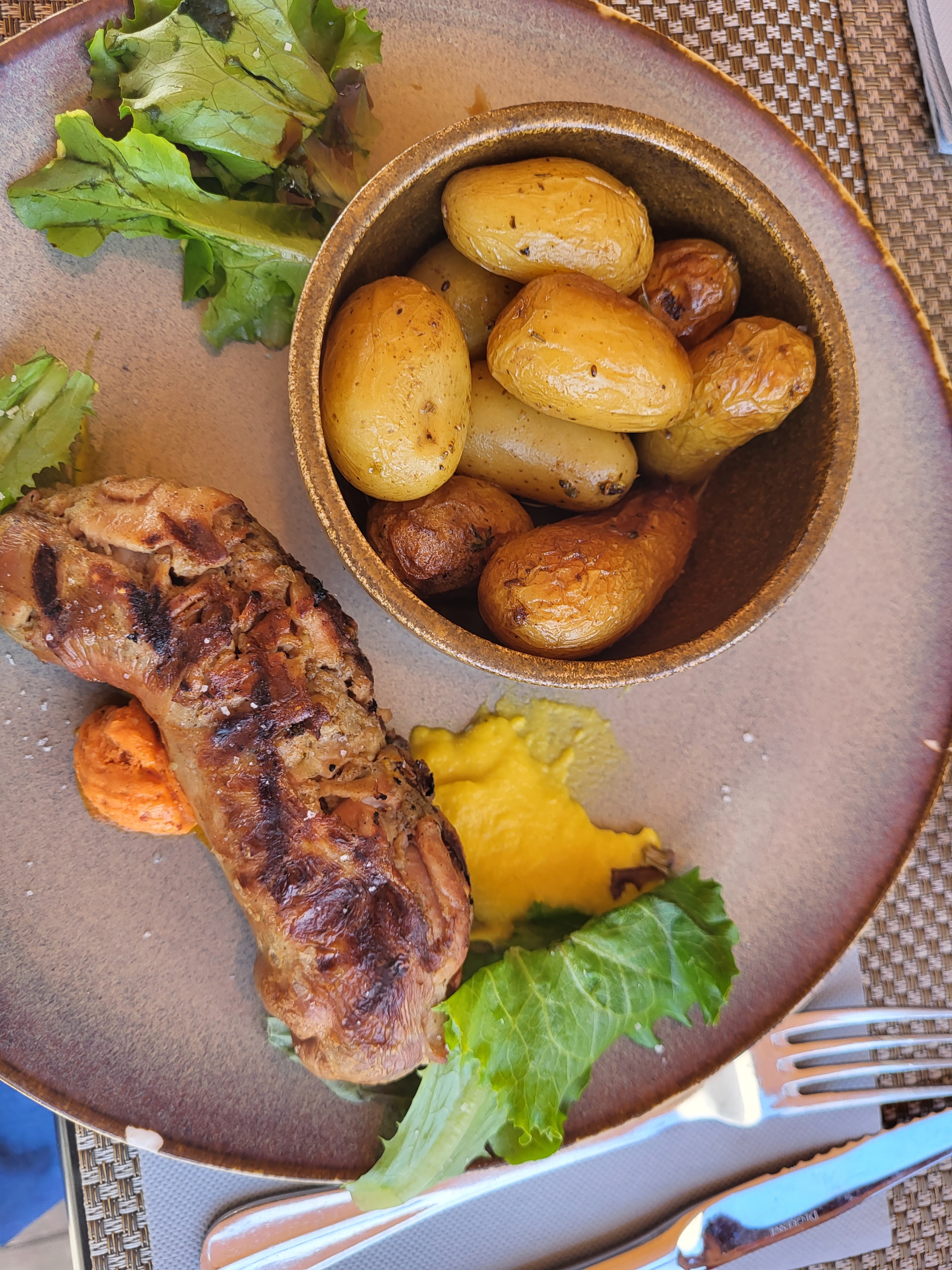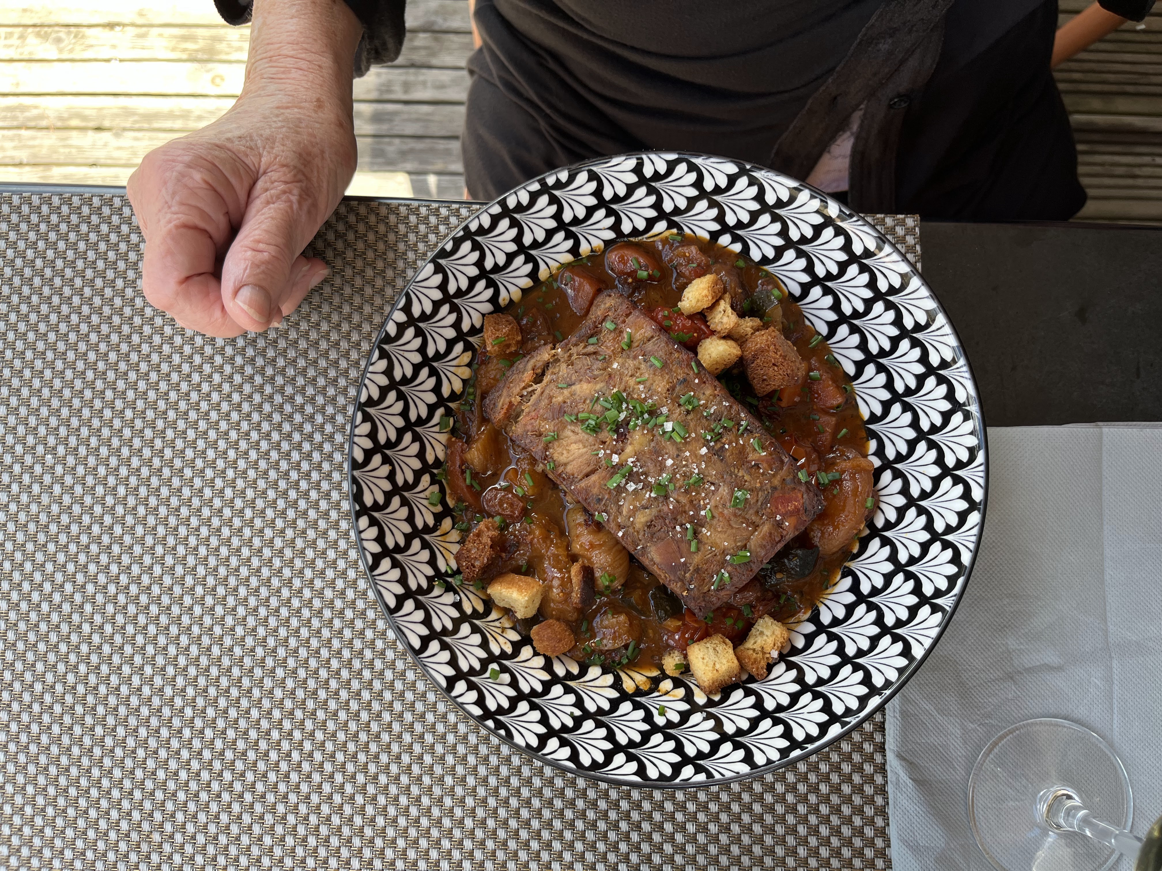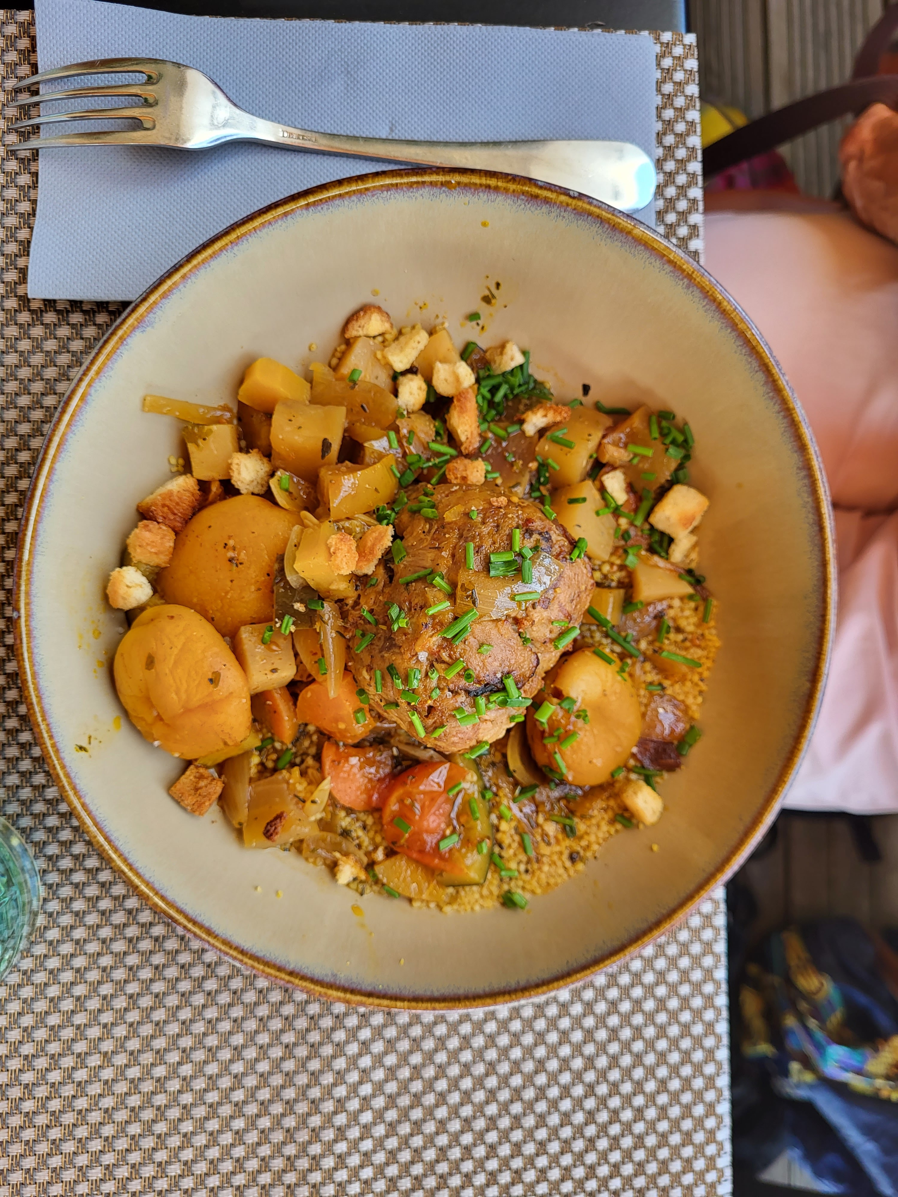 Le mijoté d'agneau était très bom. Le service parfait. Le dejeneur avec vue sur le chateau.