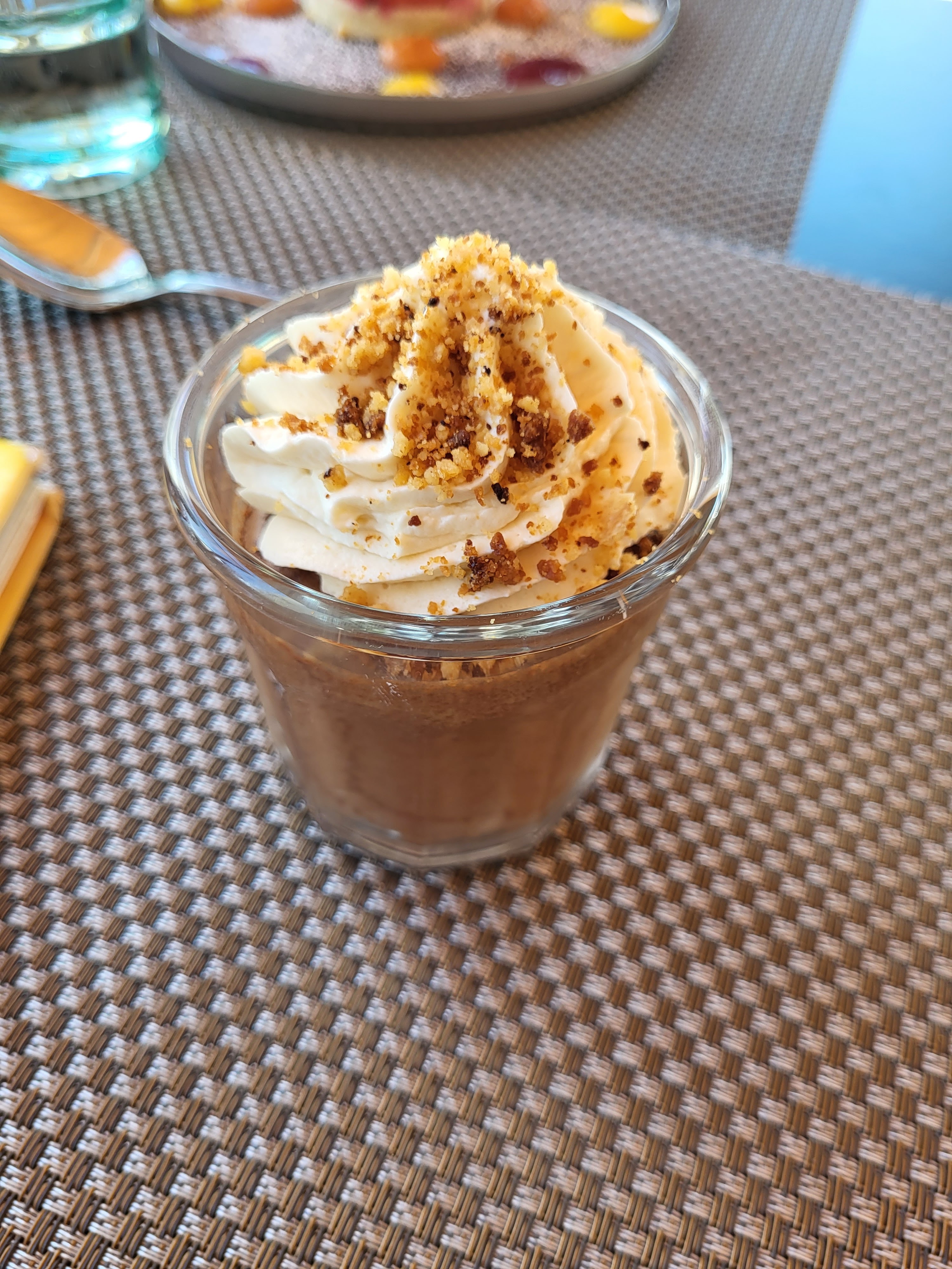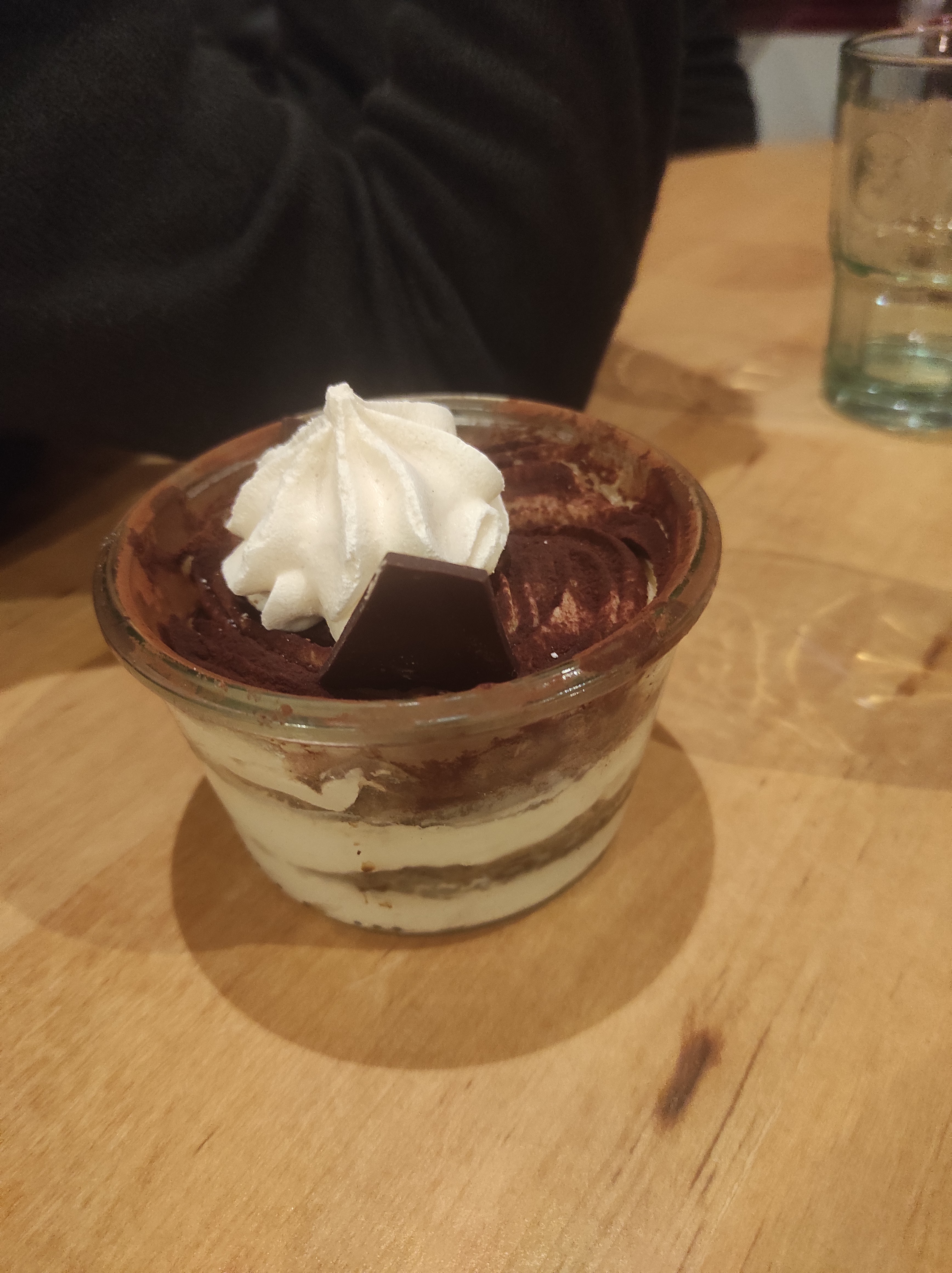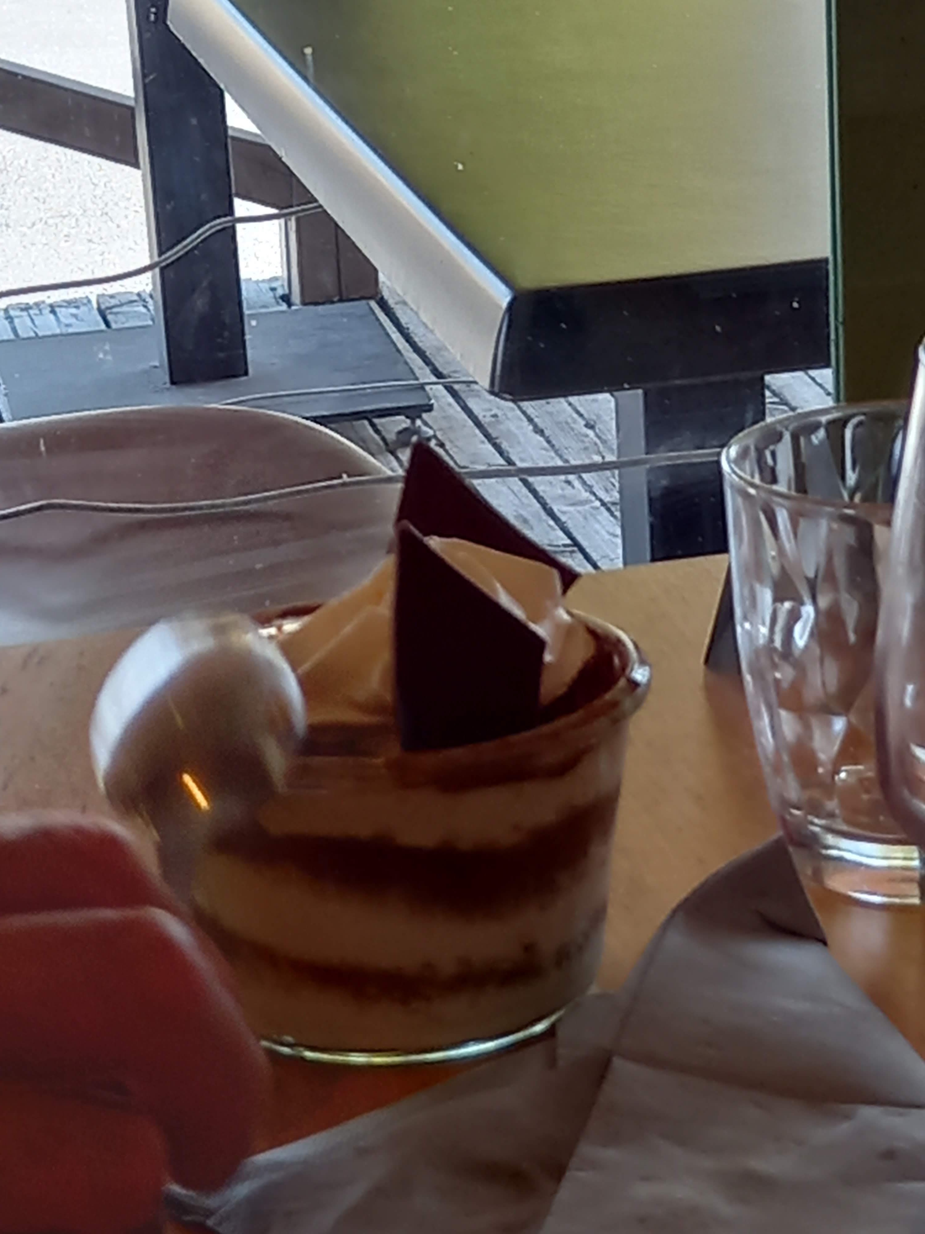 Malheureusement nous avons tellement eu froid que c'est difficile de se rappeler d'autres choses...si pour ma part dans le croustillant d'agneau j'aurais bien voulu ressentir le goût de l'agneau bonnes profiteroles serveuse super souriante et agréable